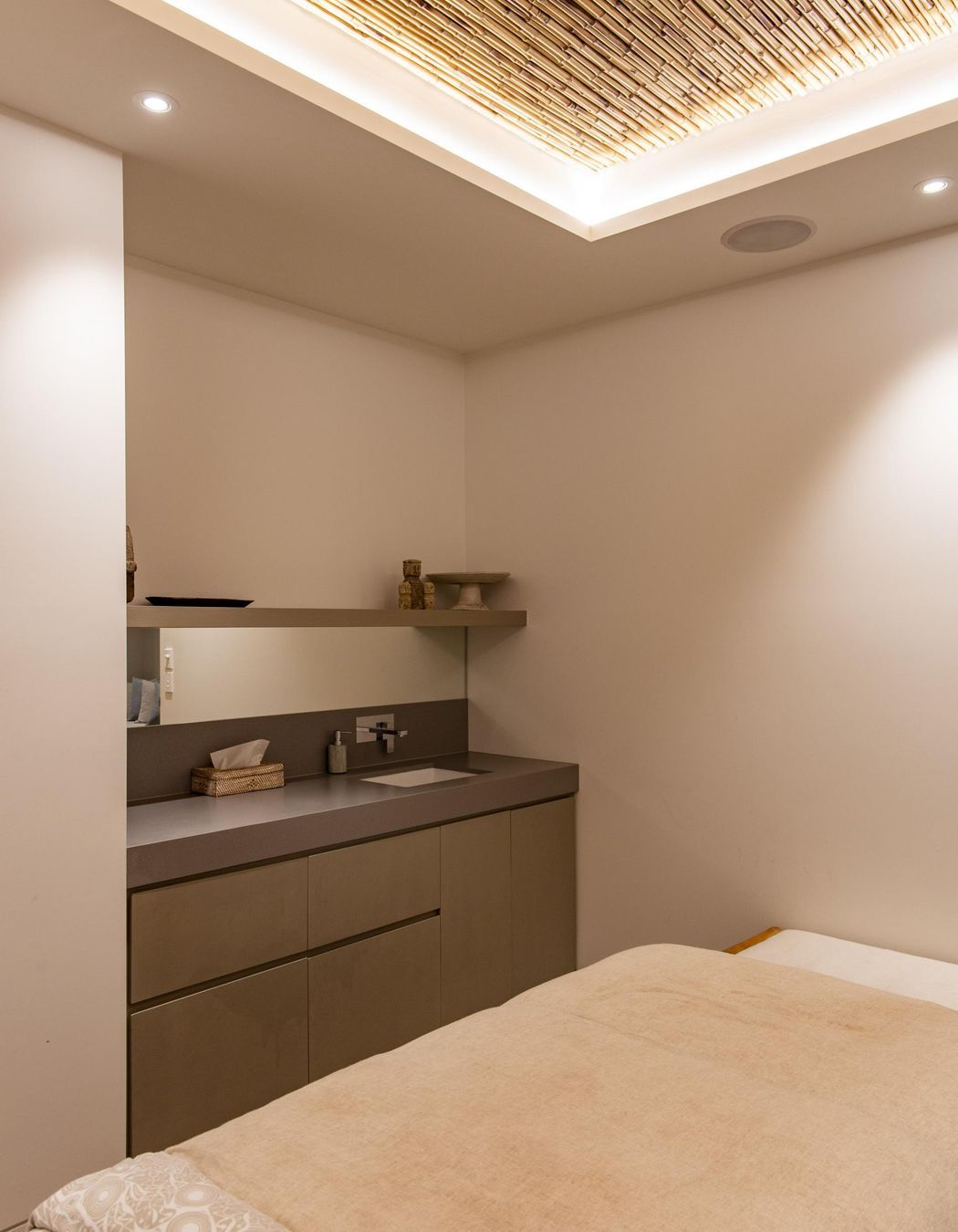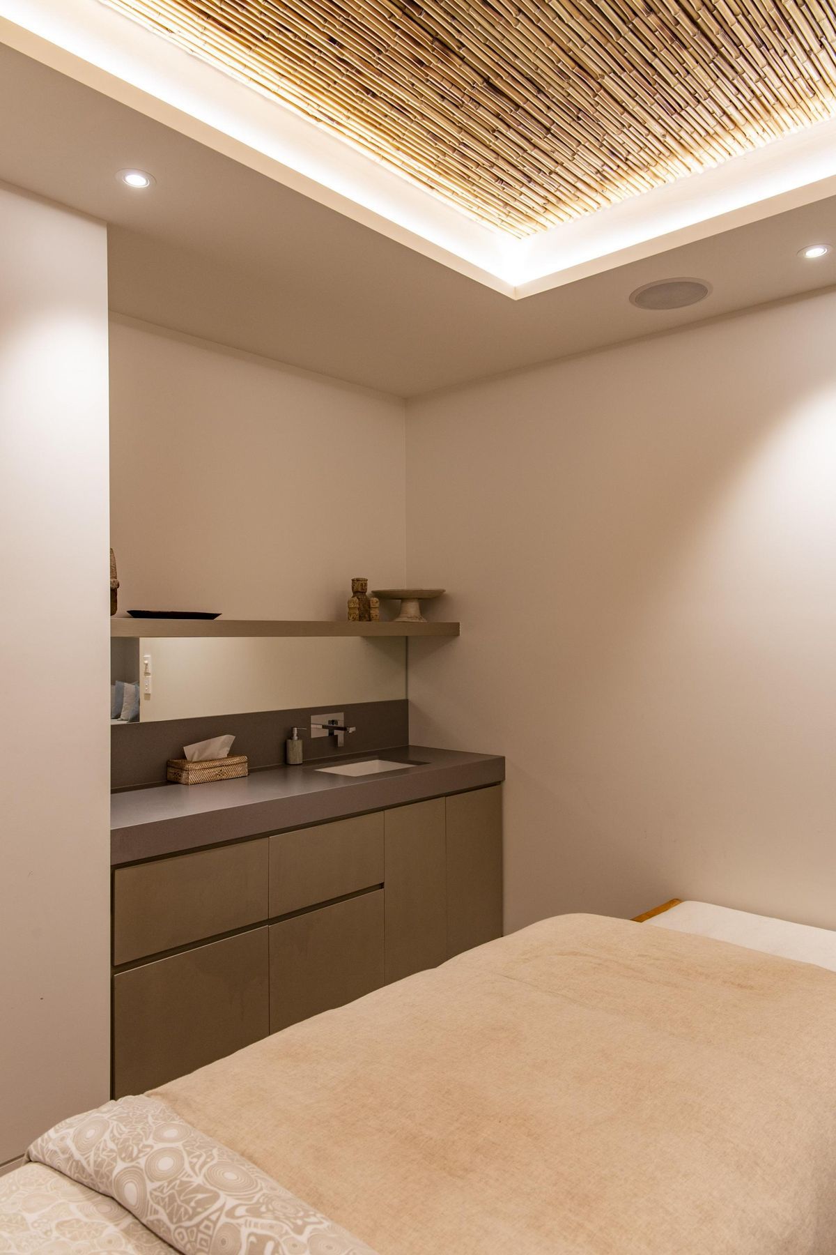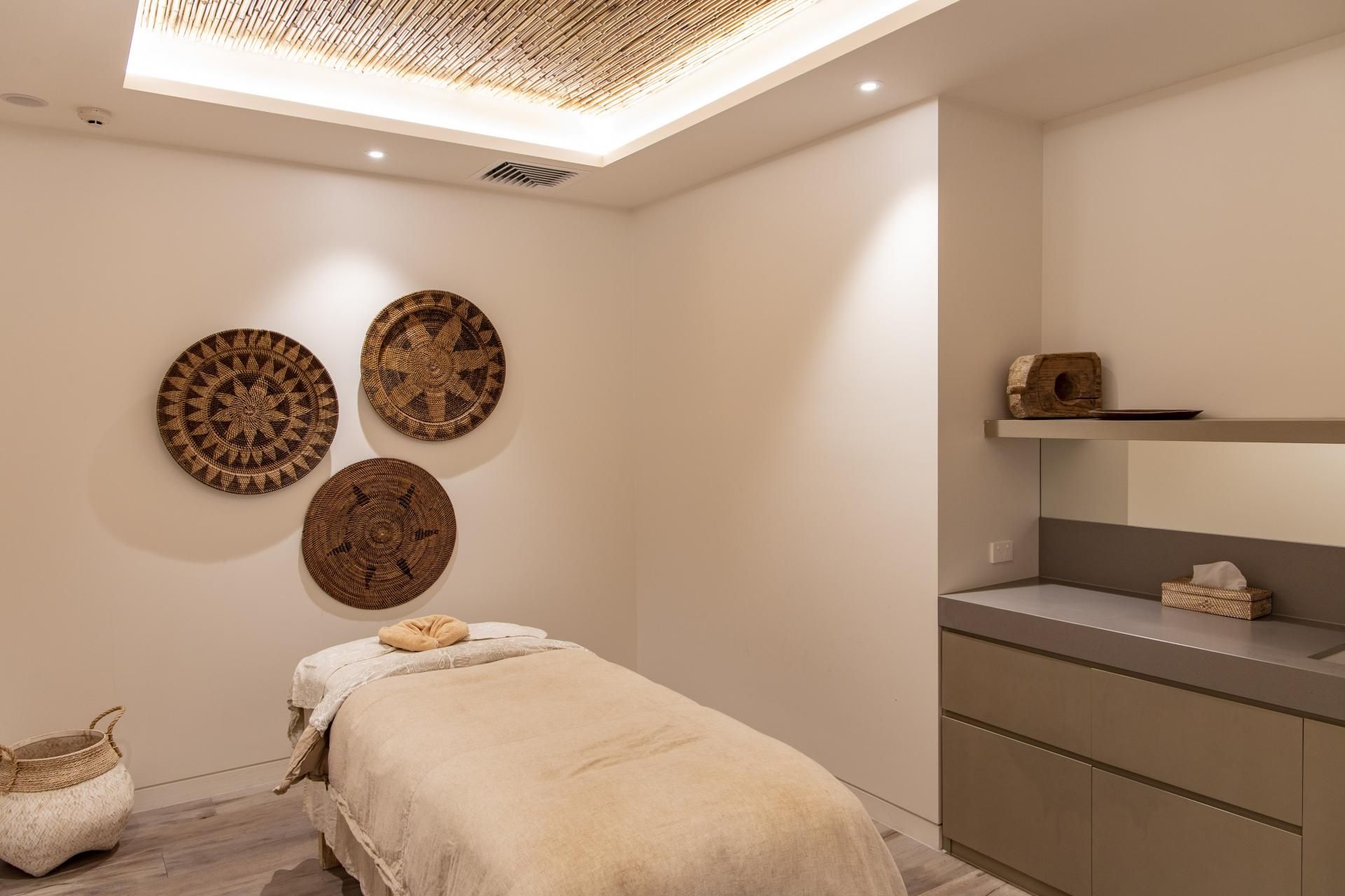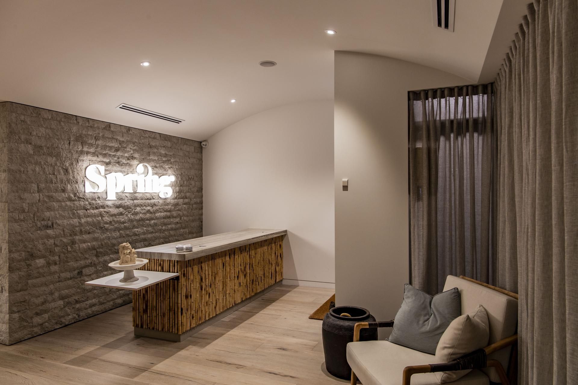 ArchiPro Project Summary - Serene fitout for Spring Spa on Ponsonby Road, featuring a light palette, natural stone, vaulted ceilings, and Balinese furnishings, expertly crafted by Hannah Warren Interiors.