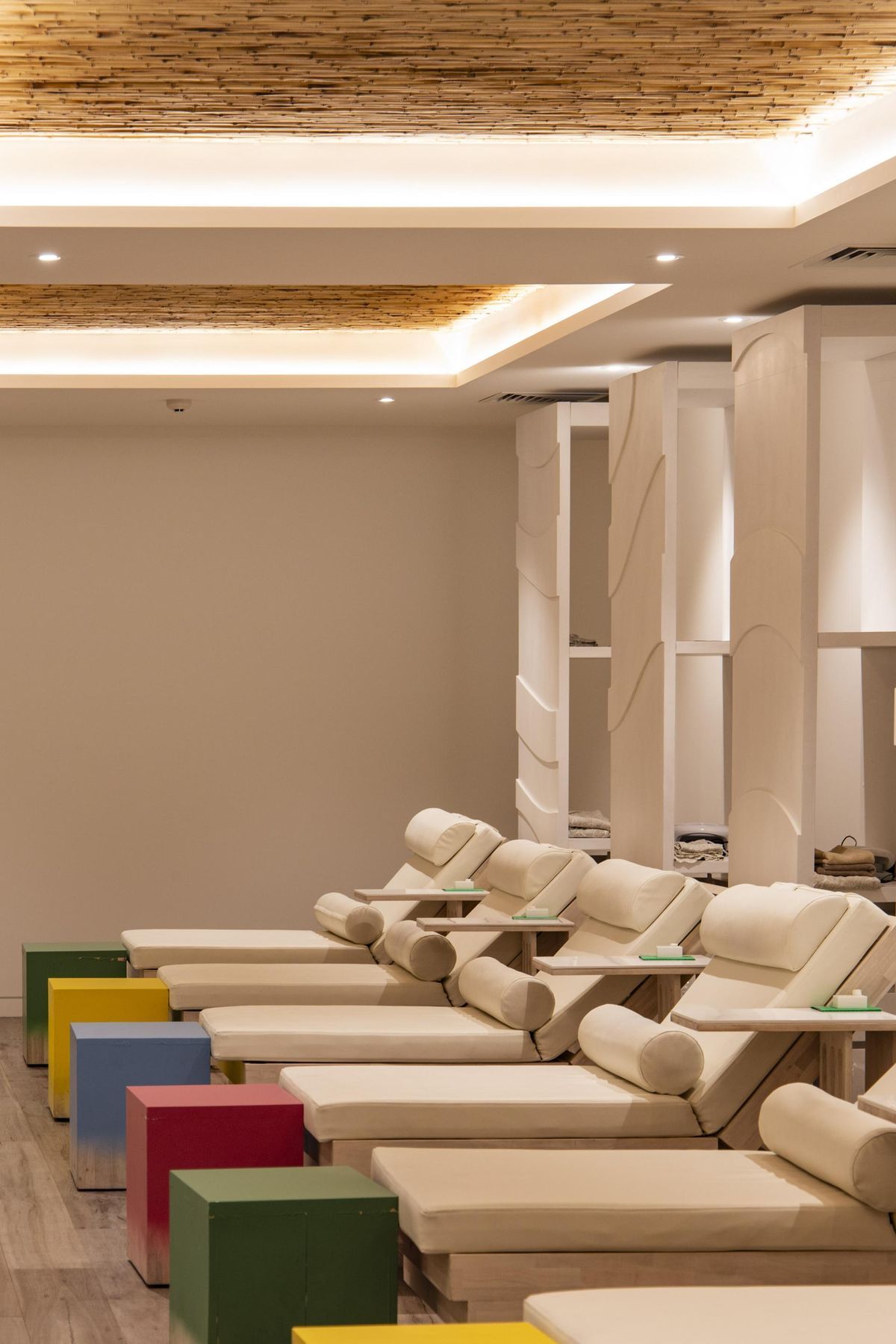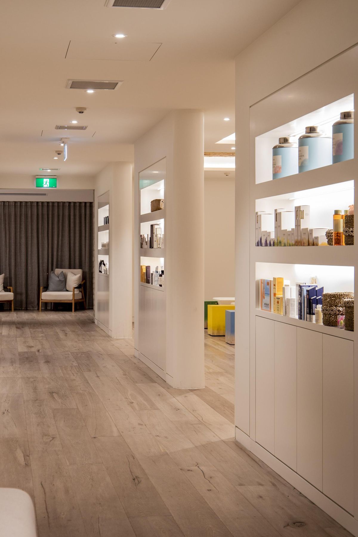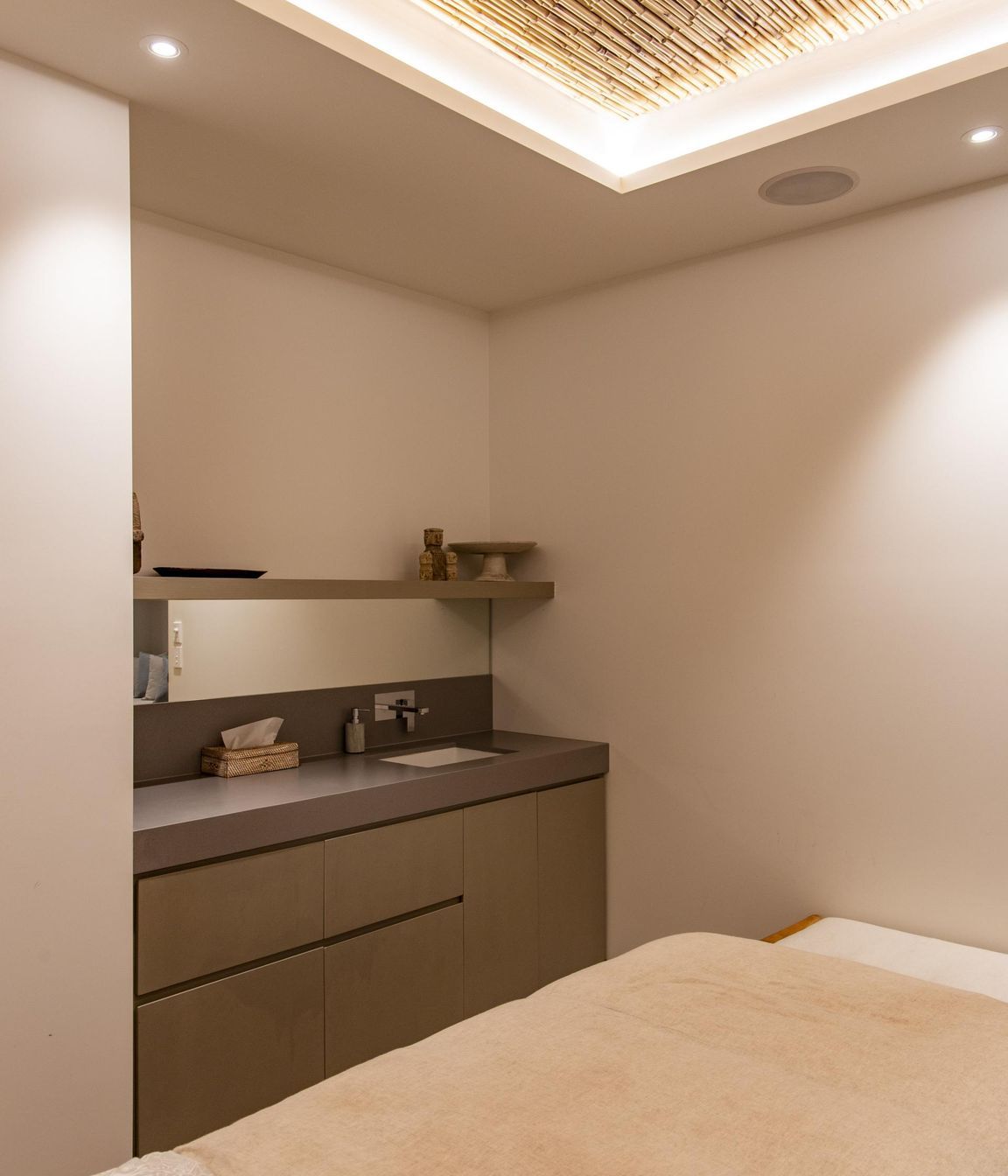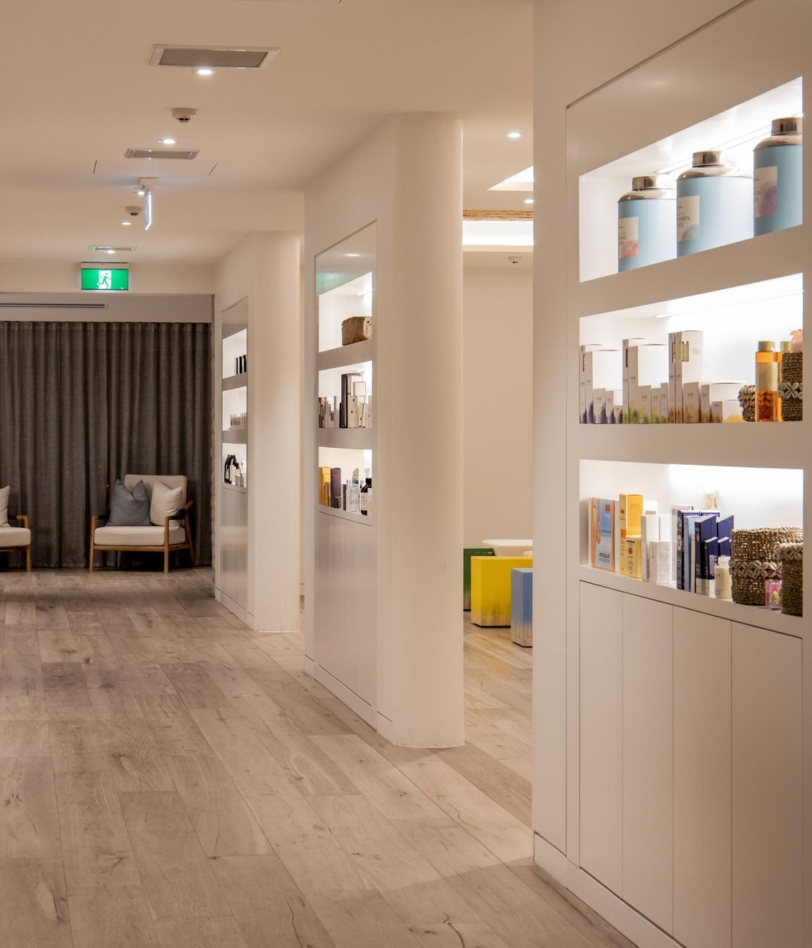 ArchiPro Project Summary - Serene fitout for Spring Spa on Ponsonby Road, featuring a light palette, natural stone, vaulted ceilings, and Balinese furnishings, expertly crafted by Hannah Warren Interiors.