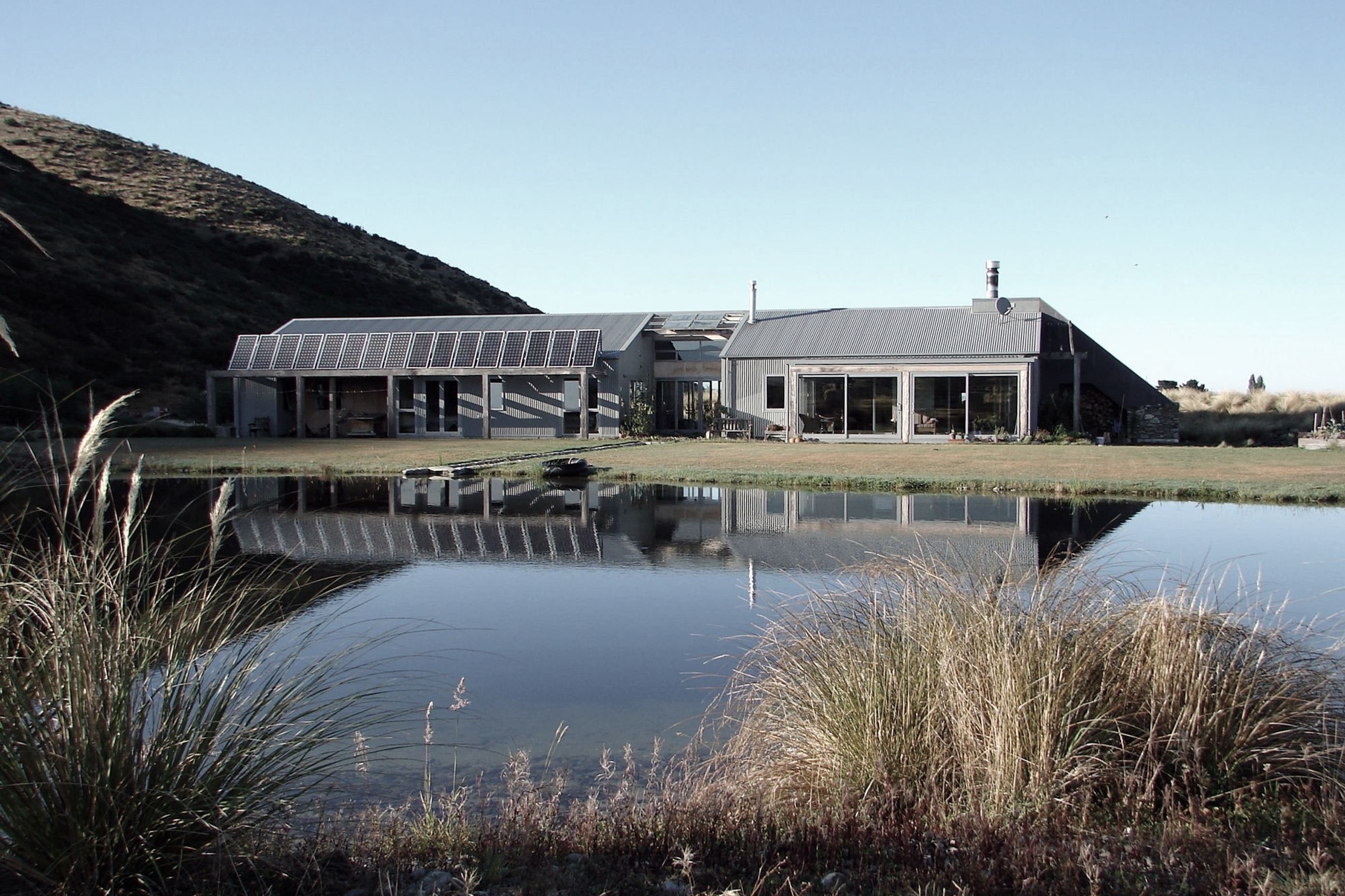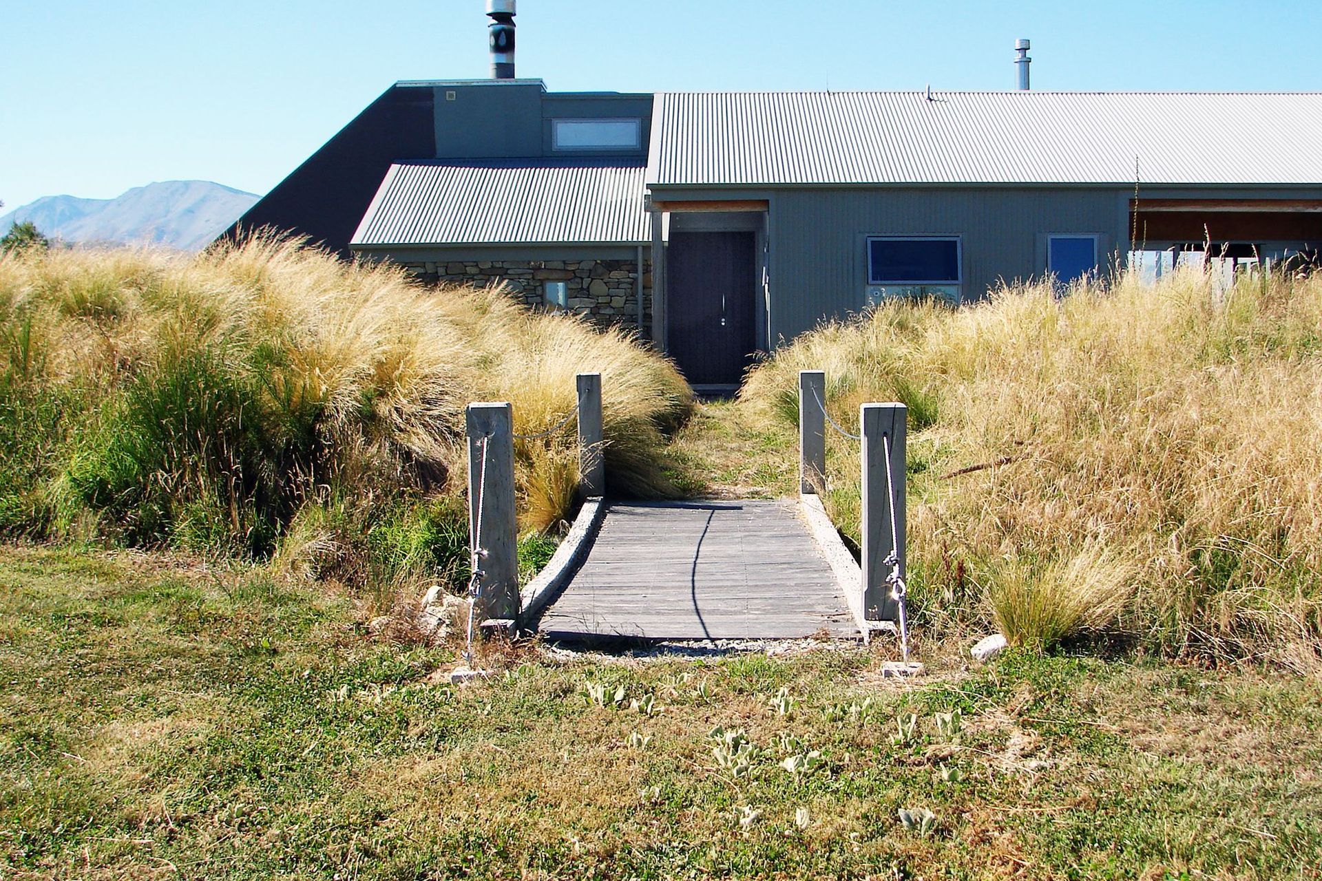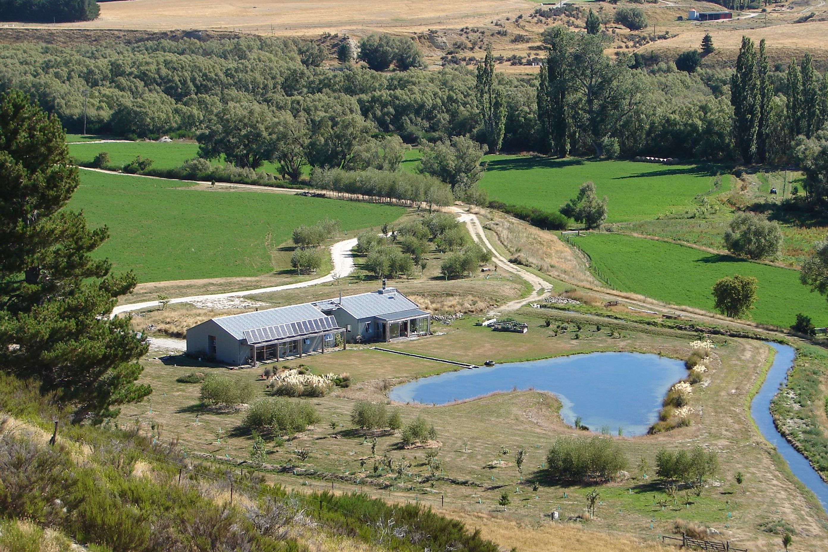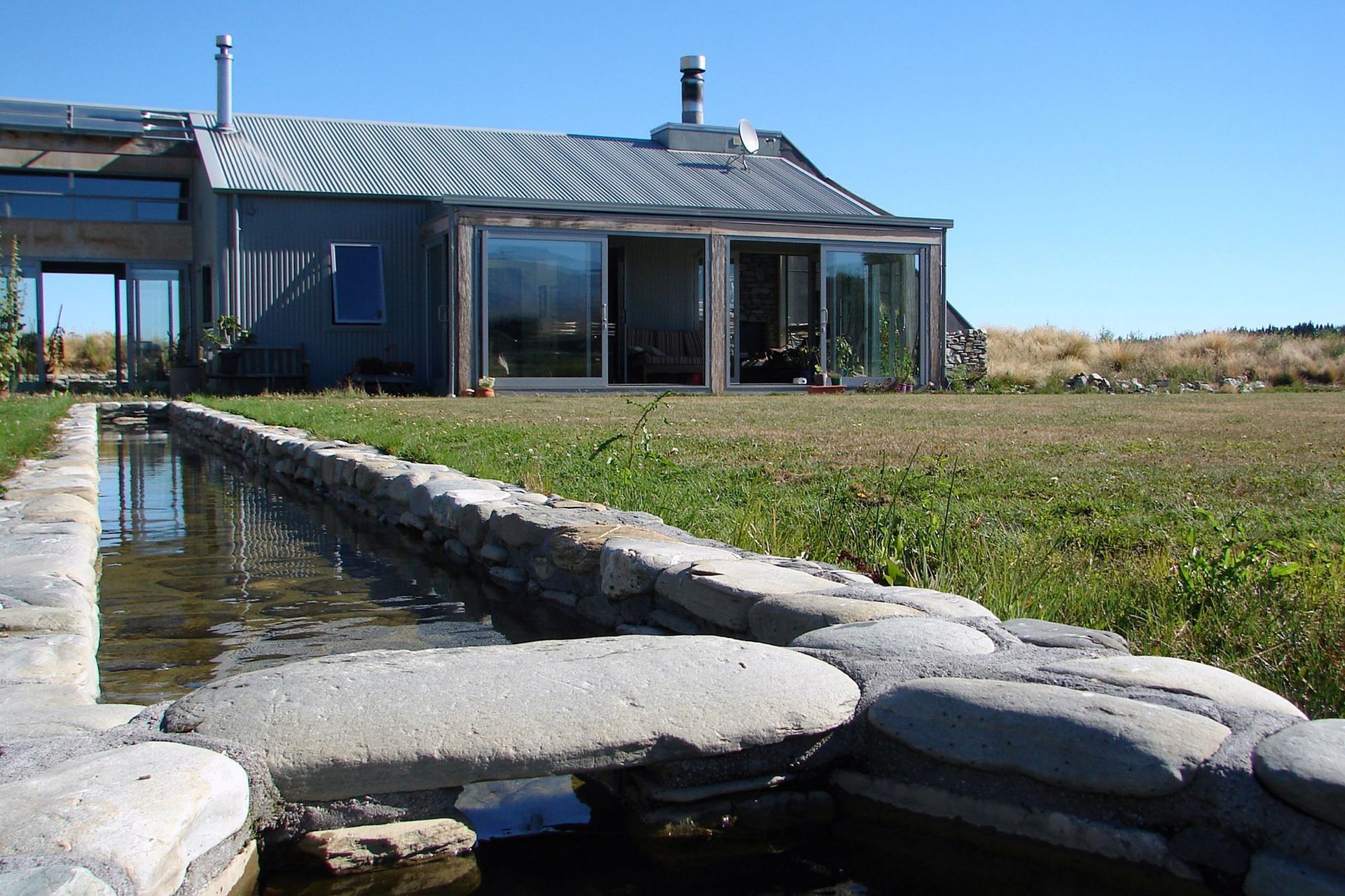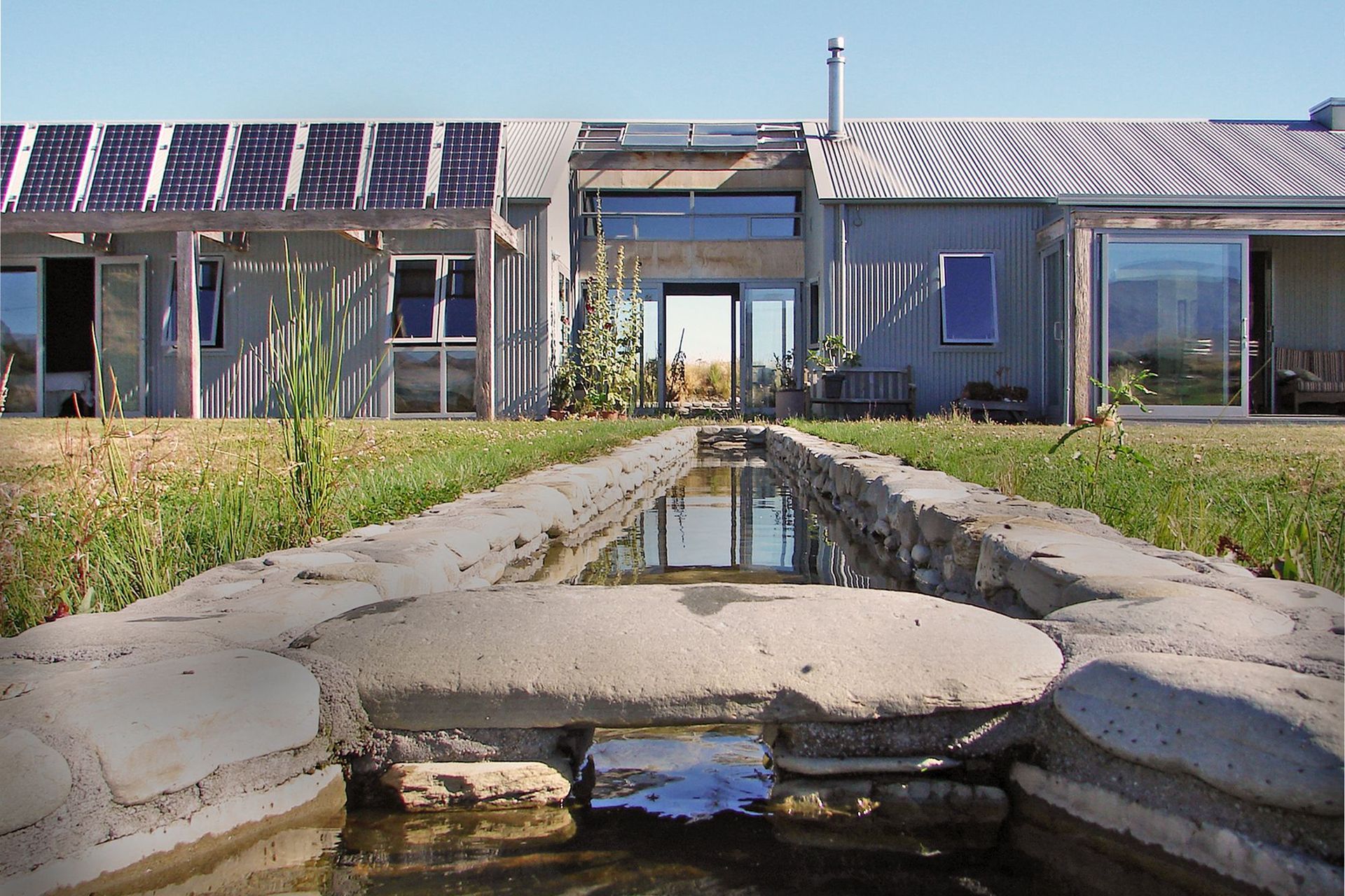 ArchiPro Project Summary - Dunstan Halt: A sustainable, self-sufficient home harmoniously integrated into the Central Otago landscape, featuring large windows for panoramic views, passive solar design, and natural cooling solutions.