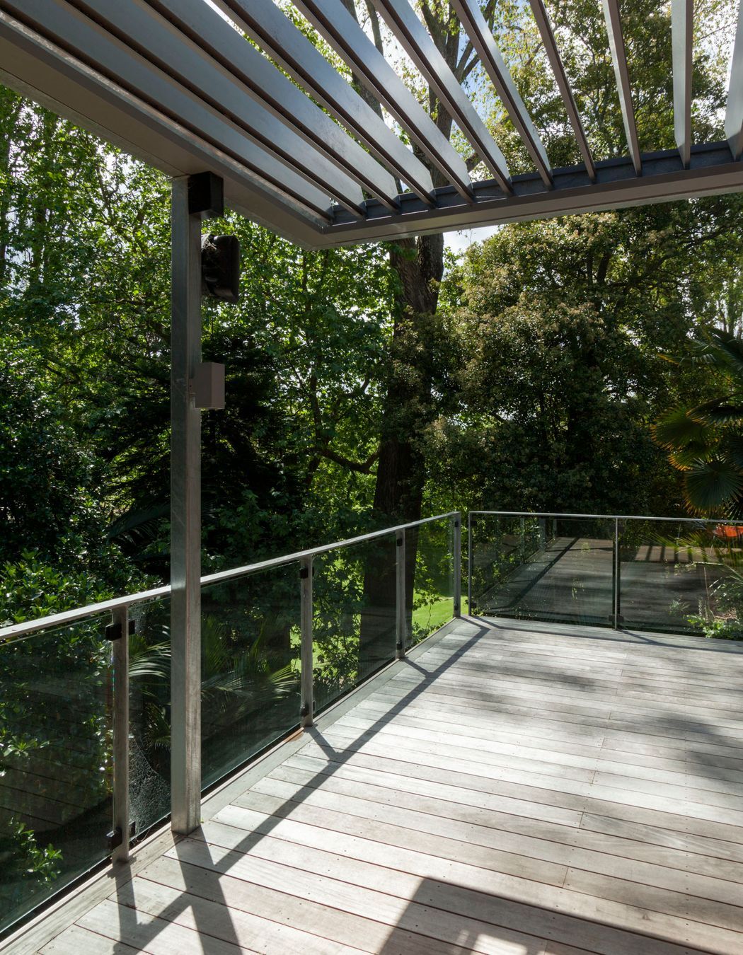 ArchiPro Project Summary - A modern architectural gem featuring a shaded porch and elegant outdoor spaces for relaxation and entertainment.