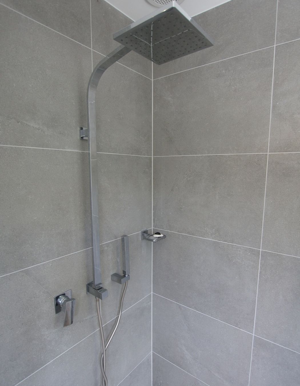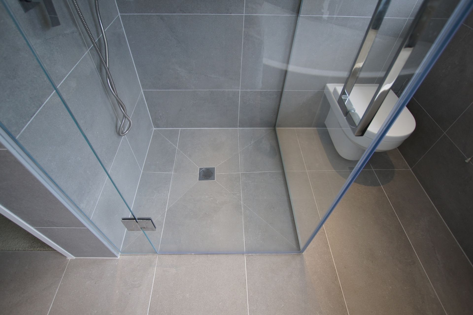 ArchiPro Project Summary - A modern bathroom design featuring elegant grey tones and high-quality plumbing fixtures for a serene atmosphere.