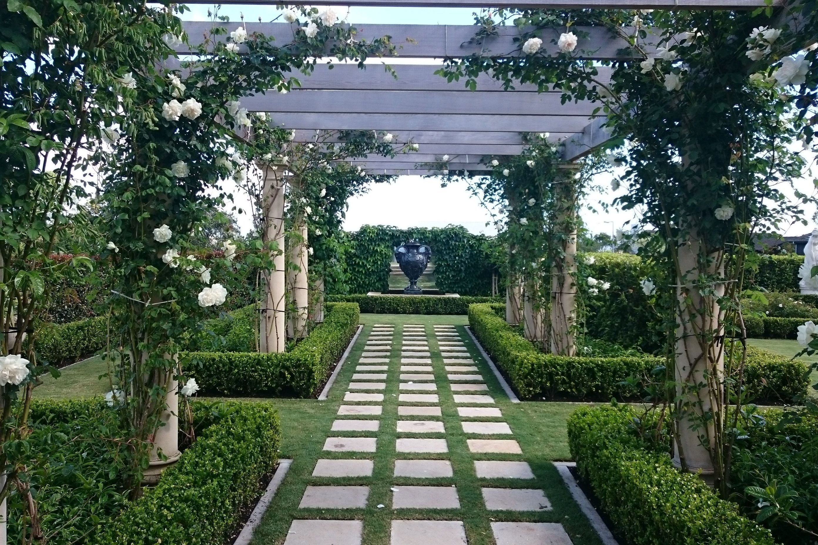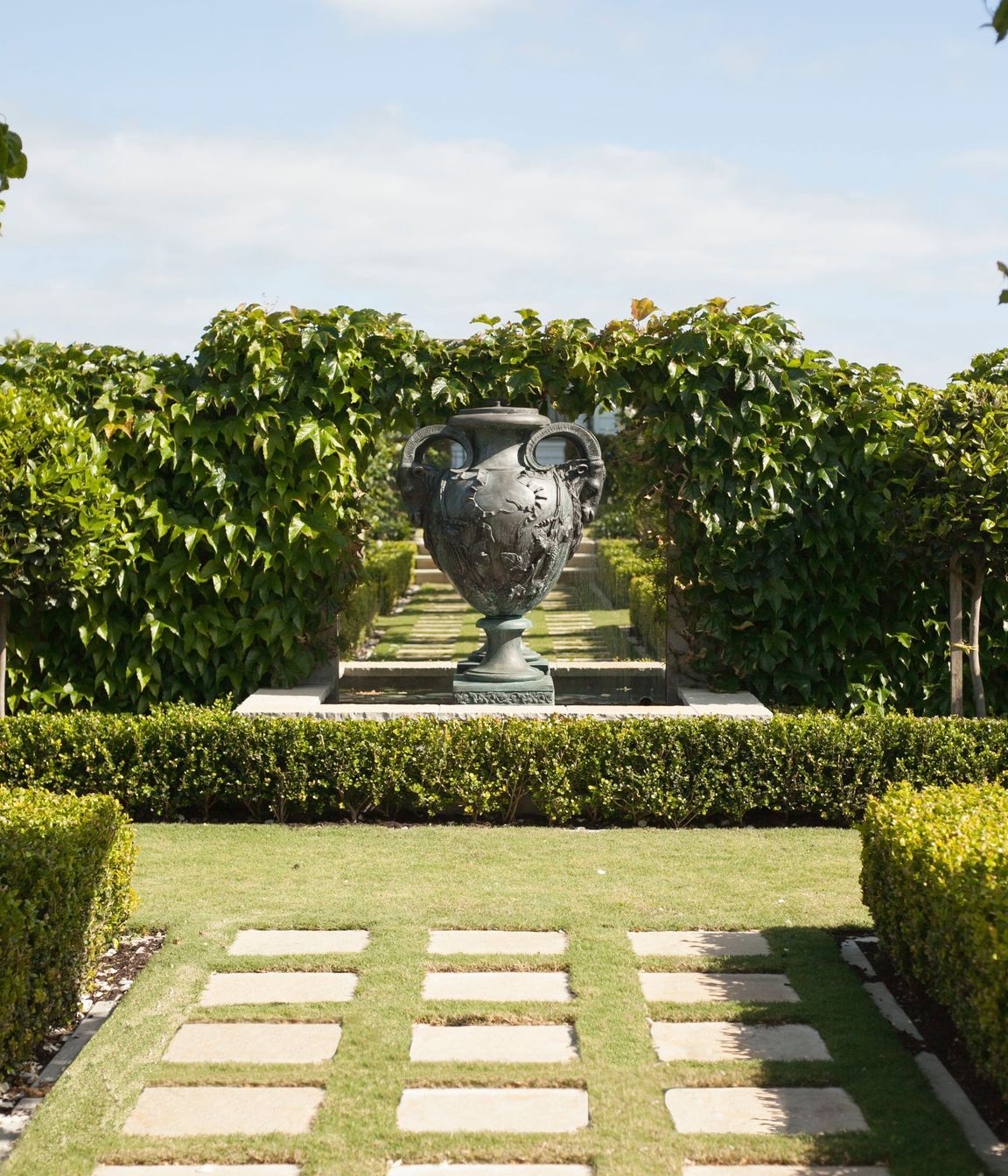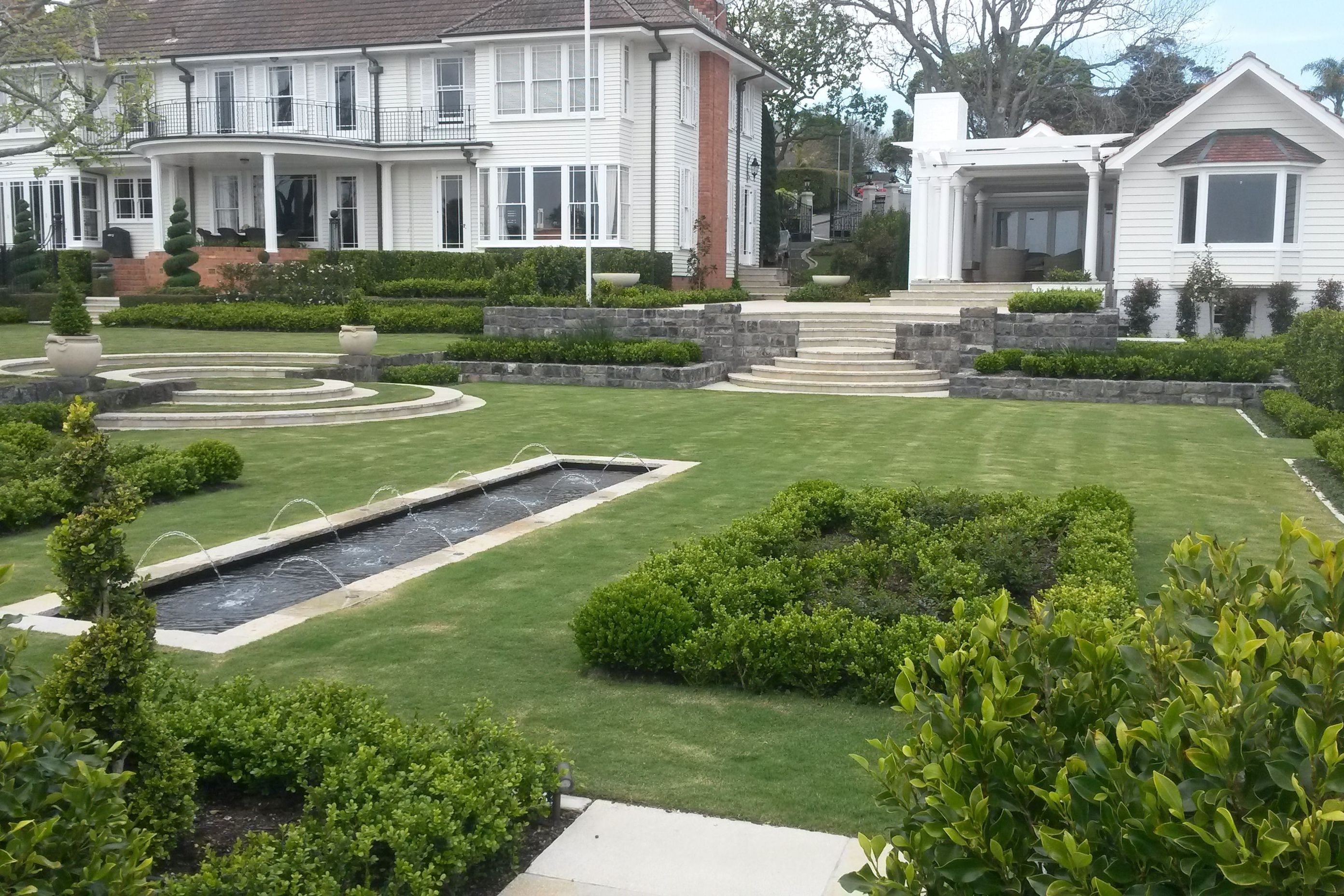ArchiPro Project Summary - A meticulously designed garden inspired by formal Neo-Georgian architecture, featuring expansive lawns, hedges, and rose gardens, enhanced by elements reminiscent of the Hamptons, including engineered retaining walls, waterfall ponds, and decorative pots from America.