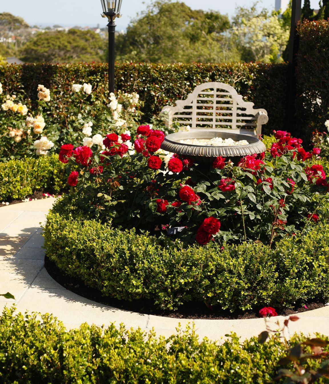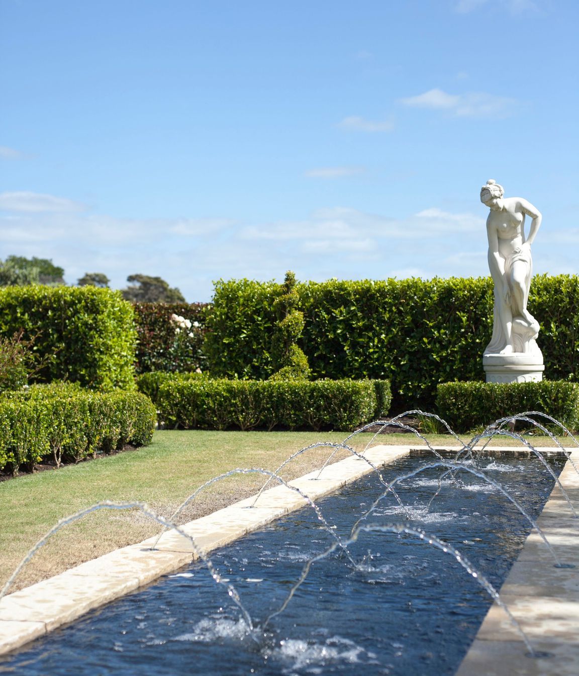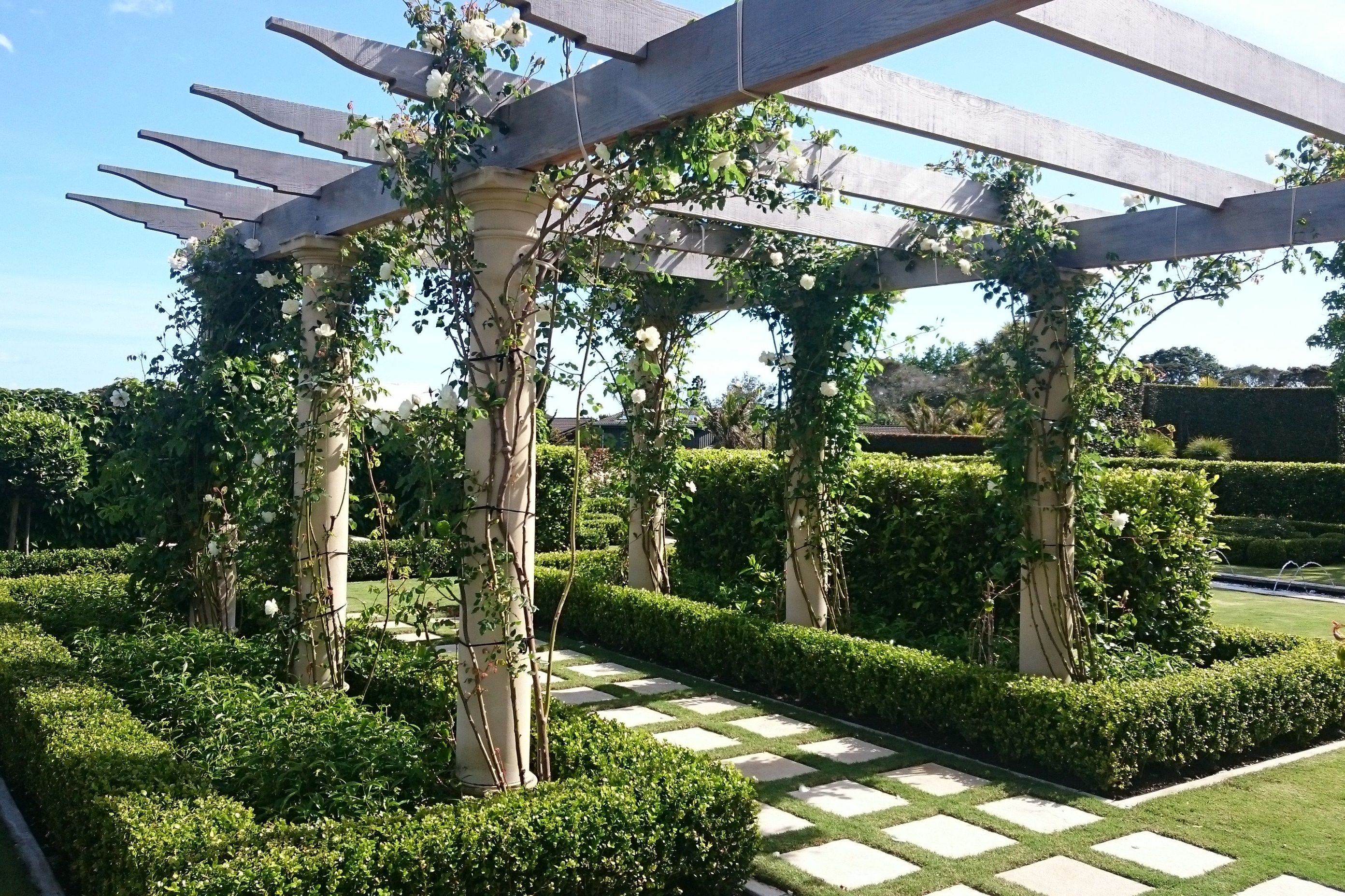 ArchiPro Project Summary - A meticulously designed garden inspired by formal Neo-Georgian architecture, featuring expansive lawns, hedges, and rose gardens, enhanced by elements reminiscent of the Hamptons, including engineered retaining walls, waterfall ponds, and decorative pots from America.