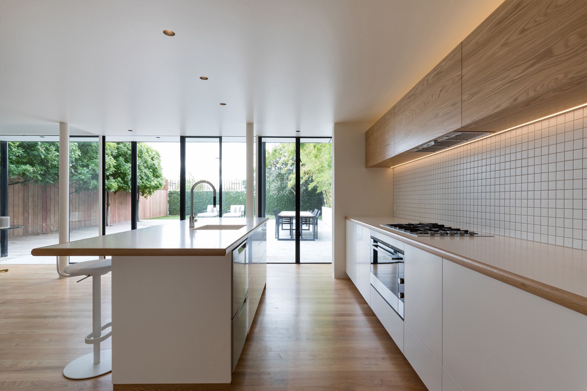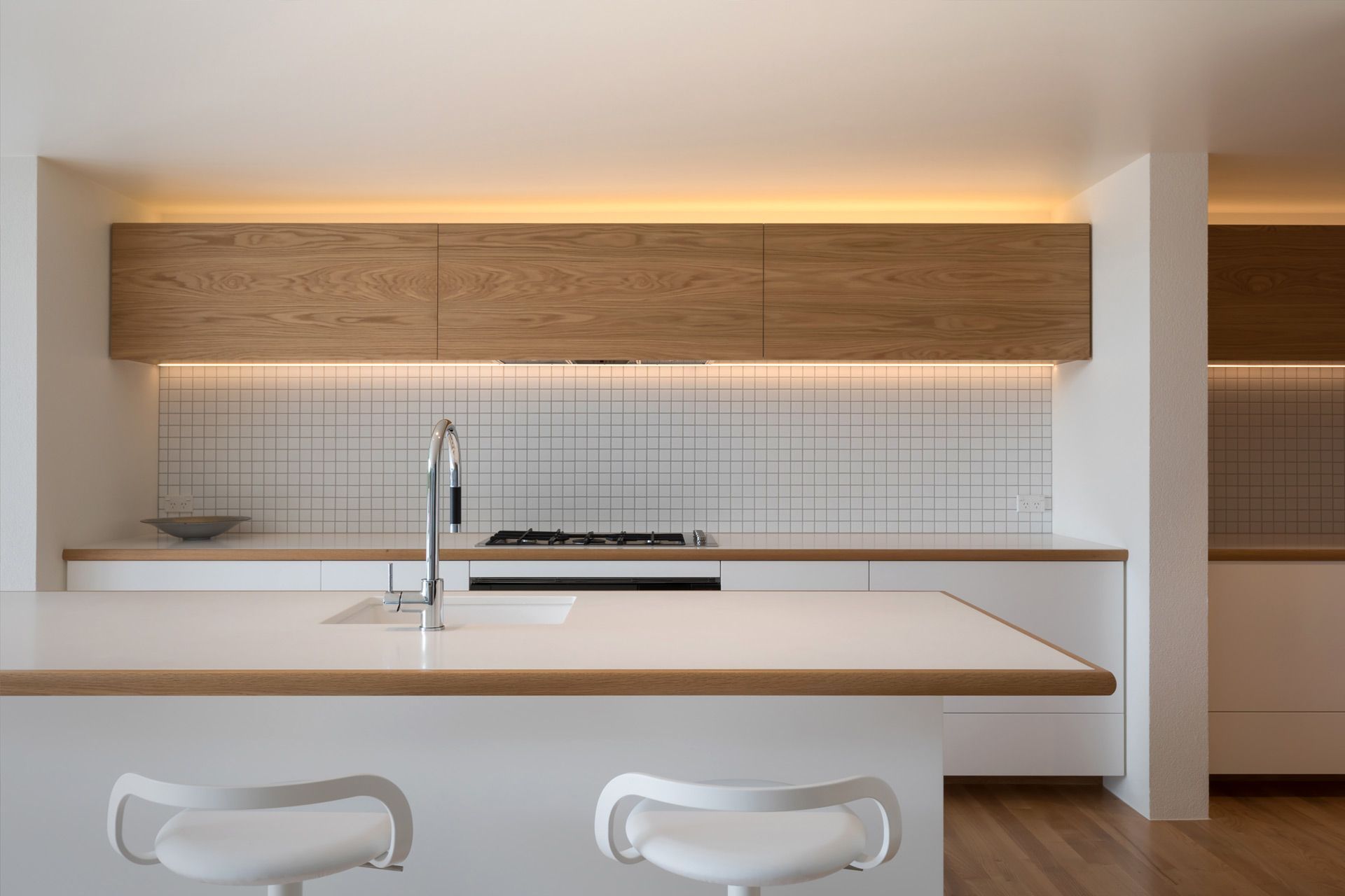 ArchiPro Project Summary - A meticulously renovated kitchen that harmonizes modern conveniences with the architectural authenticity of a 1970s home, featuring elegant oak timber accents and high-quality finishes.
