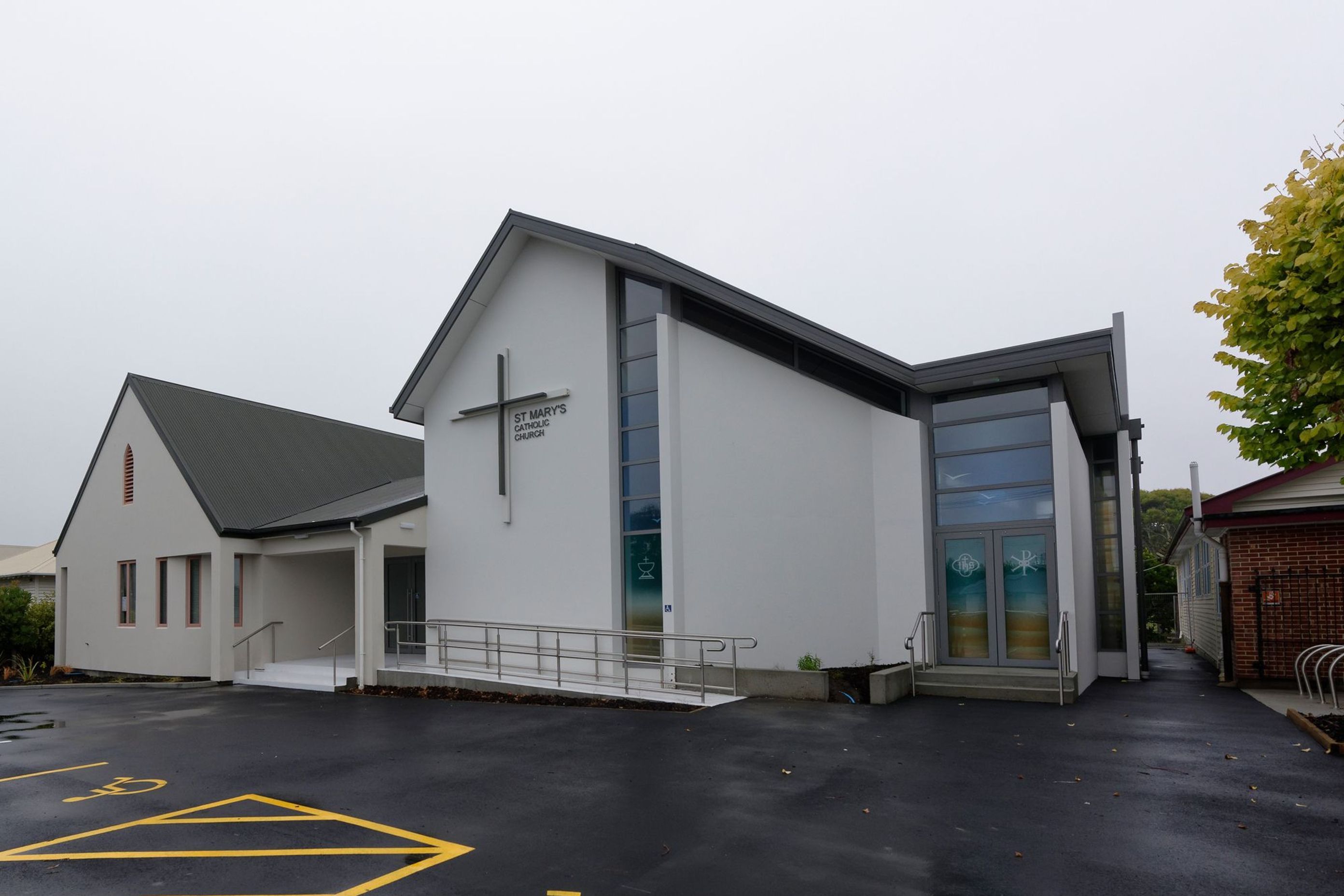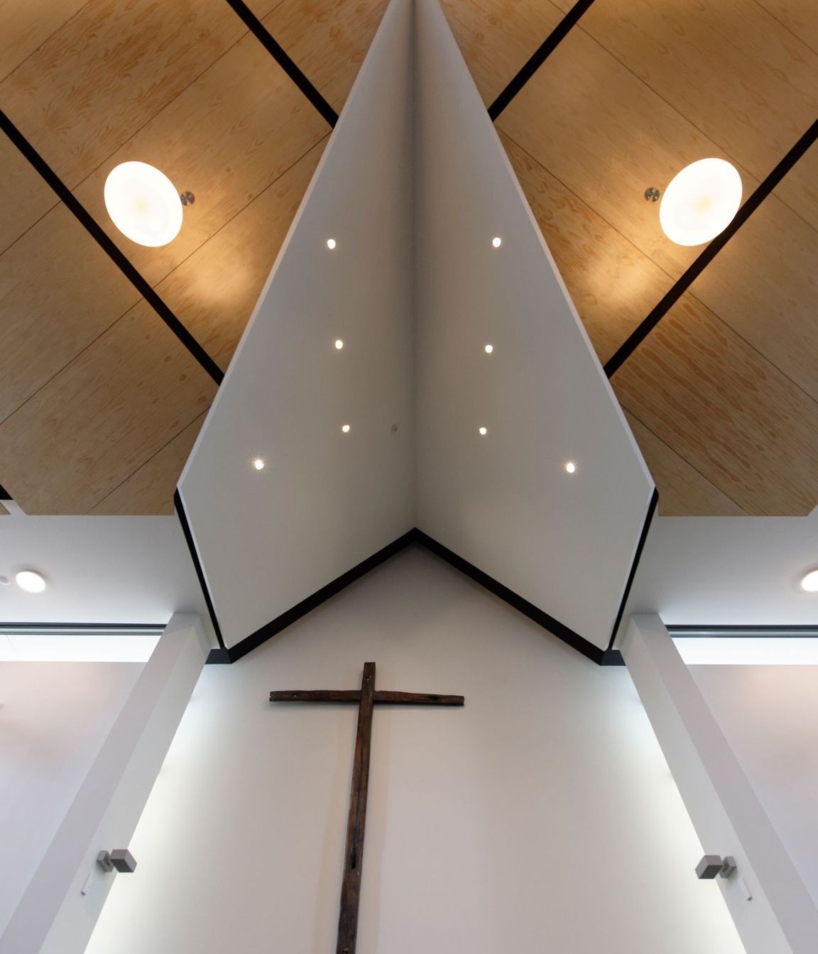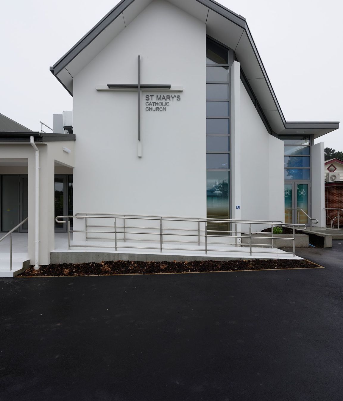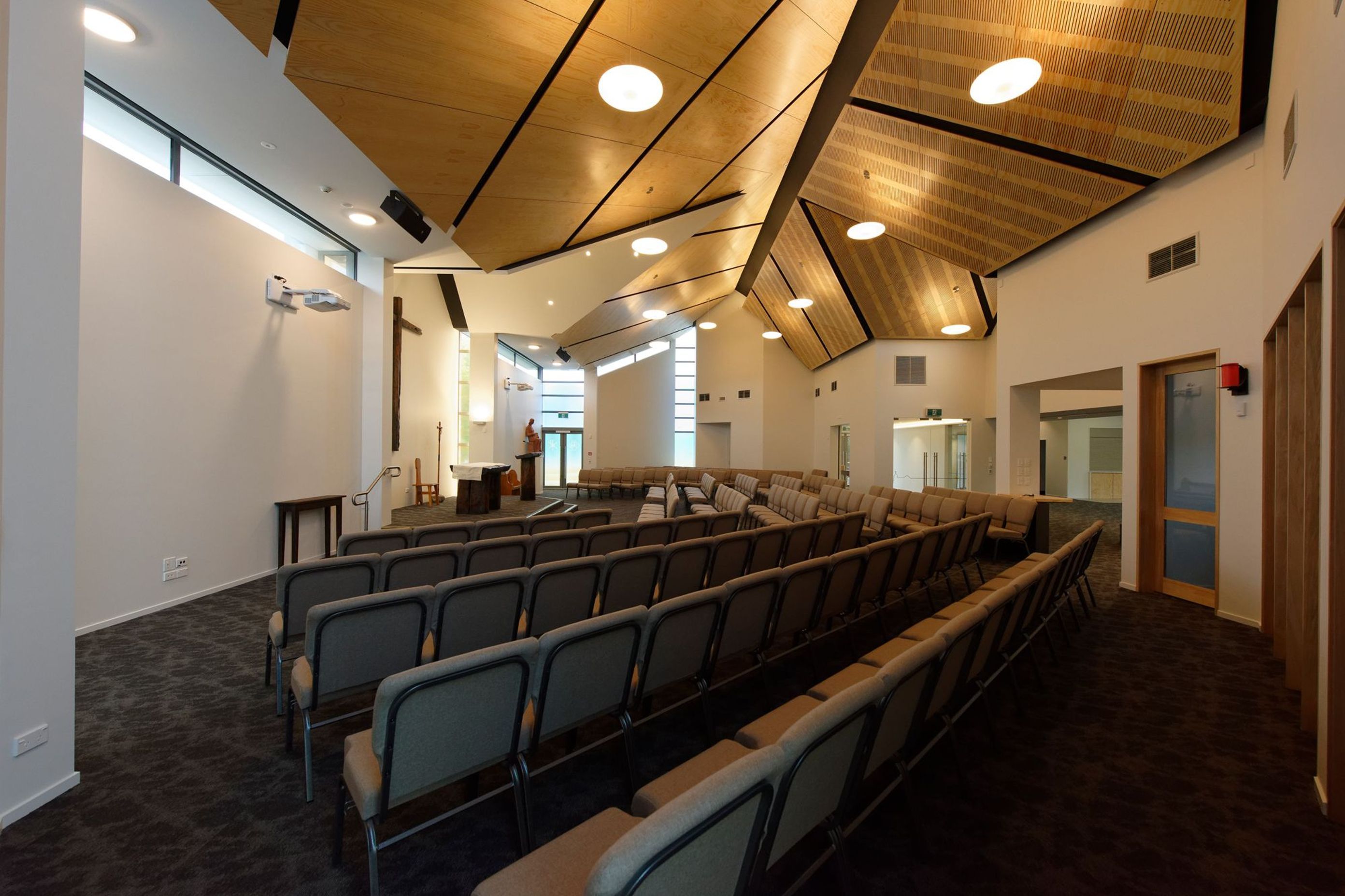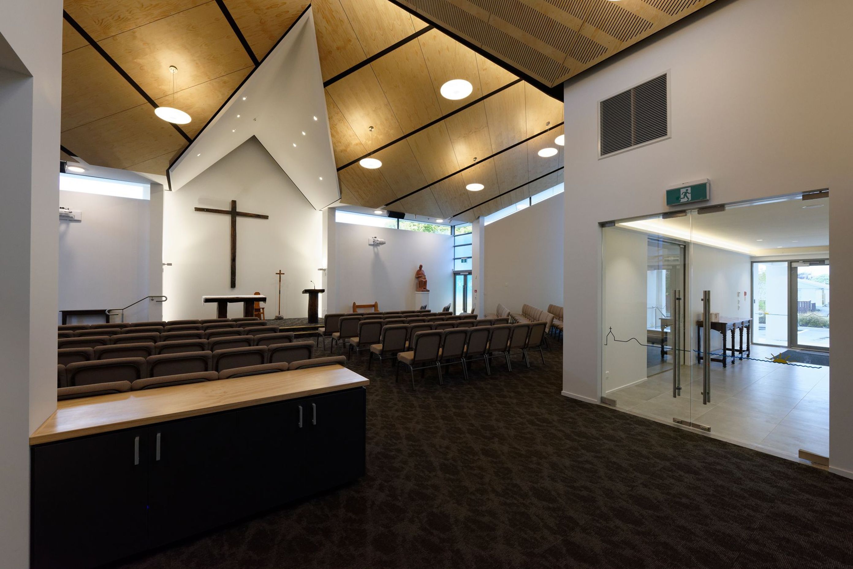 ArchiPro Project Summary - St Marys Church, the world's first church to achieve a Green Star rating, features an intricate steel framework, precast concrete walls, and a sophisticated layout of acoustic plywood ceiling panels, rebuilt after the Christchurch earthquakes.