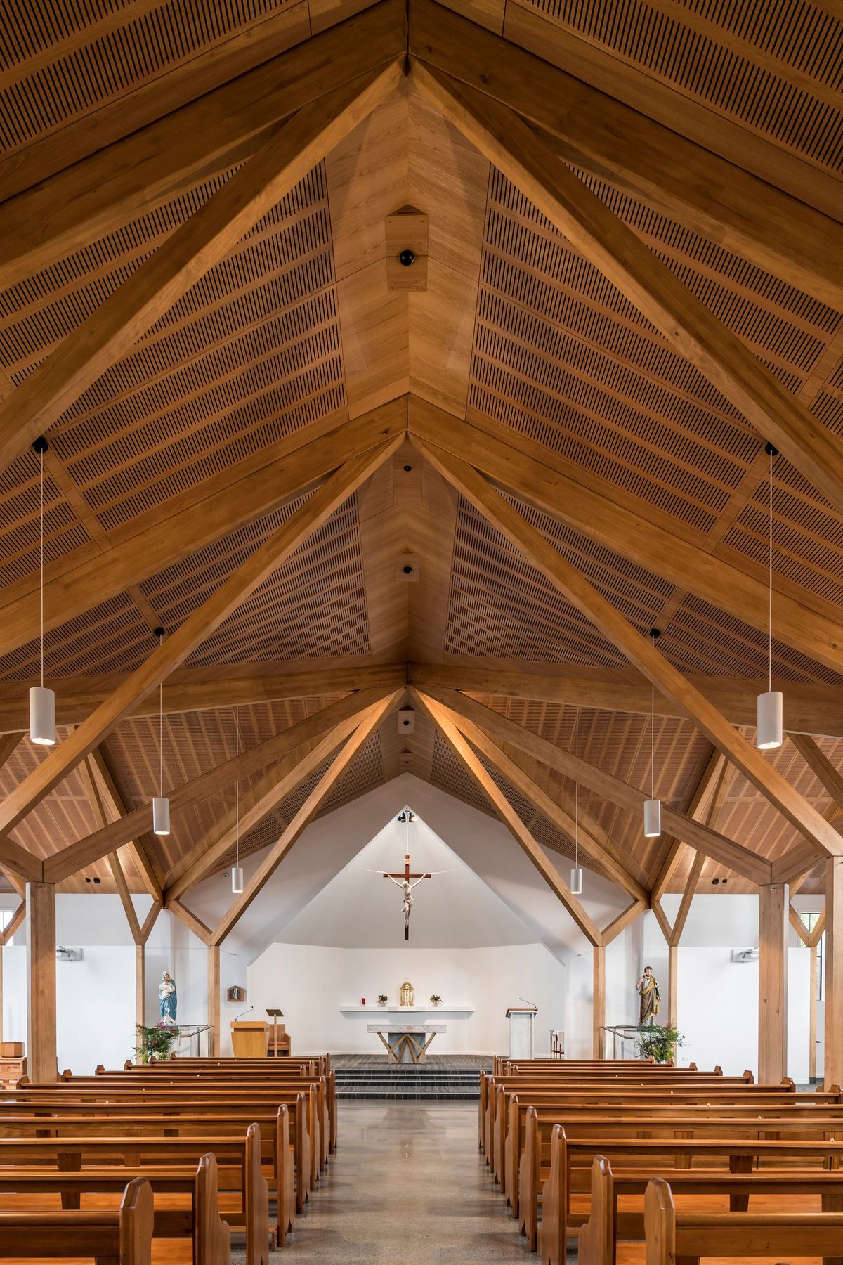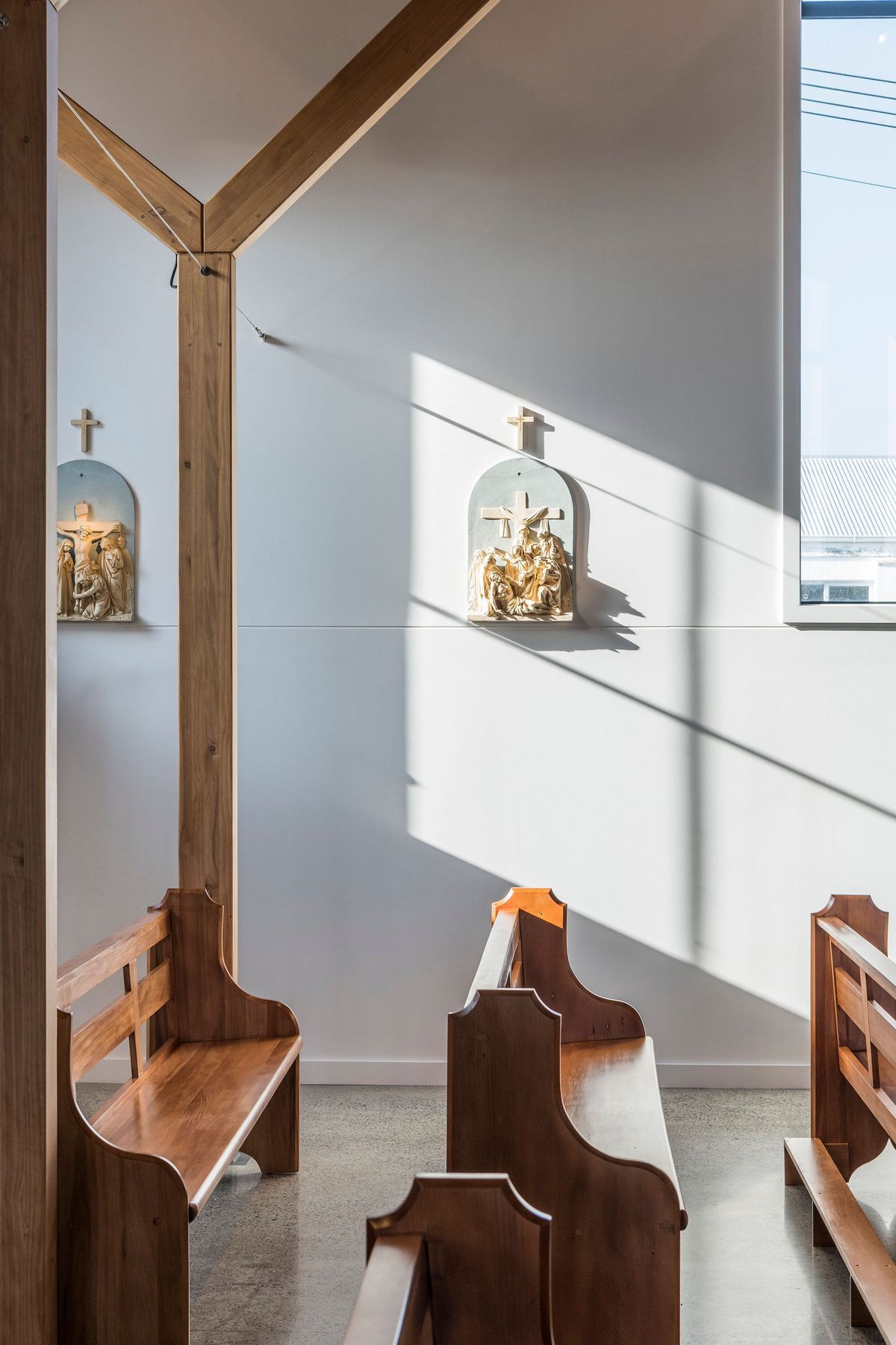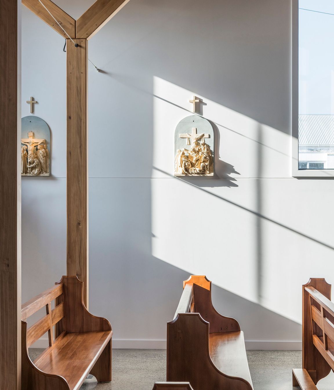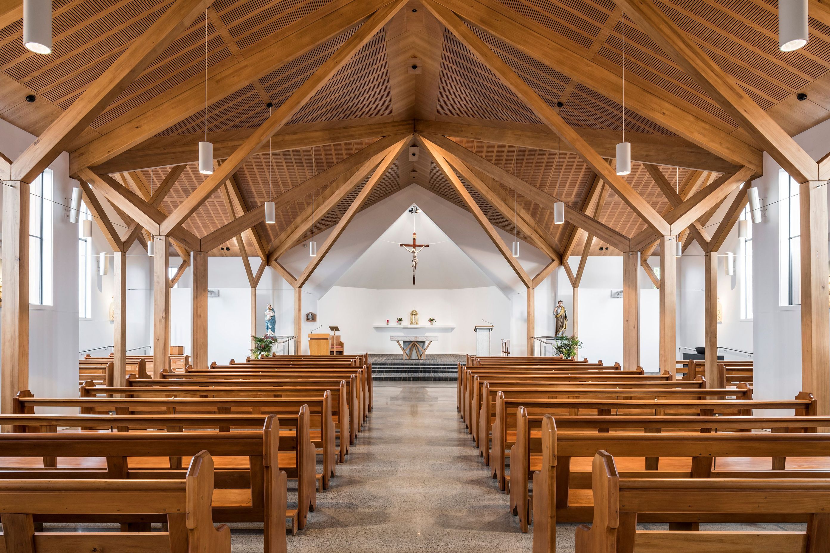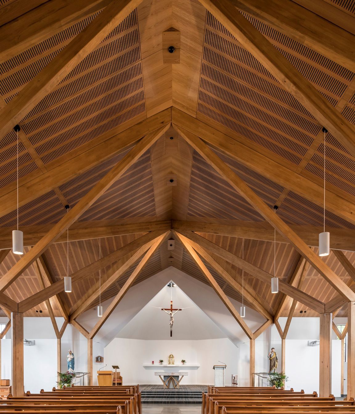 ArchiPro Project Summary - St. Patrick's Church: A resilient and symbolic structure designed for community worship, featuring a traditional cruciform plan, natural materials, and a seamless integration with the existing parish centre, while honoring the heritage of the site.