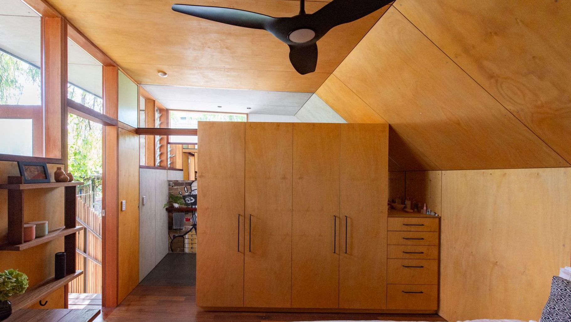 ArchiPro Project Summary - A contemporary garage and studio addition in Stanmore, featuring a blend of recycled face brick and pre-finished fibre cement cladding, designed to maximize space while harmonizing with the family’s cherished peppercorn tree.