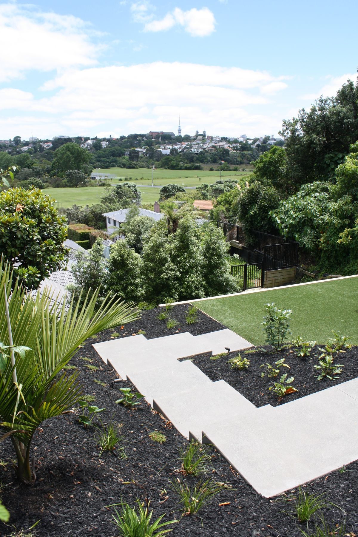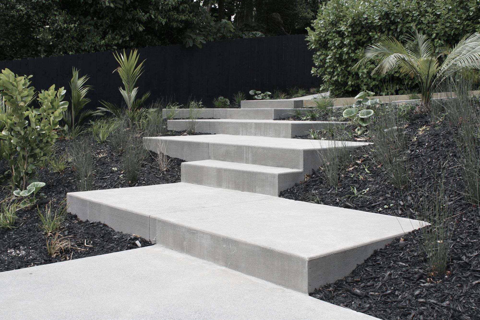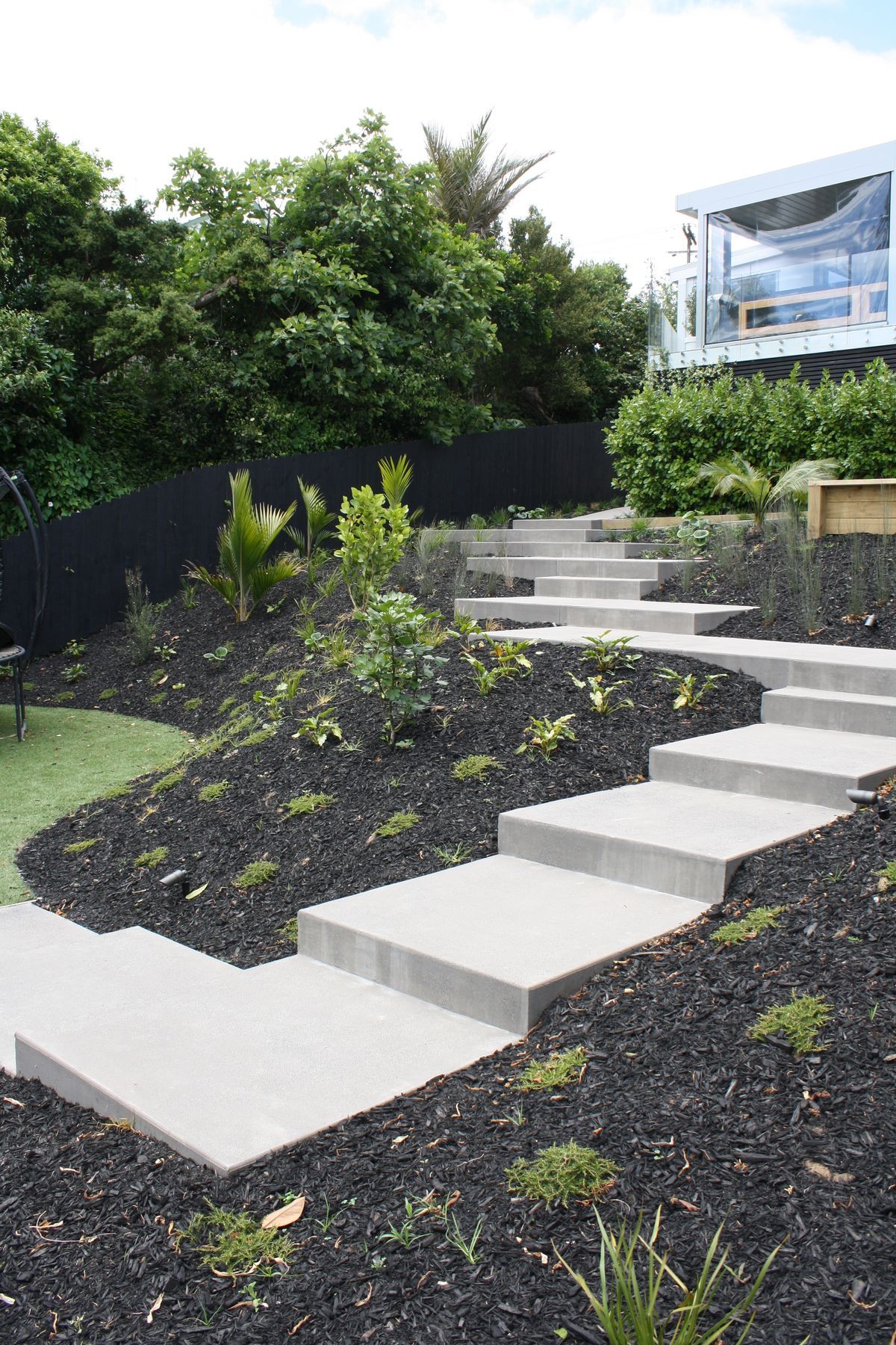 ArchiPro Project Summary - Innovative concrete slabs enhance accessibility in a steep backyard, transforming the landscape and providing essential access to the lower area of the property.