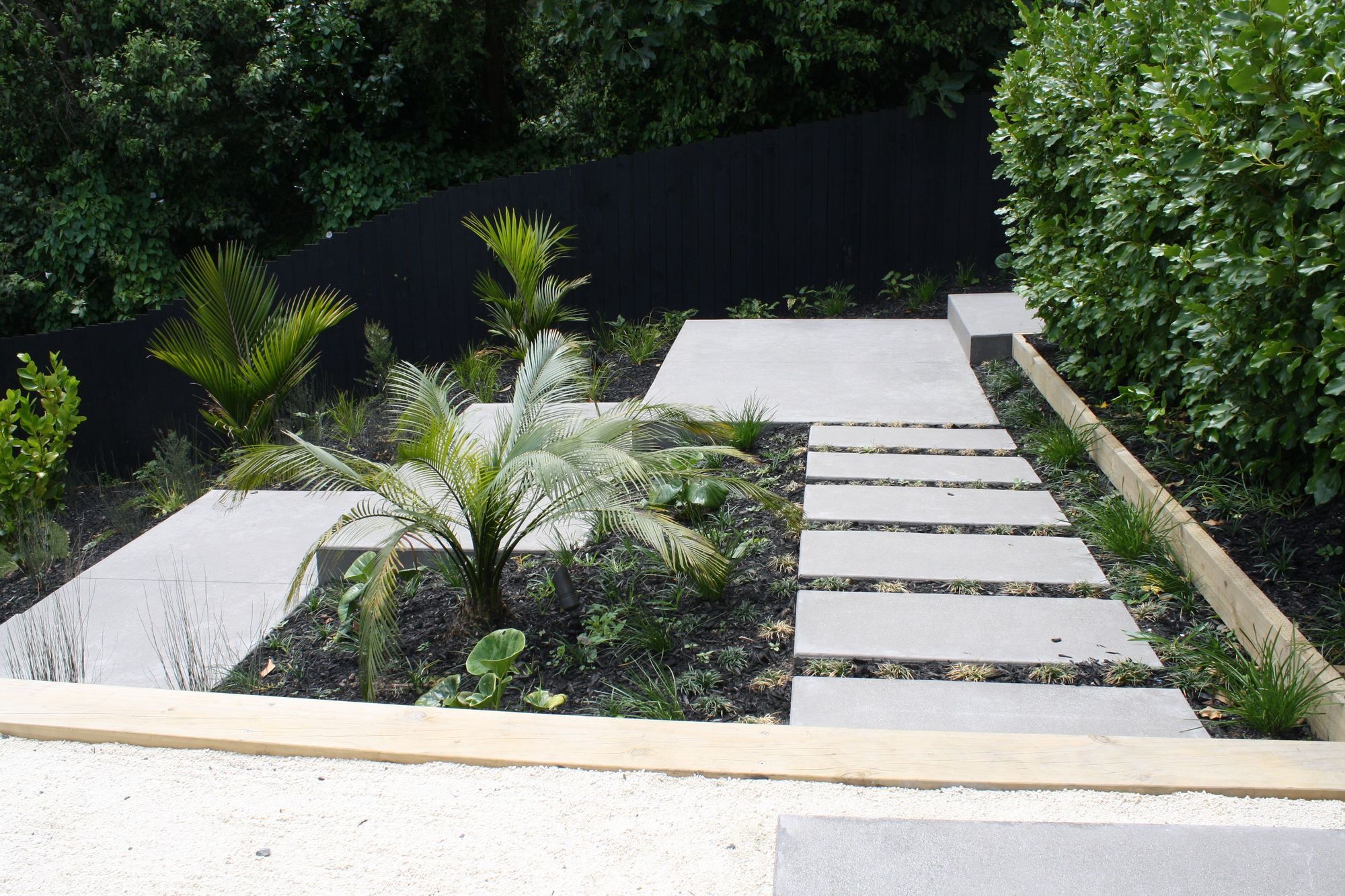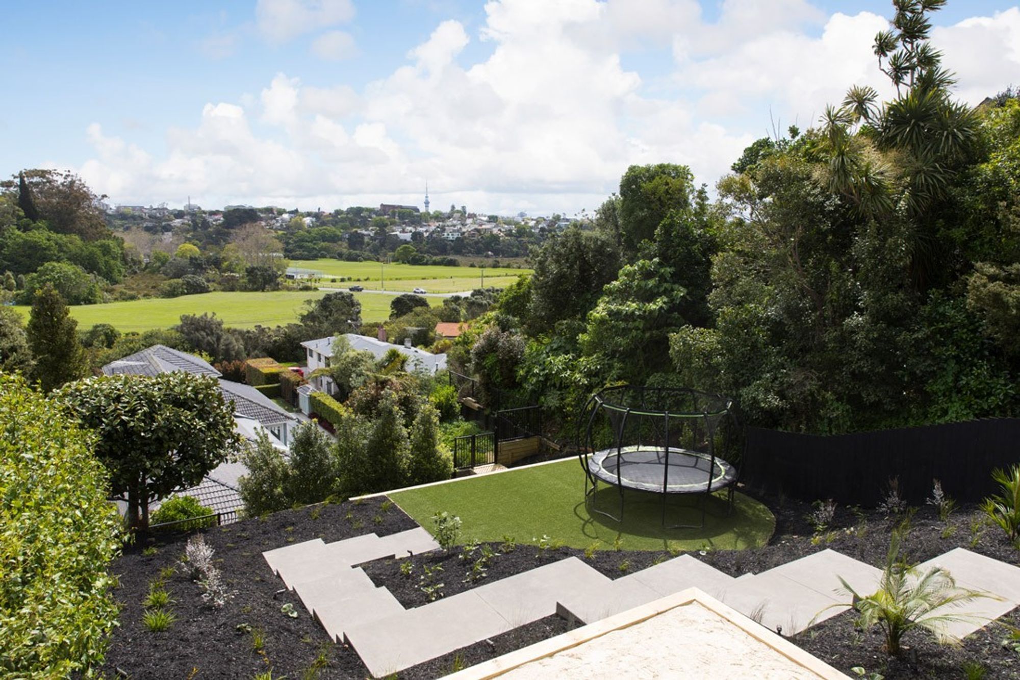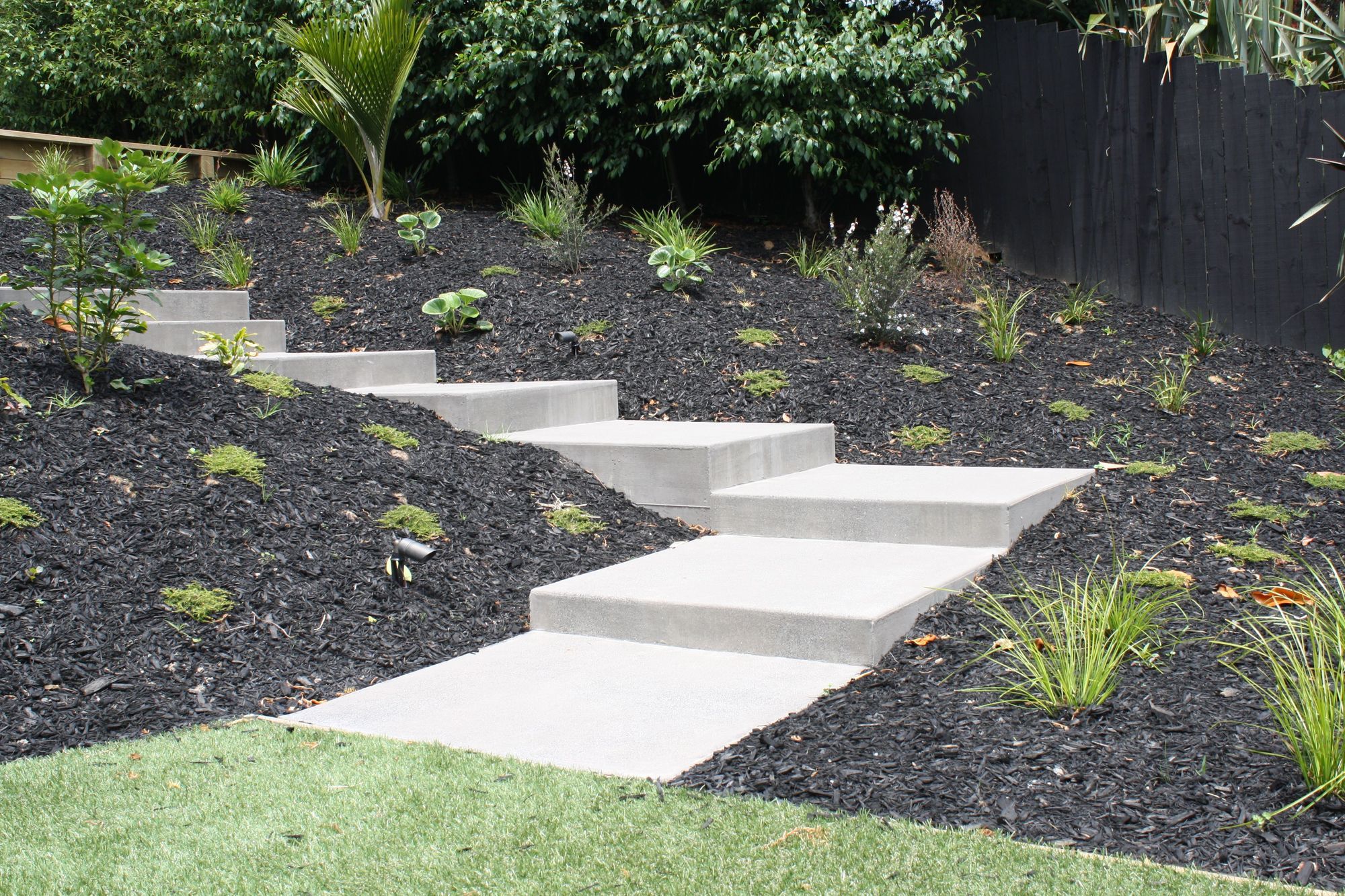 ArchiPro Project Summary - Innovative concrete slabs enhance accessibility in a steep backyard, transforming the landscape and providing essential access to the lower area of the property.