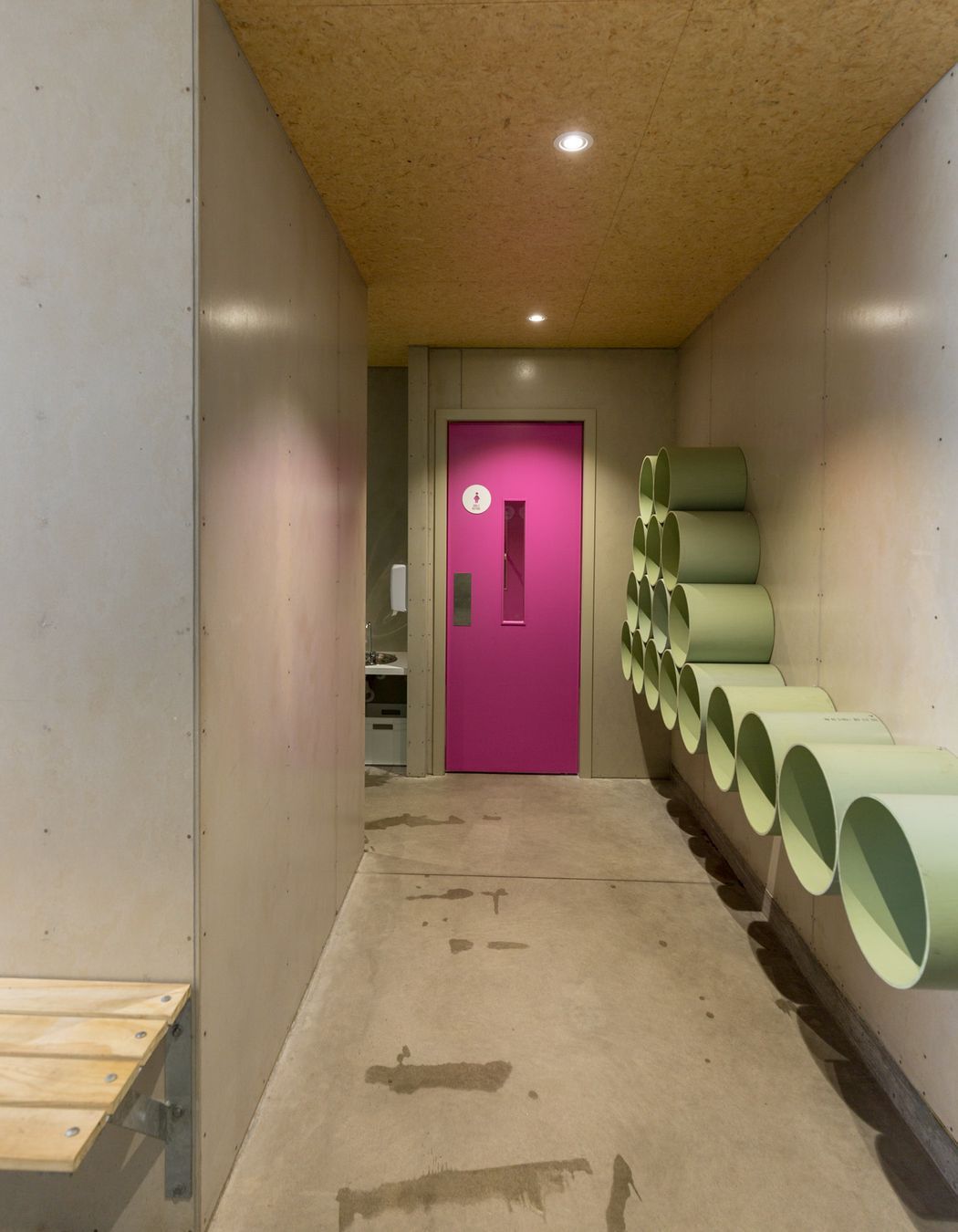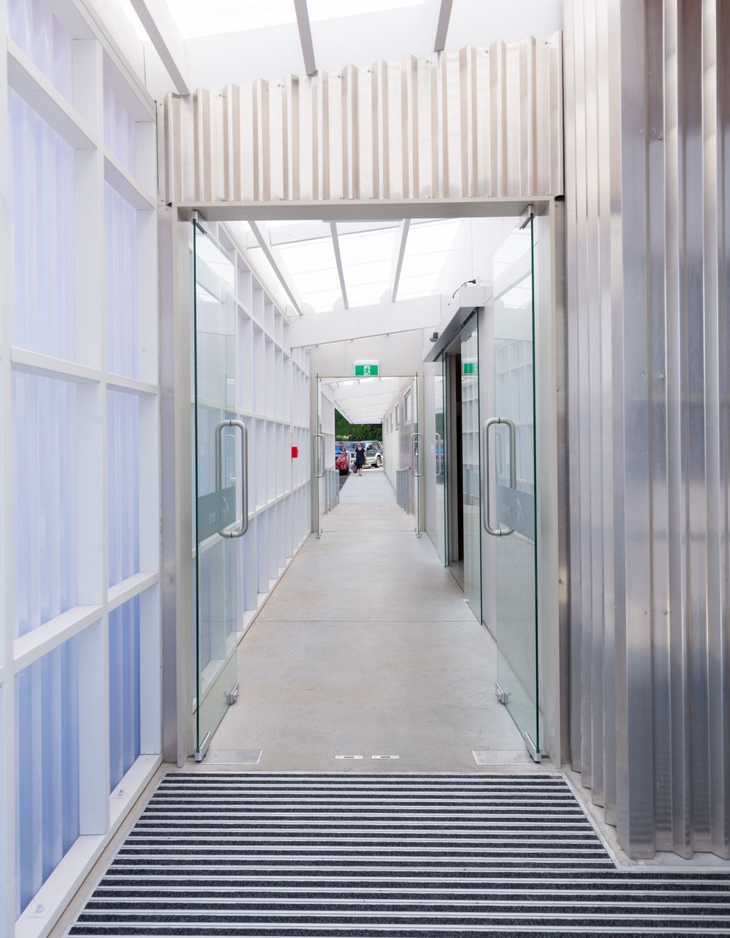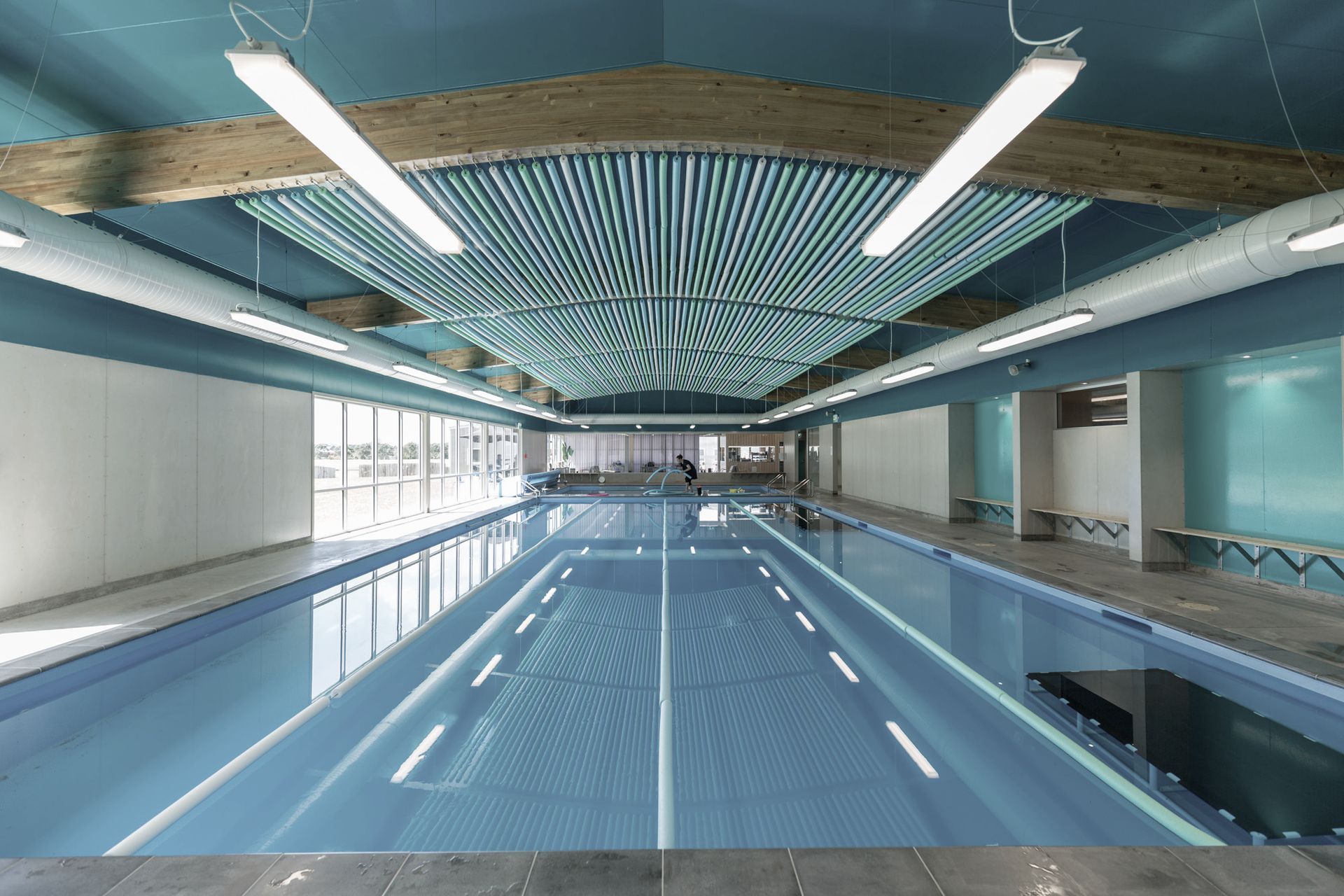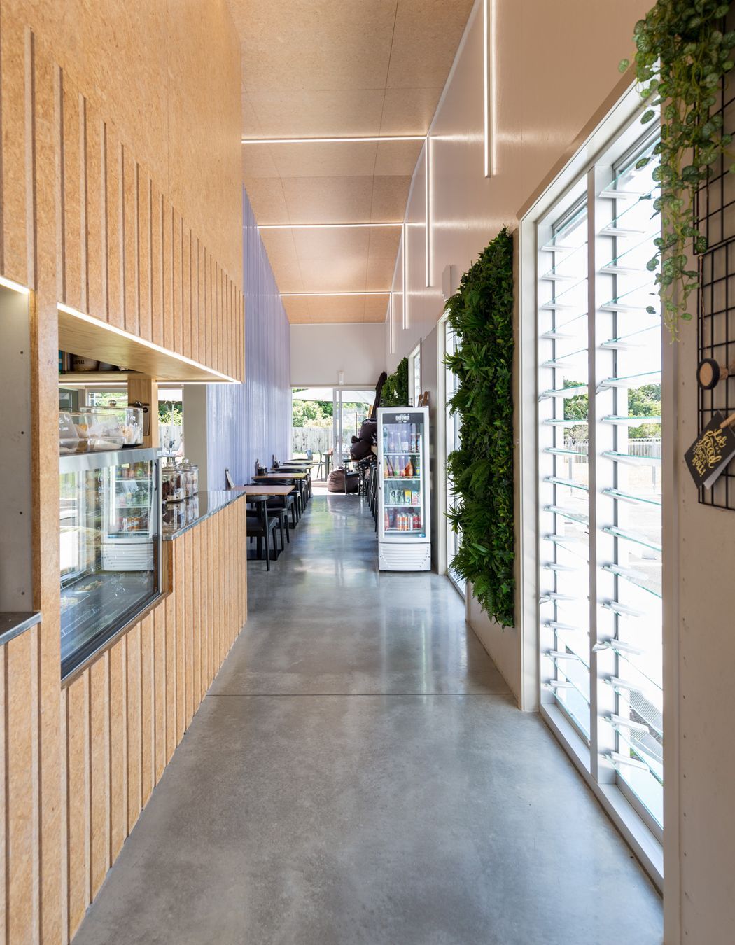 ArchiPro Project Summary - A finalist in the 2018 Civic Interior Awards, Streamline Swim Academy features a dual training pool complex with integrated changing facilities, a parent viewing area, and an independent café, all designed for efficiency and functionality within an industrial park setting.