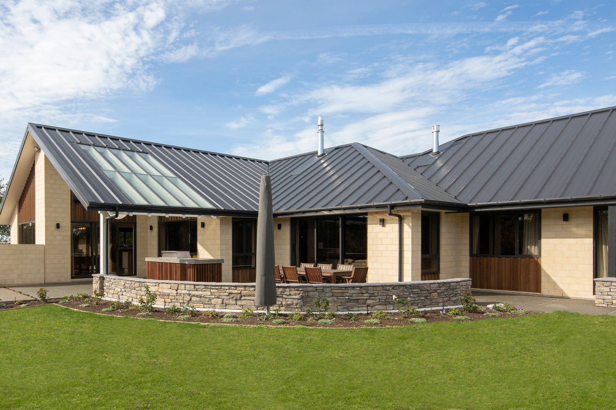 ArchiPro Project Summary - A spacious family home in Rangiora featuring the innovative Solar-Rib® roofing system, designed for sustainability and comfort, with a focus on energy efficiency and aesthetic appeal.