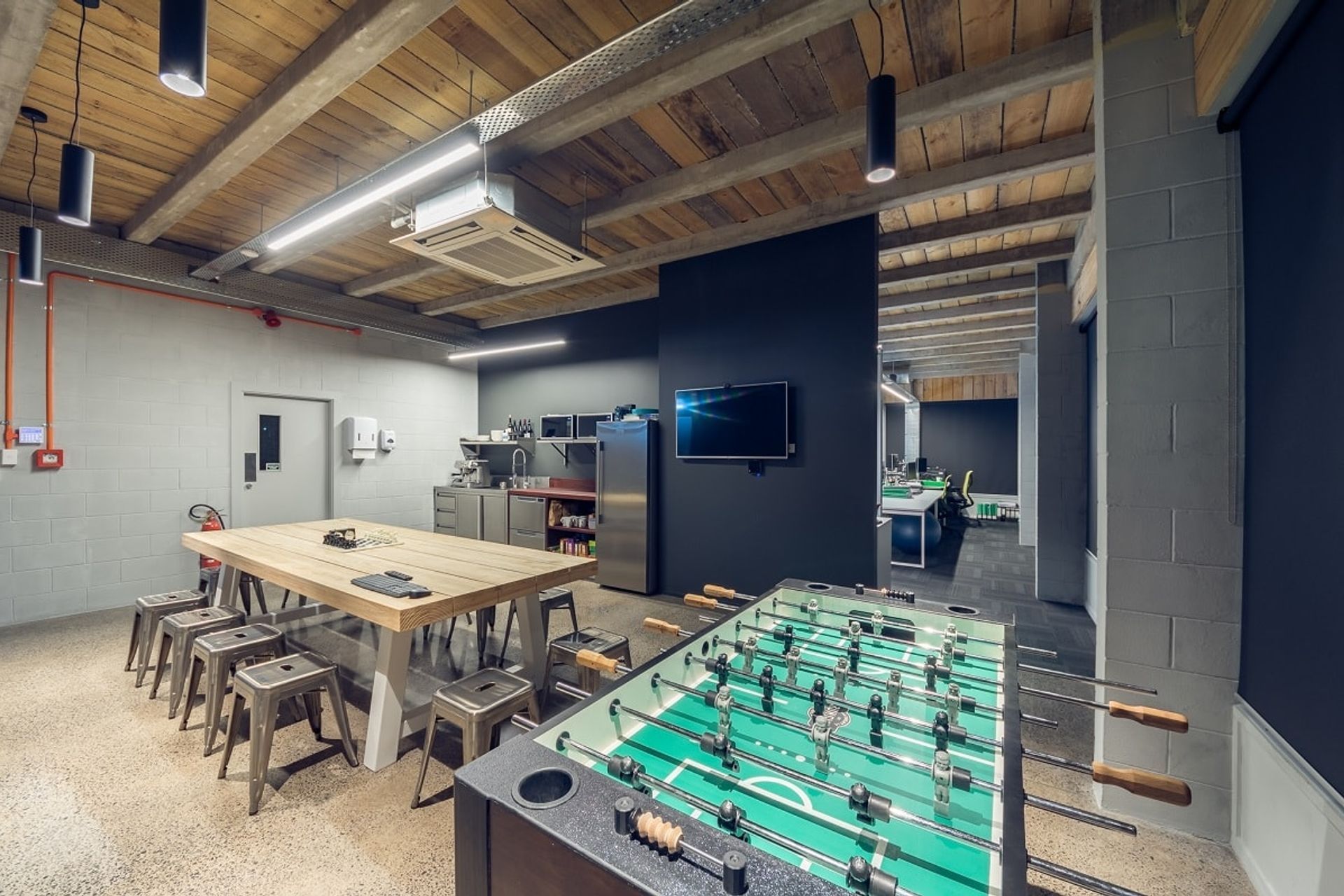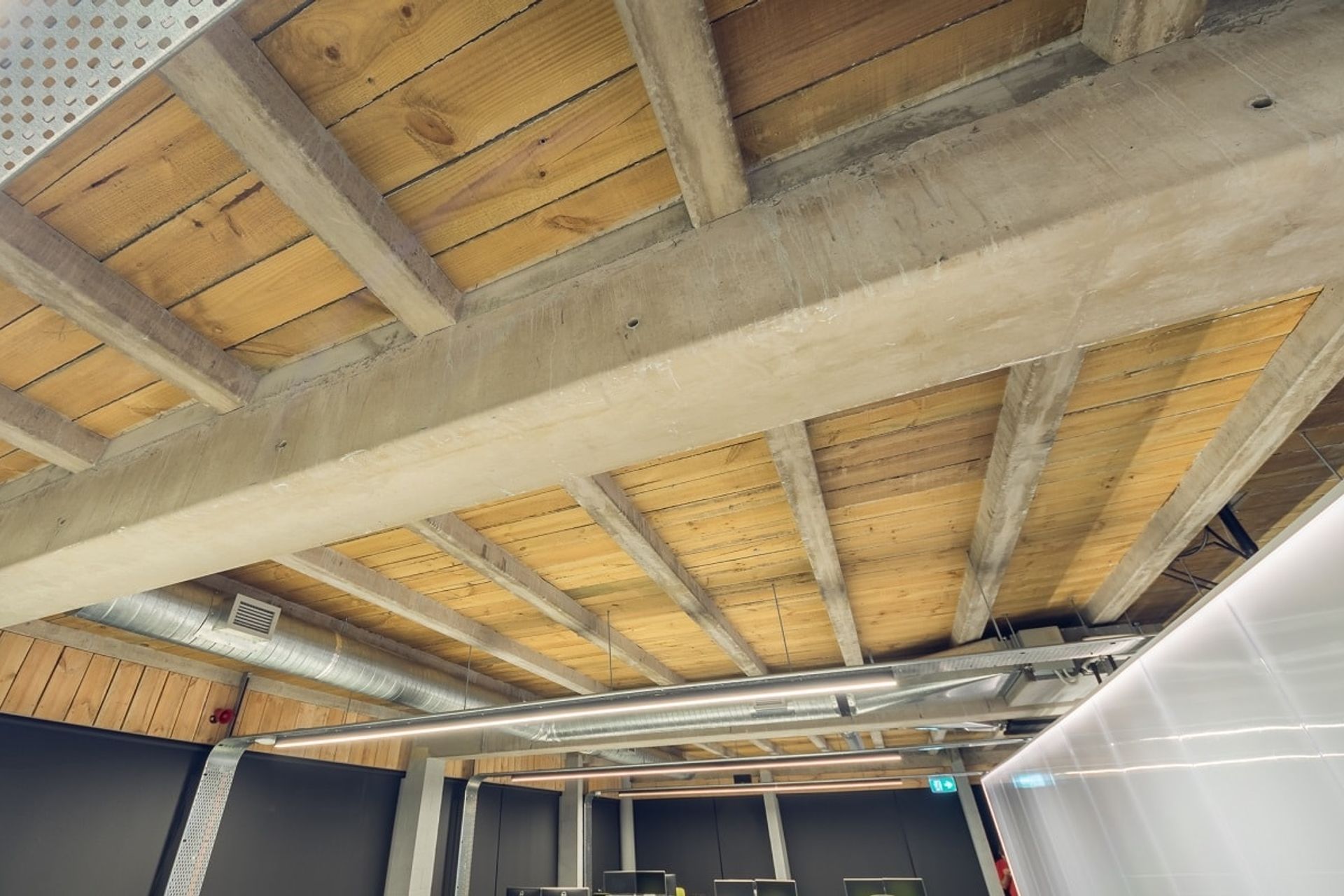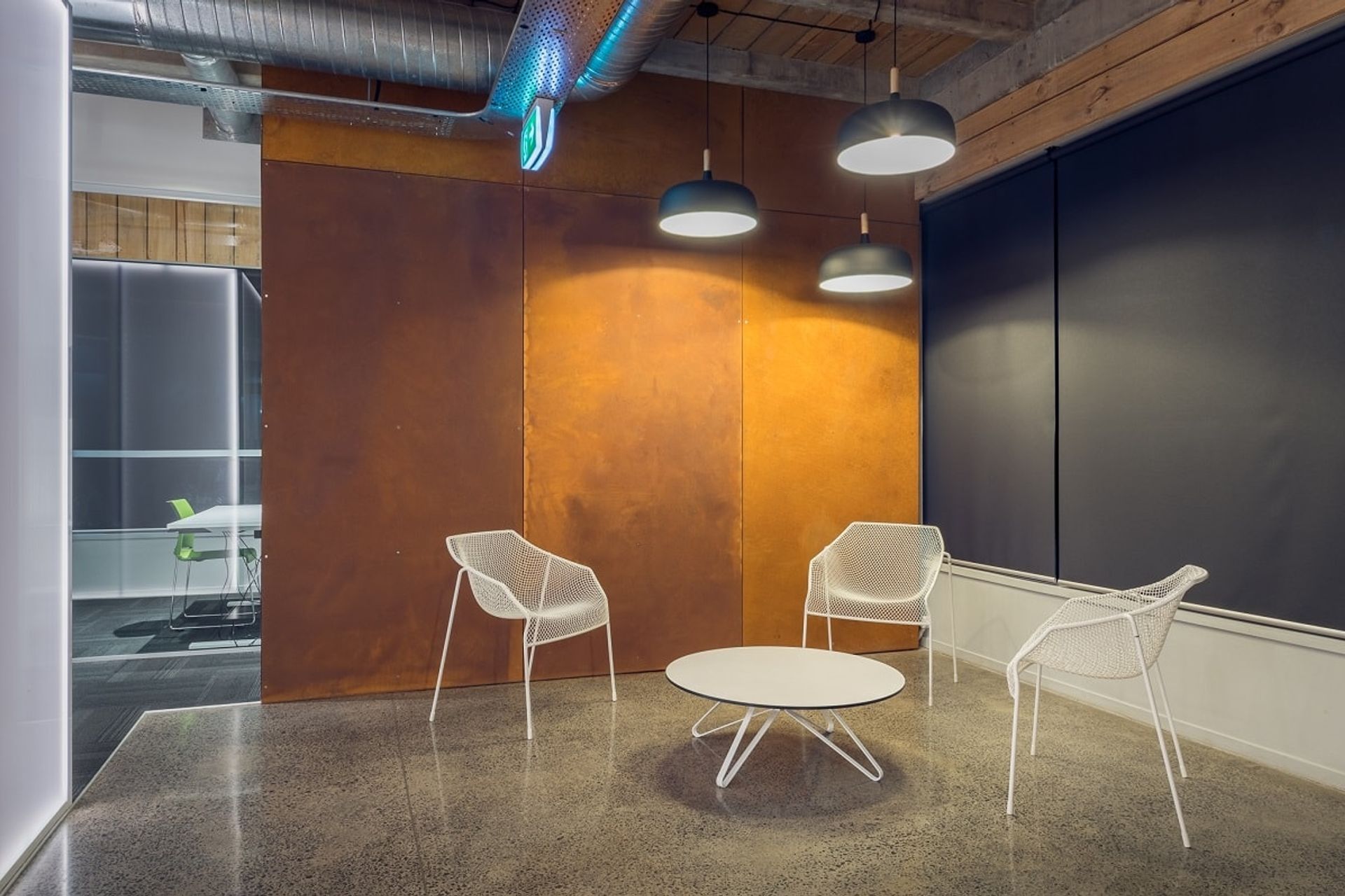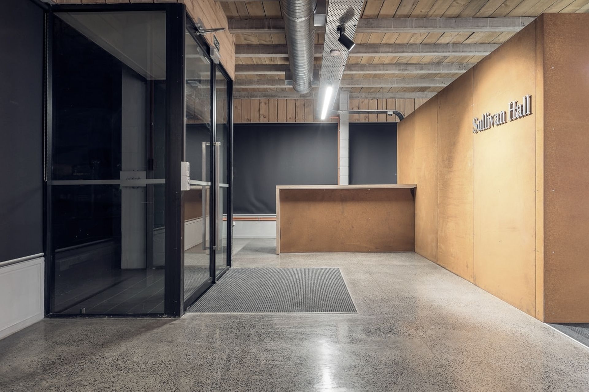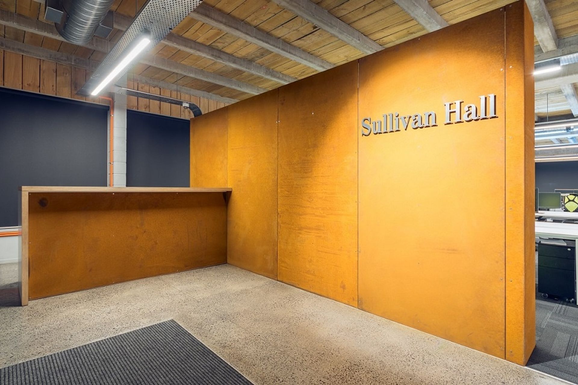 ArchiPro Project Summary - Sullivan Hall Workspace features multifunctional areas including offices, collaboration zones, and a quiet zone, while celebrating its raw structural elements with a dominant concrete frame and corten steel accents that develop a unique rust-like appearance over time.