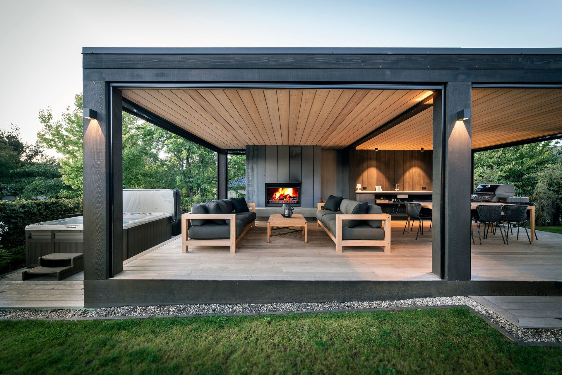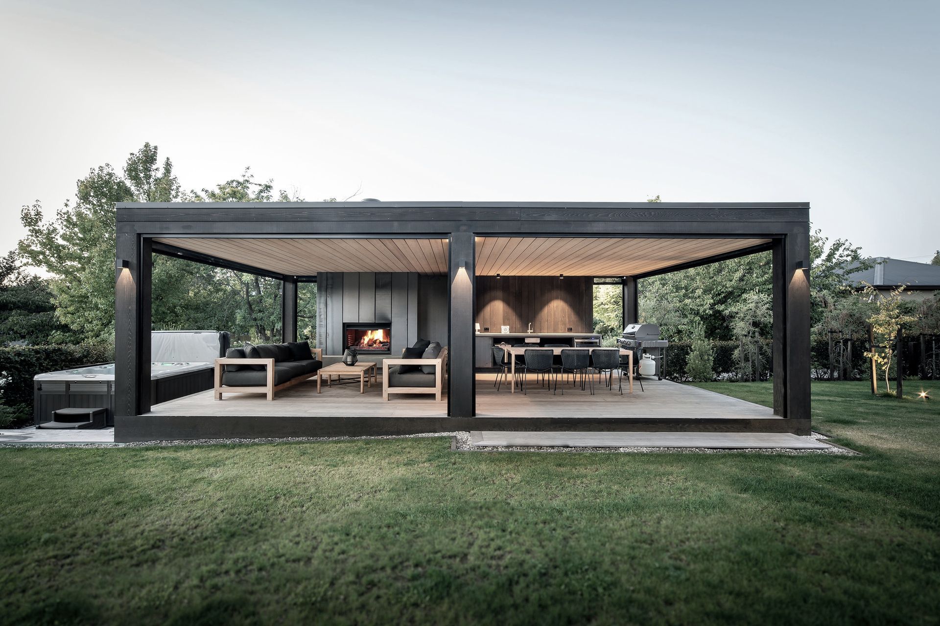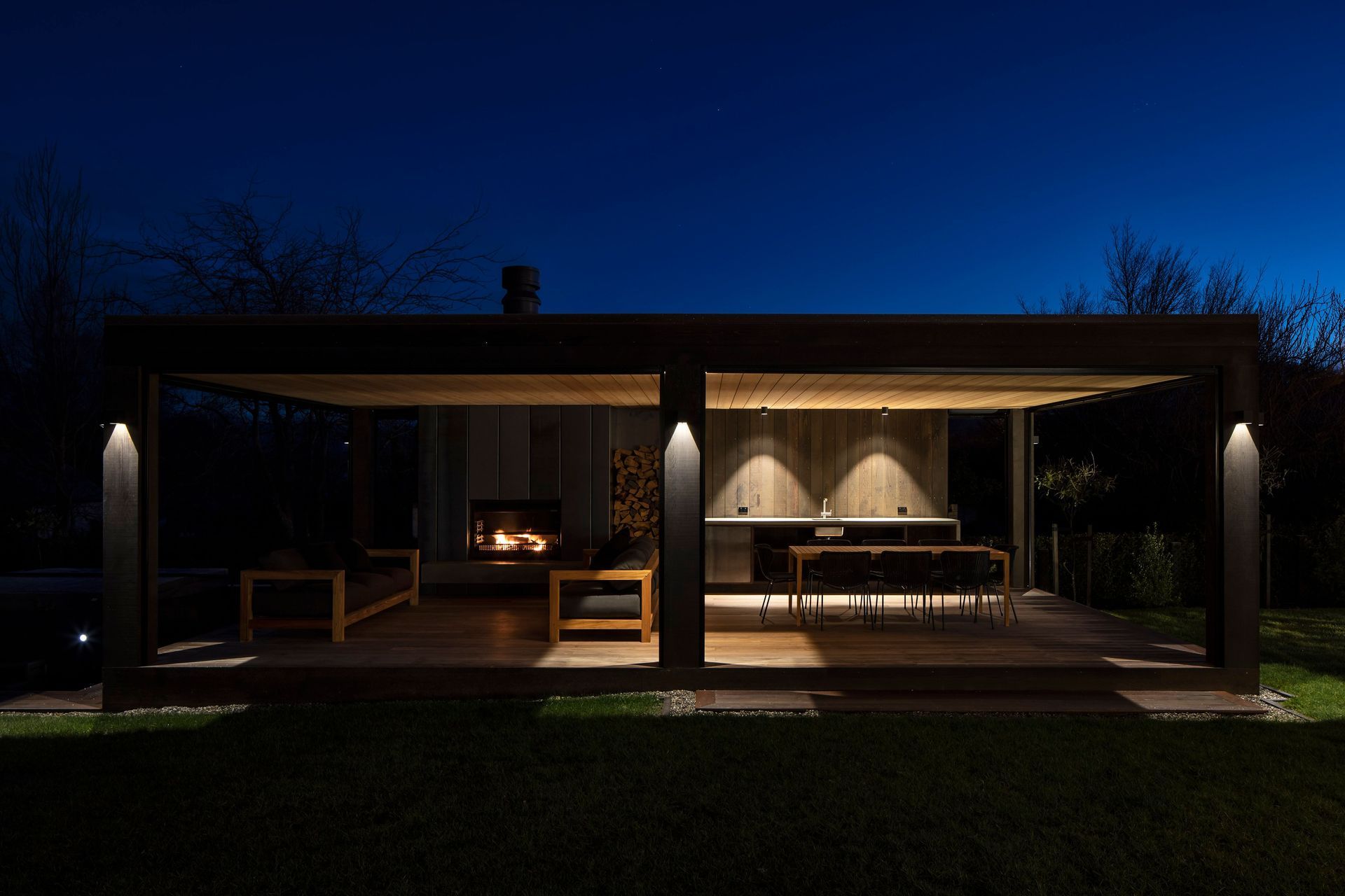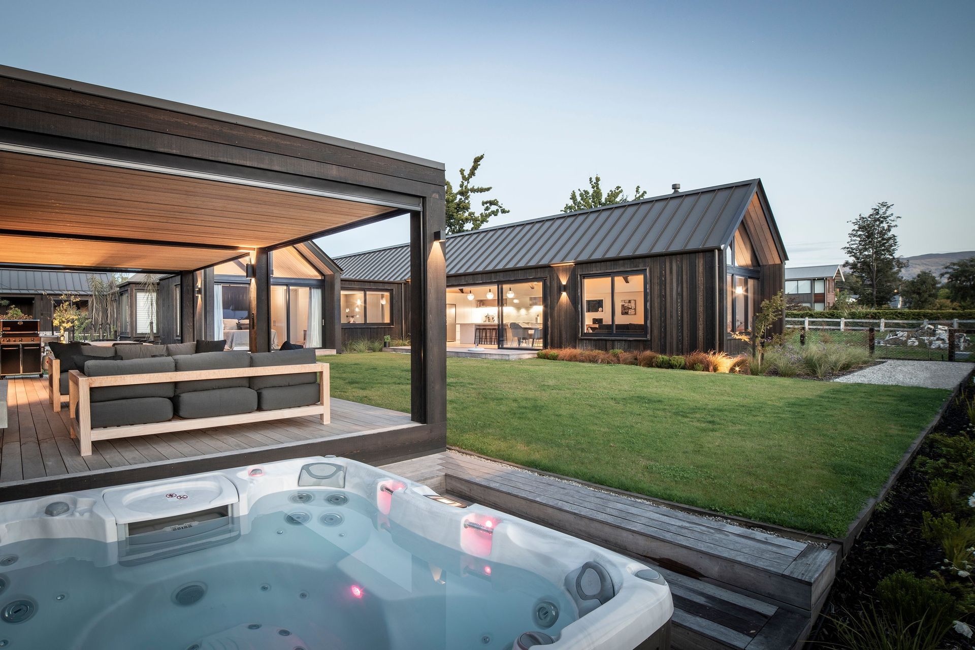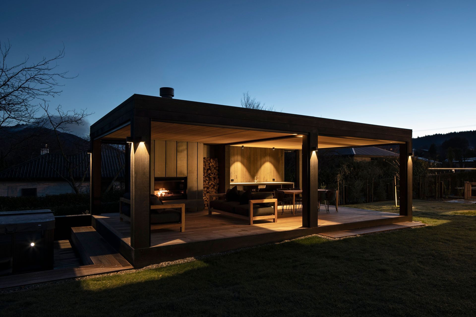 ArchiPro Project Summary - A thoughtfully designed summer house in Wanaka, completed in 2018, featuring a pizza oven and spa pool, providing a private retreat that complements the main residence while enhancing outdoor living.