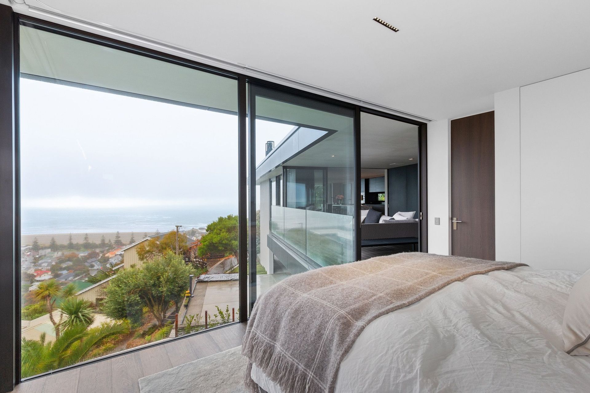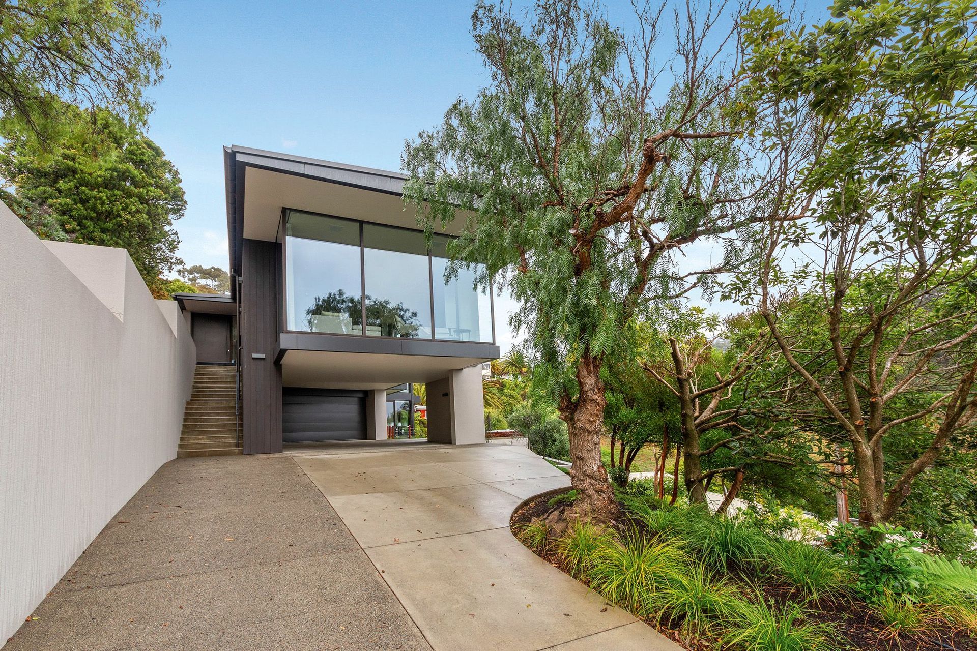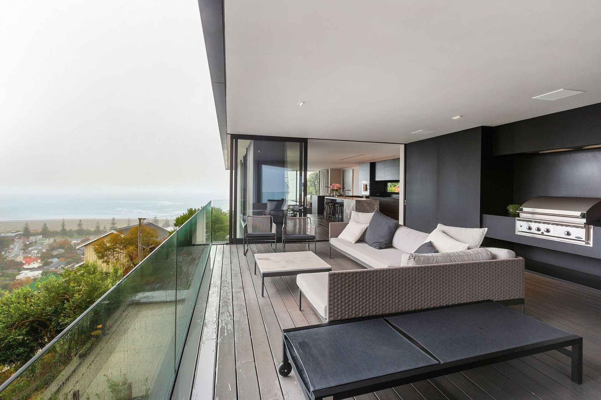 ArchiPro Project Summary - Architect-designed hilltop home maximizing panoramic views with a split-level open plan living space and strategically placed eaves for optimal sunlight management.