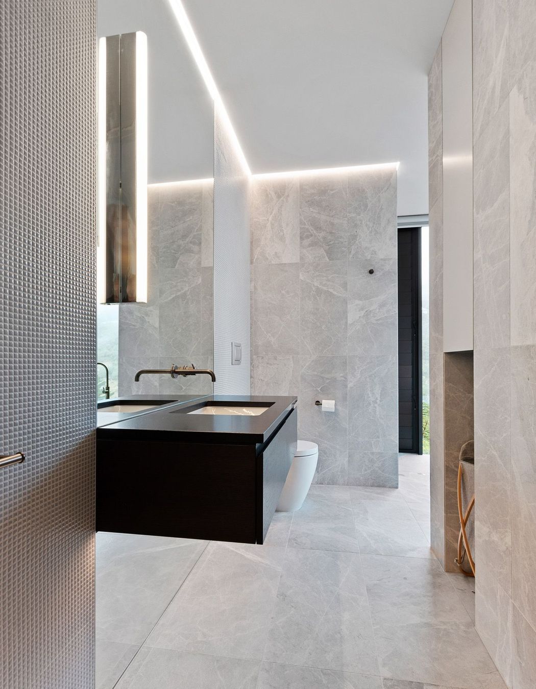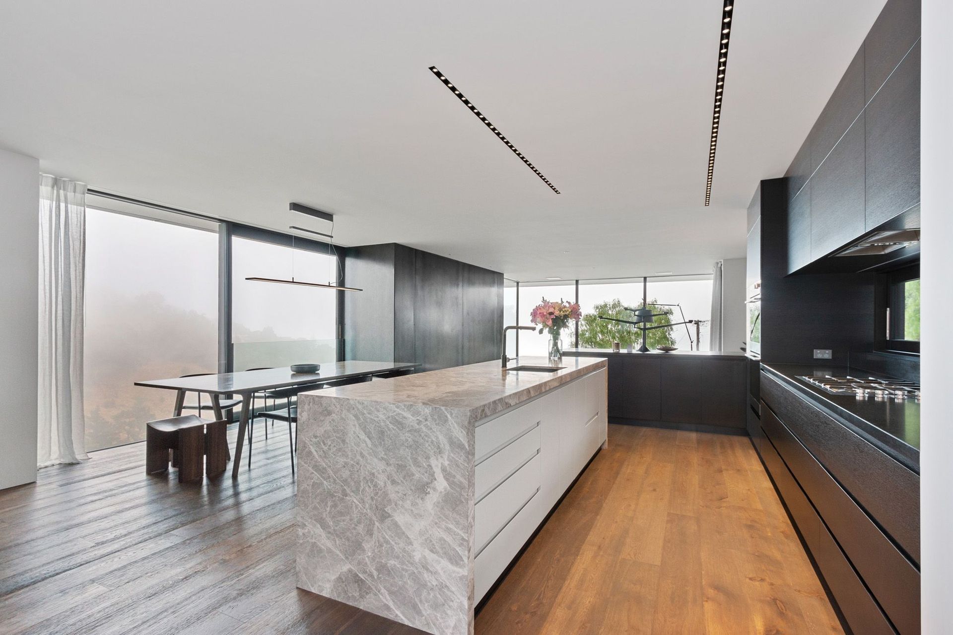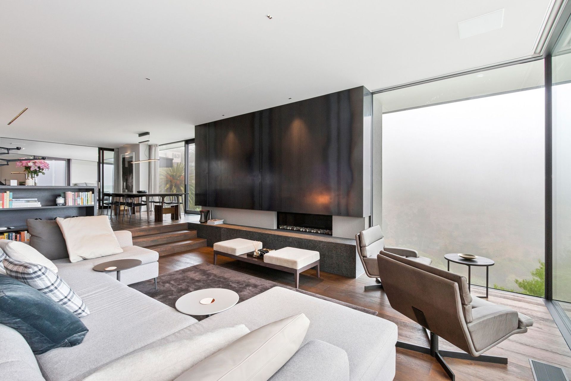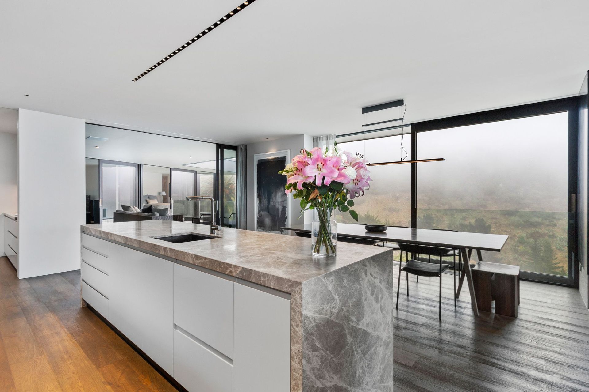 ArchiPro Project Summary - Architect-designed hilltop home maximizing panoramic views with a split-level open plan living space and strategically placed eaves for optimal sunlight management.