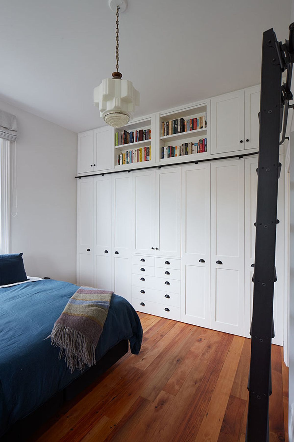 ArchiPro Project Summary - Innovative renovation of an old cottage, enhancing storage solutions and creating an ensuite for a young couple through clever design and hidden storage areas.