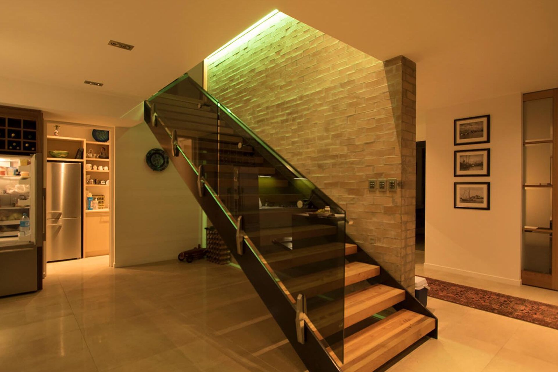 ArchiPro Project Summary - A stunning two-storey home featuring a custom-made staircase, bespoke cabinetry, and seamless indoor-outdoor living, designed by Jones Architects and completed by Maxim Build in 2014, overlooking the picturesque harbour and native bush.