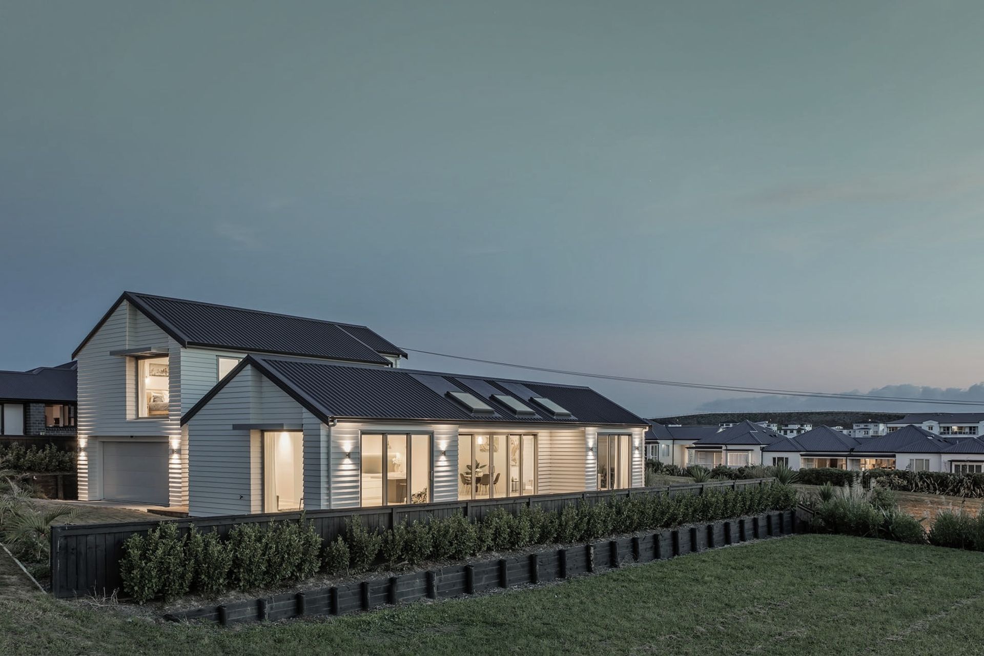ArchiPro Project Summary - A contemporary 4-bedroom, 2-bathroom showhome that embodies the aspirations of modern New Zealand families, featuring a classic weatherboard exterior with a modern twist, designed to highlight versatile design options and premium finishes.