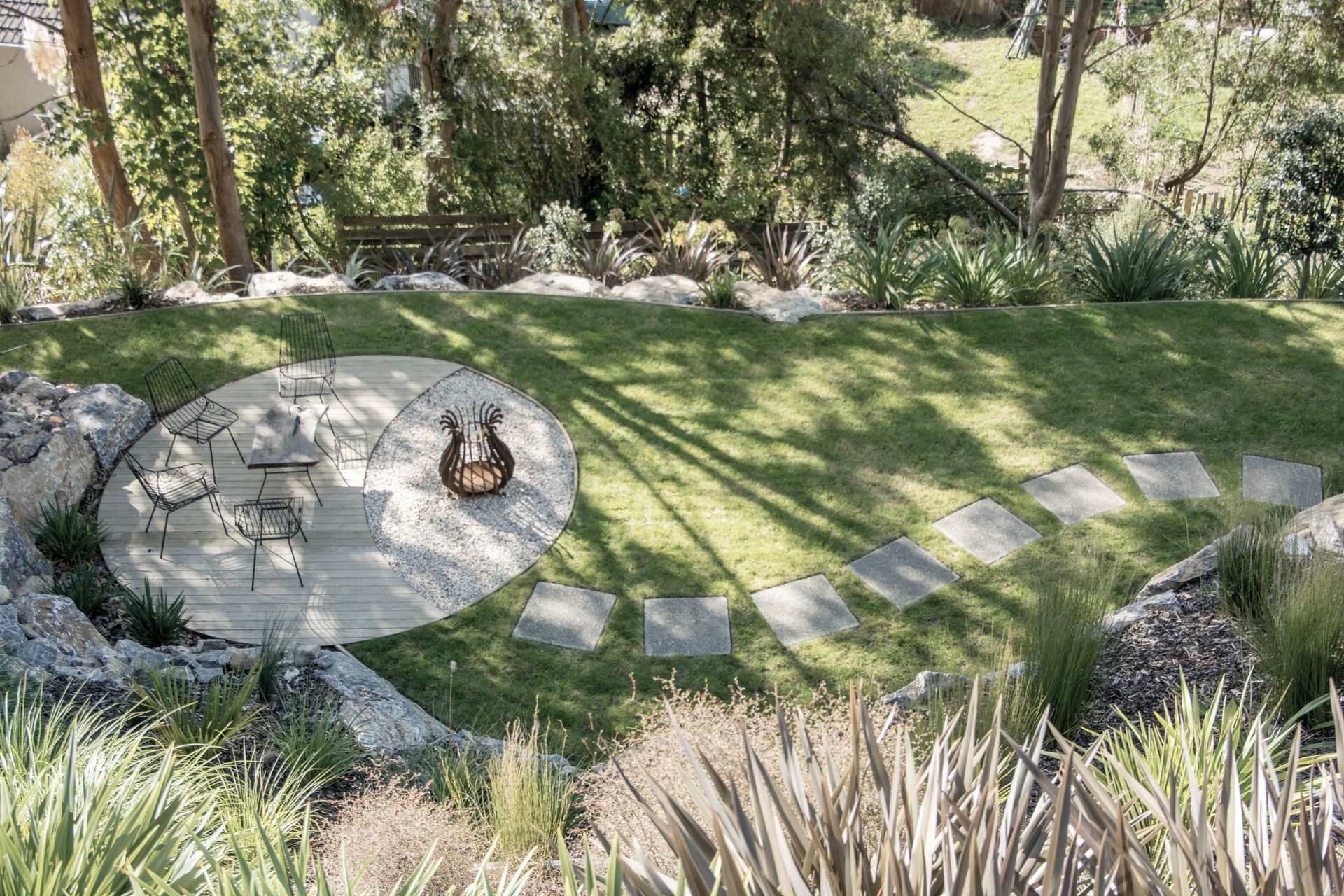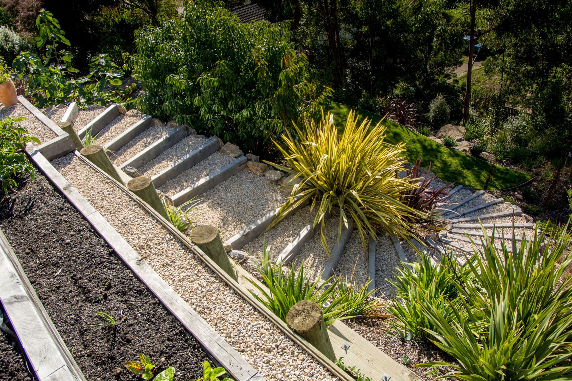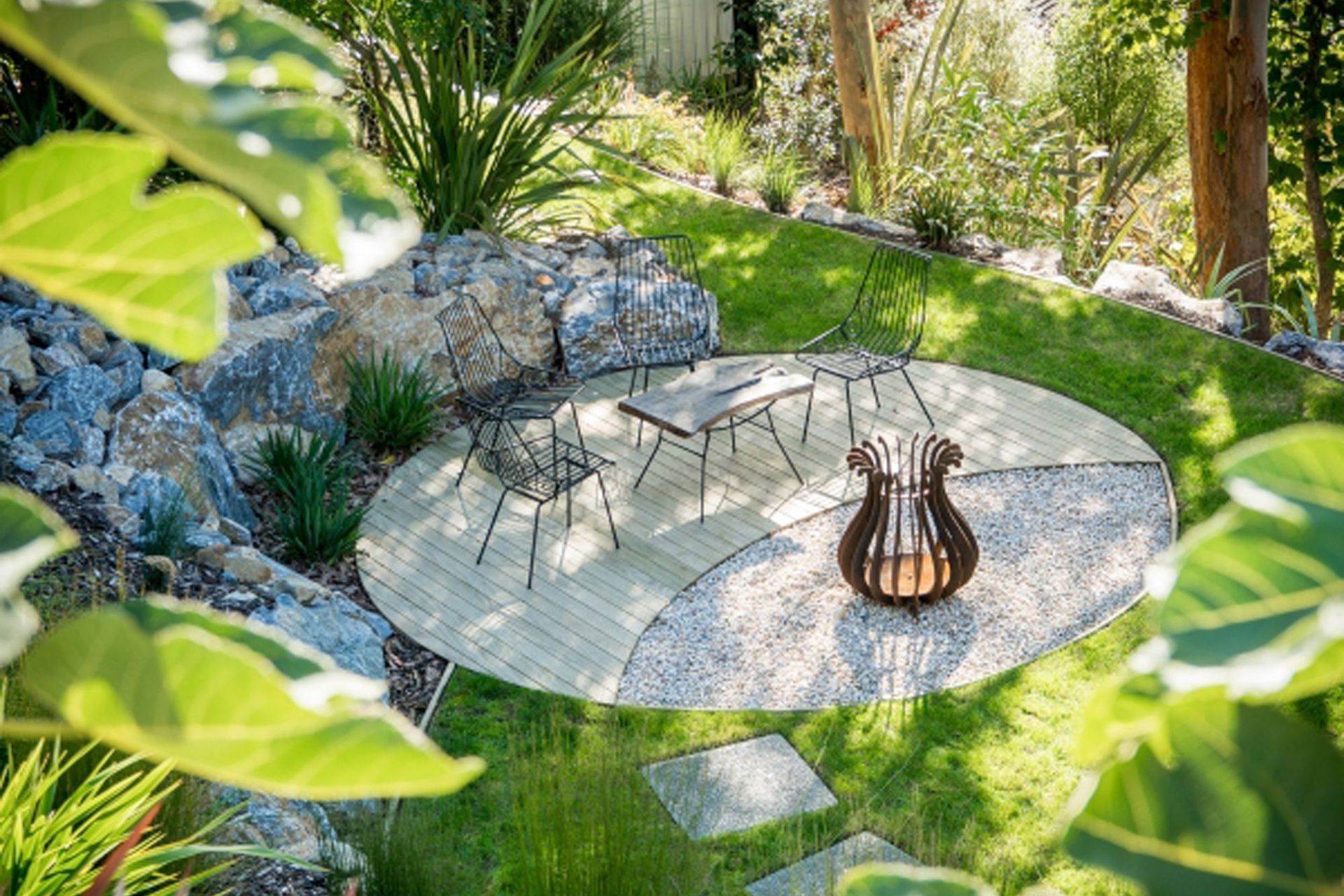 ArchiPro Project Summary - Secluded coastal garden in Tahunanui Hills, inspired by the natural forms of the Nelson Hills, featuring lush tropical plants and stunning views of Tahunanui Beach and Tasman Bay.