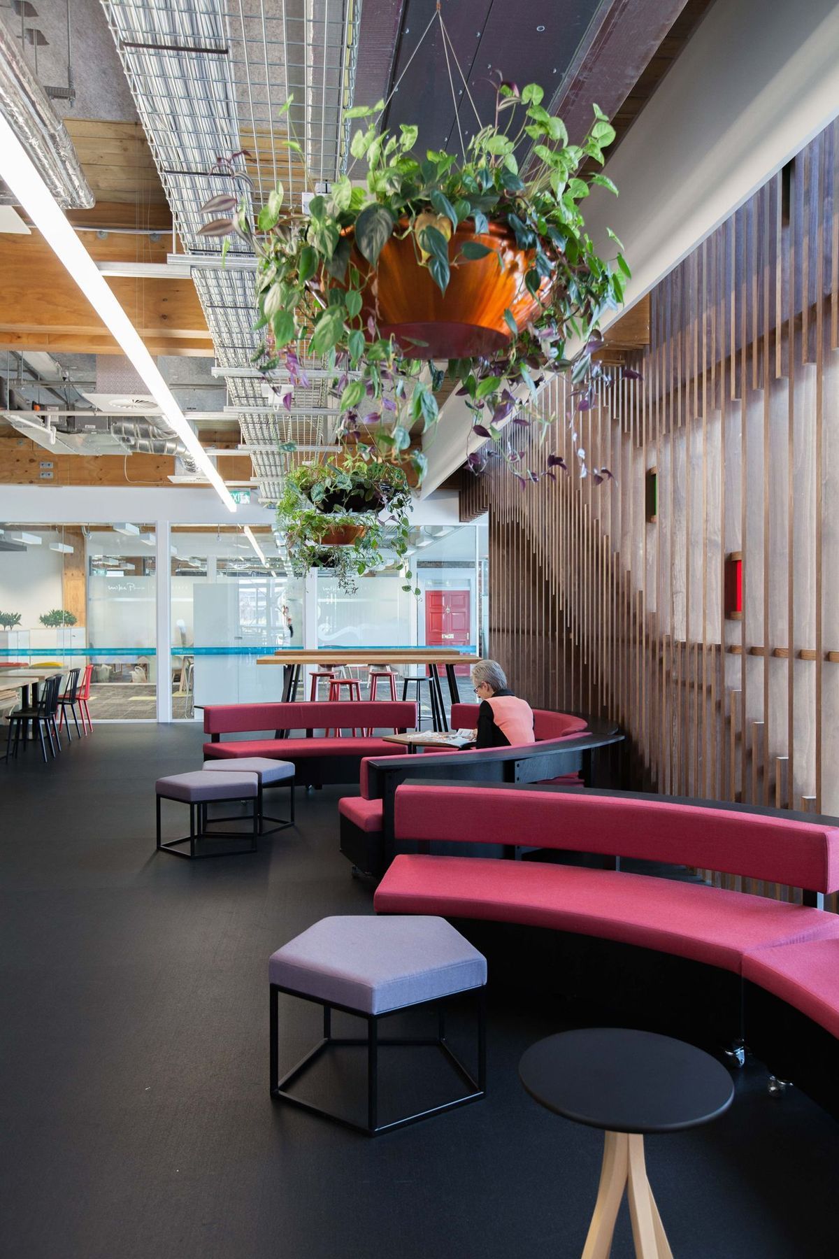 ArchiPro Project Summary - Innovative fit-out for Tait Communications featuring collaborative workspaces, public lounge, and custom furniture inspired by local geology, enhancing both employee engagement and public interaction in a 3000 sqm commercial environment.