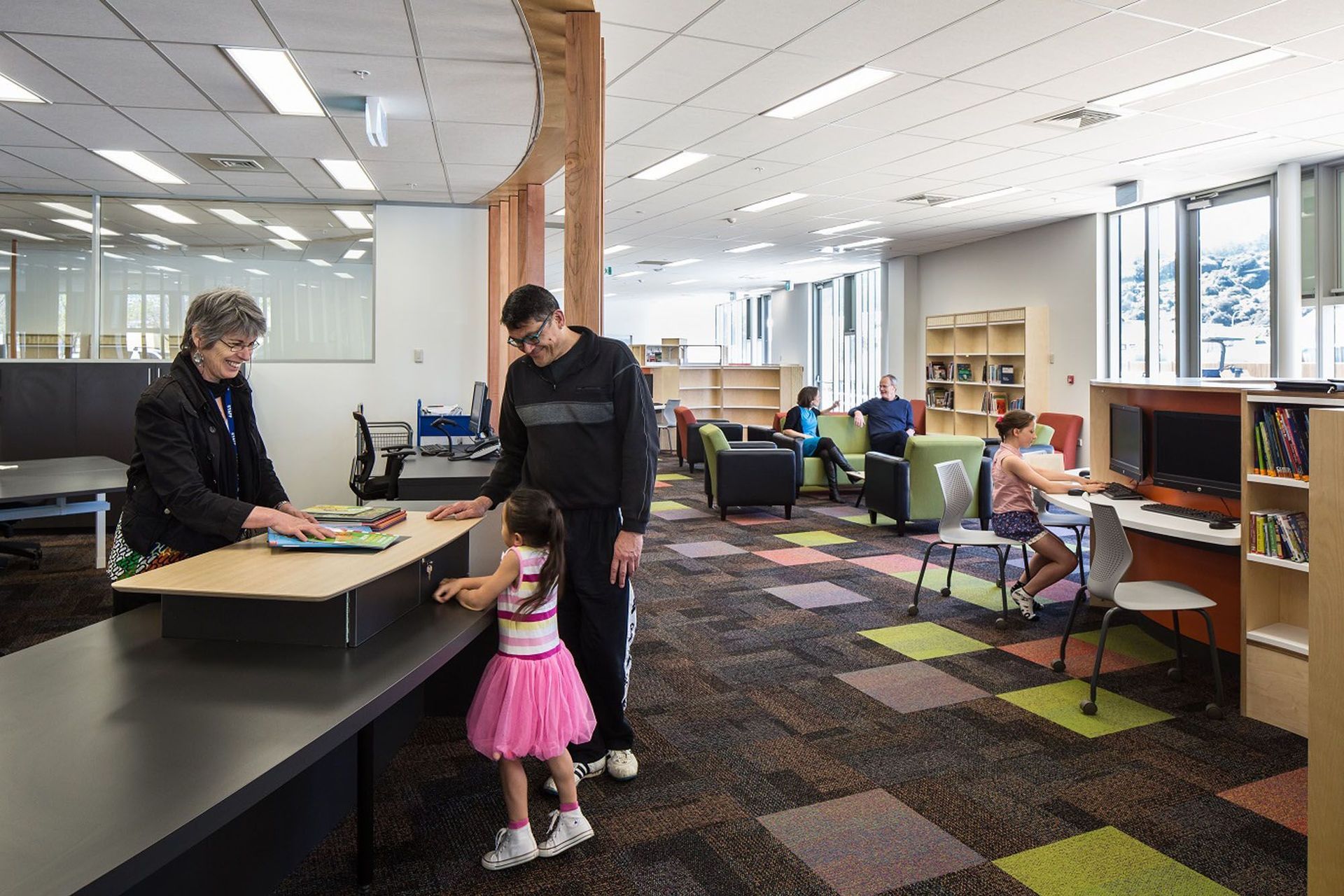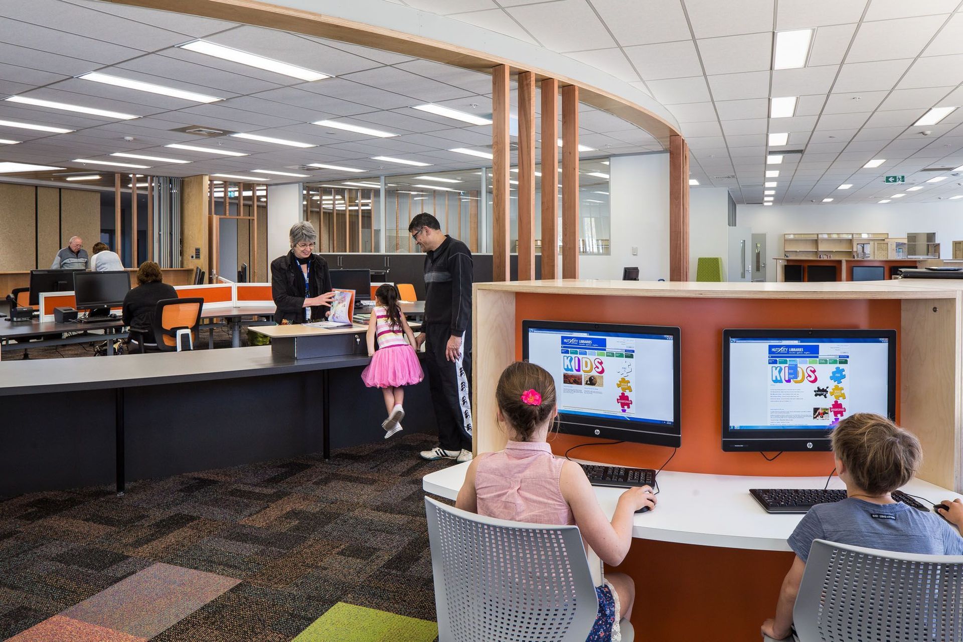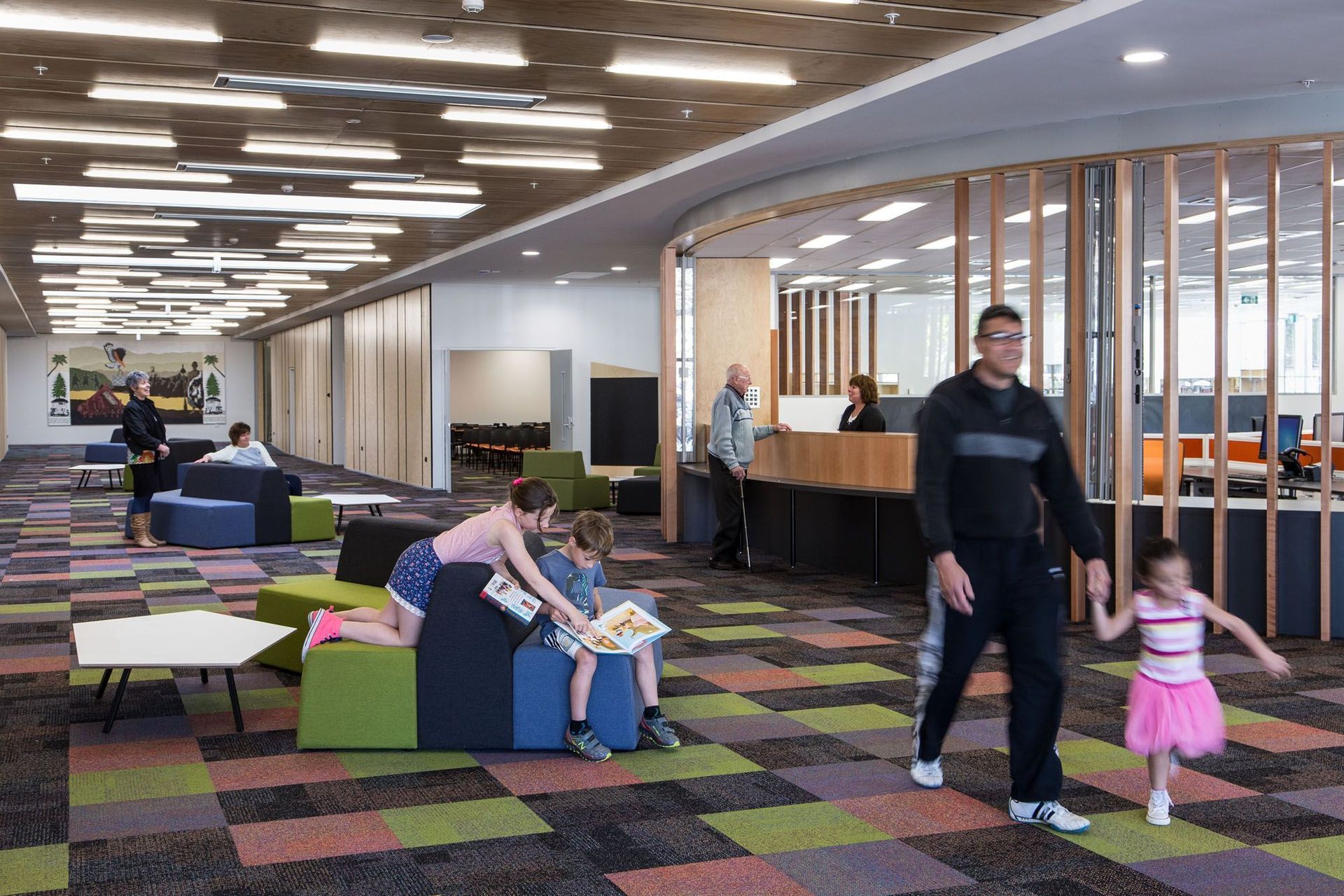 ArchiPro Project Summary - Taita Library: A contemporary community hub designed to inspire and engage, featuring vibrant colors and adaptable spaces influenced by local birdlife, completed in 2018.