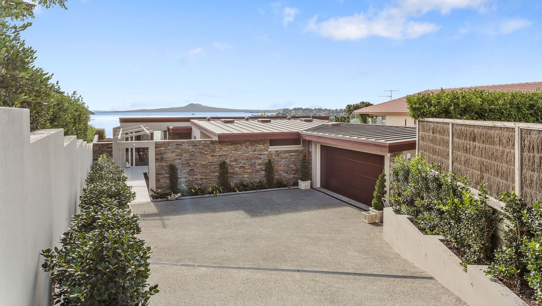 ArchiPro Project Summary - Luxurious clifftop residence in Half Moon Bay featuring innovative design, durable materials, and breathtaking views of the Tamaki Estuary, complemented by advanced home management systems and a serene landscaped courtyard with an aqua aerobics pool.