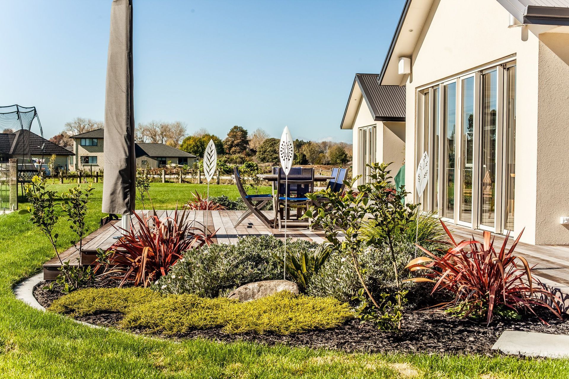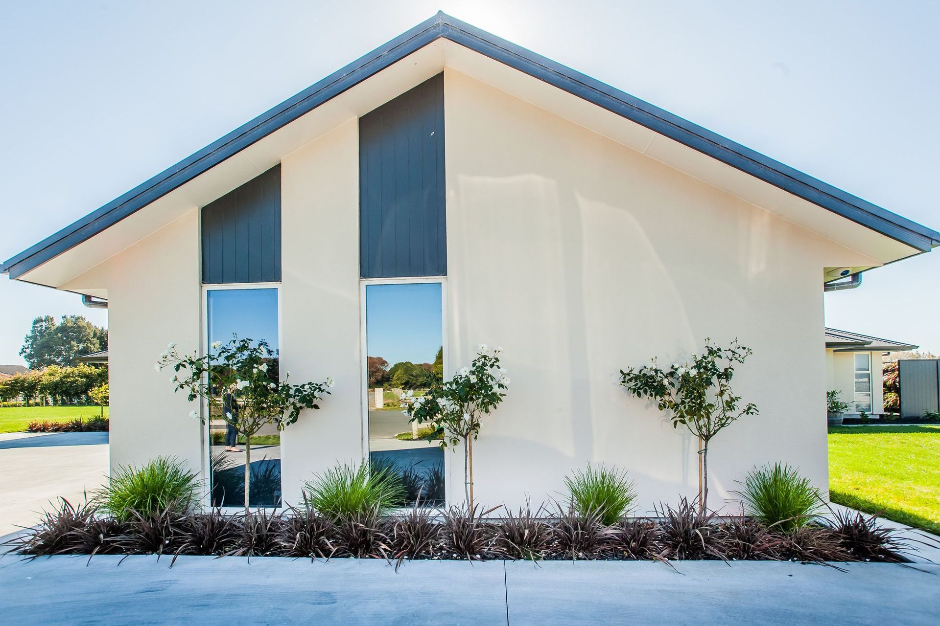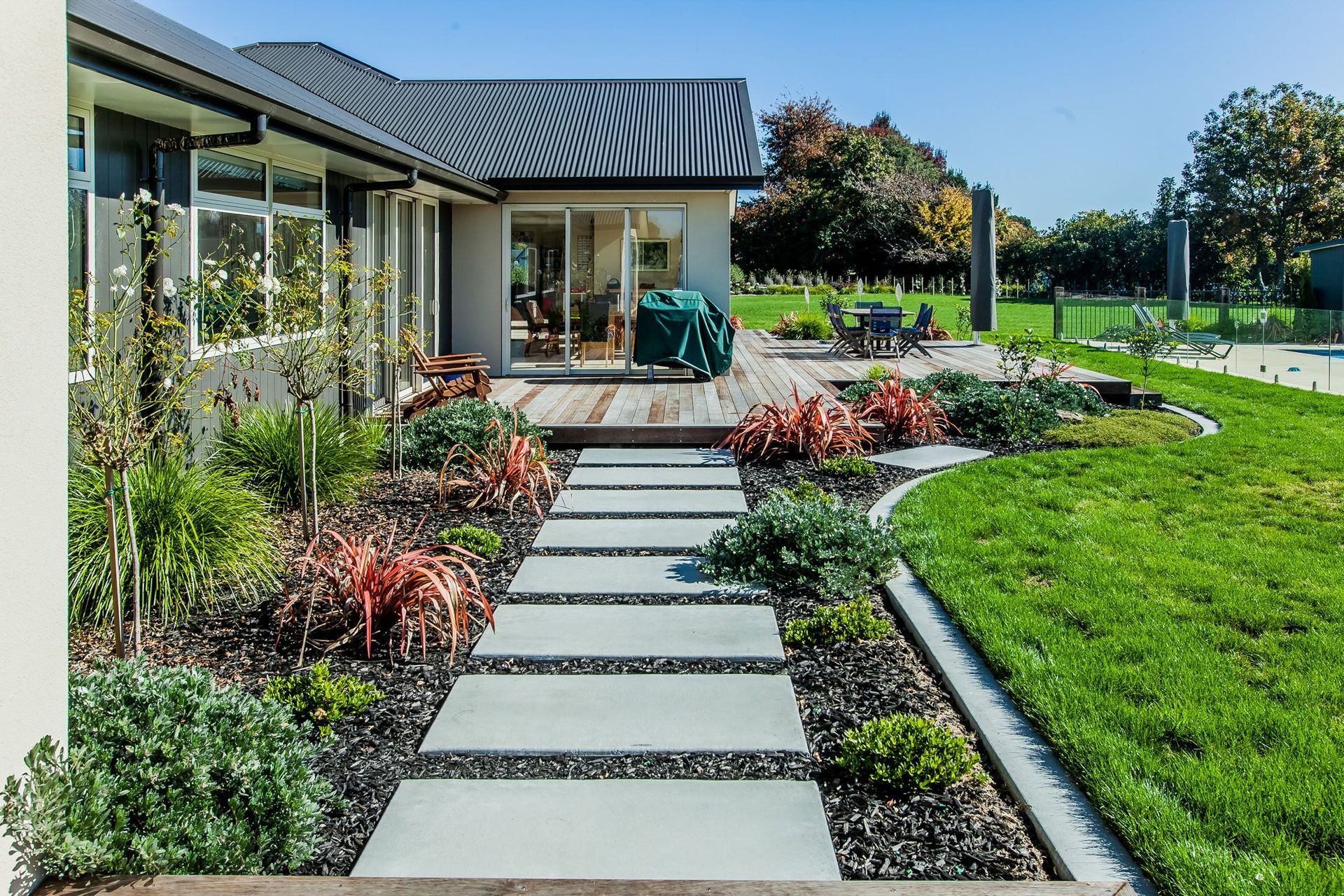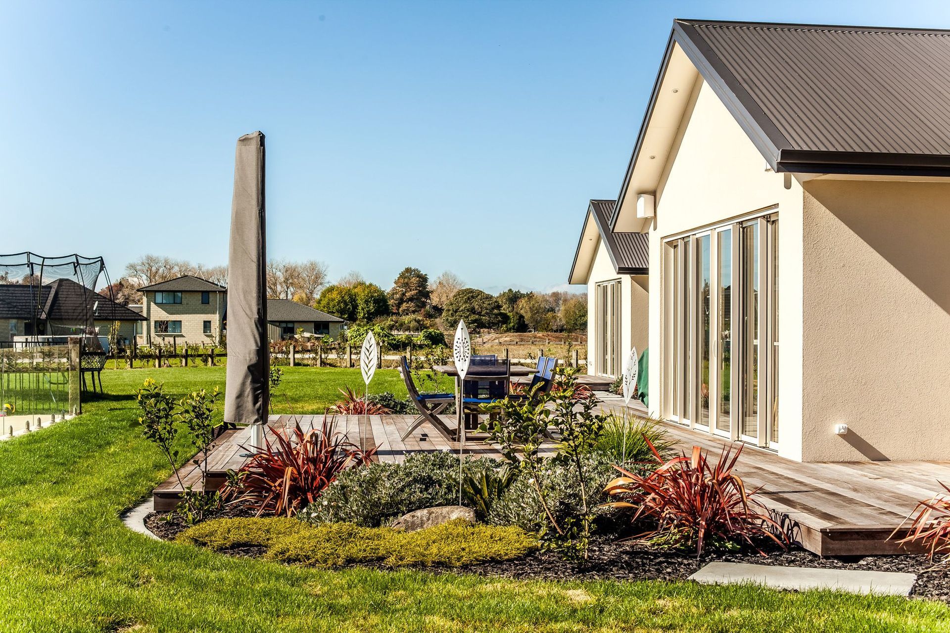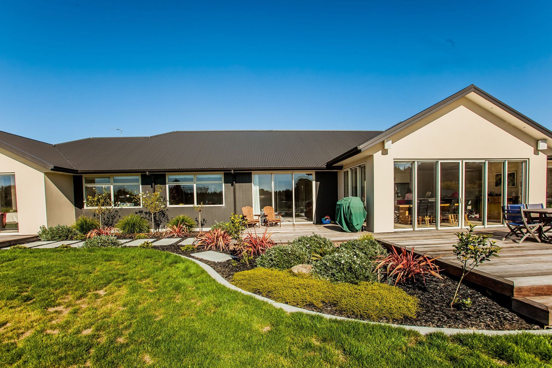ArchiPro Project Summary - The Tamahere project features modern architecture, sustainable design, and landscaped gardens.