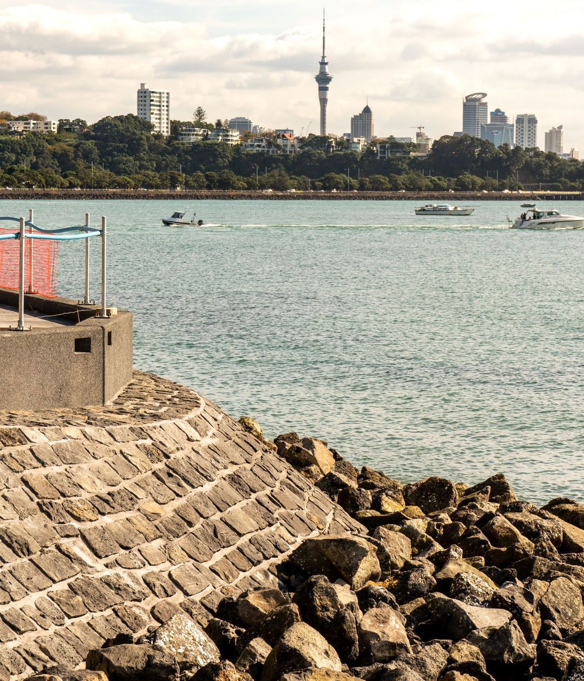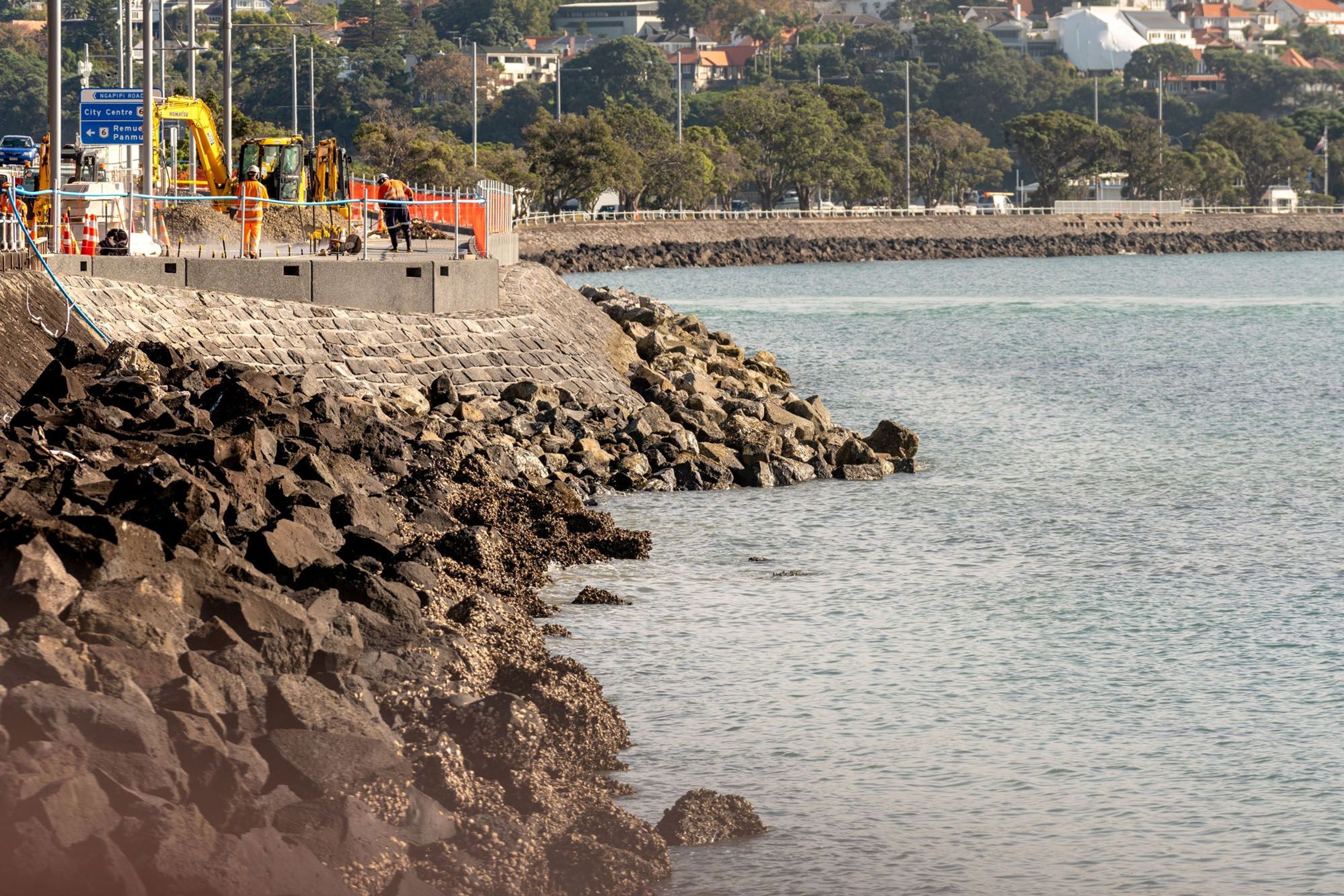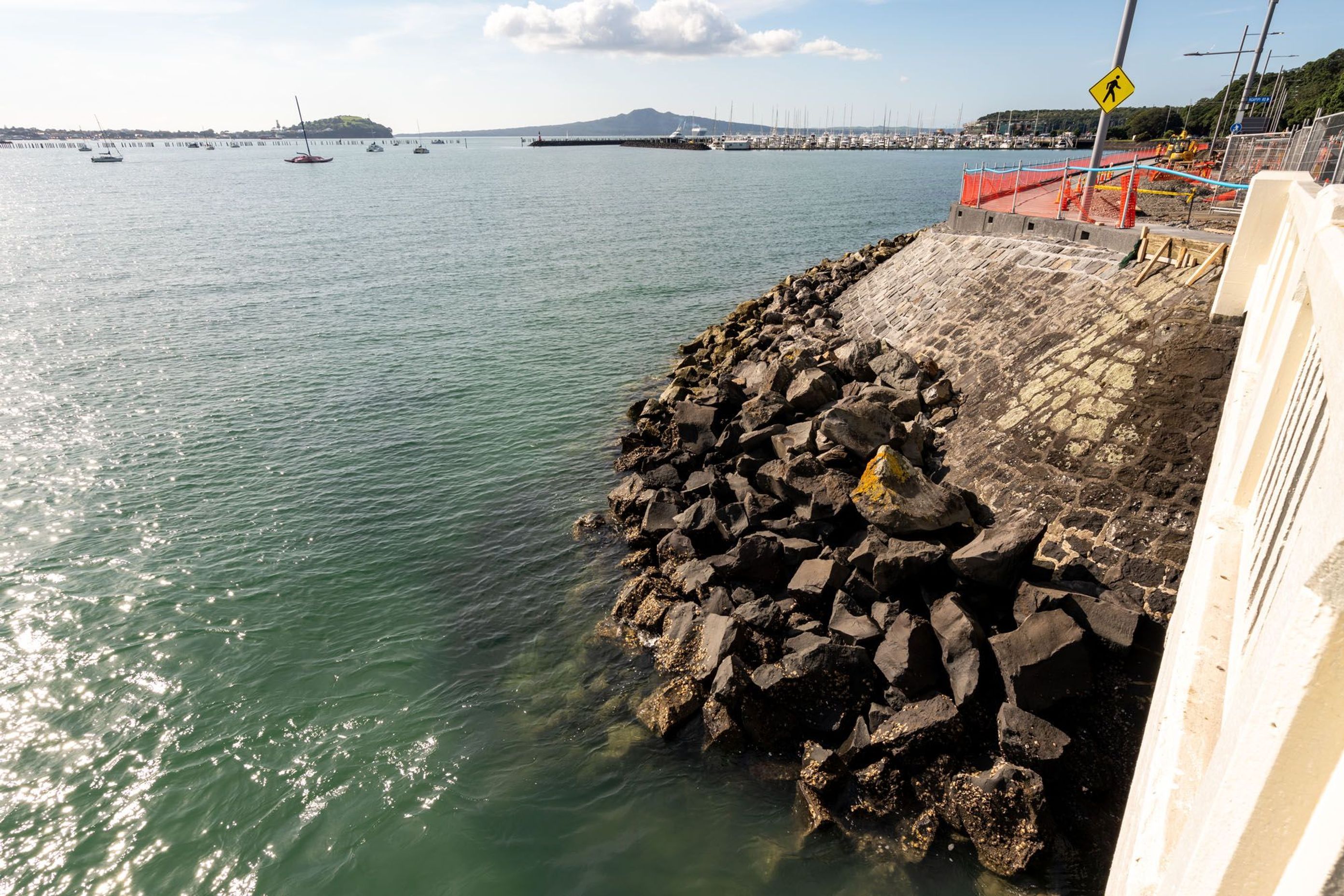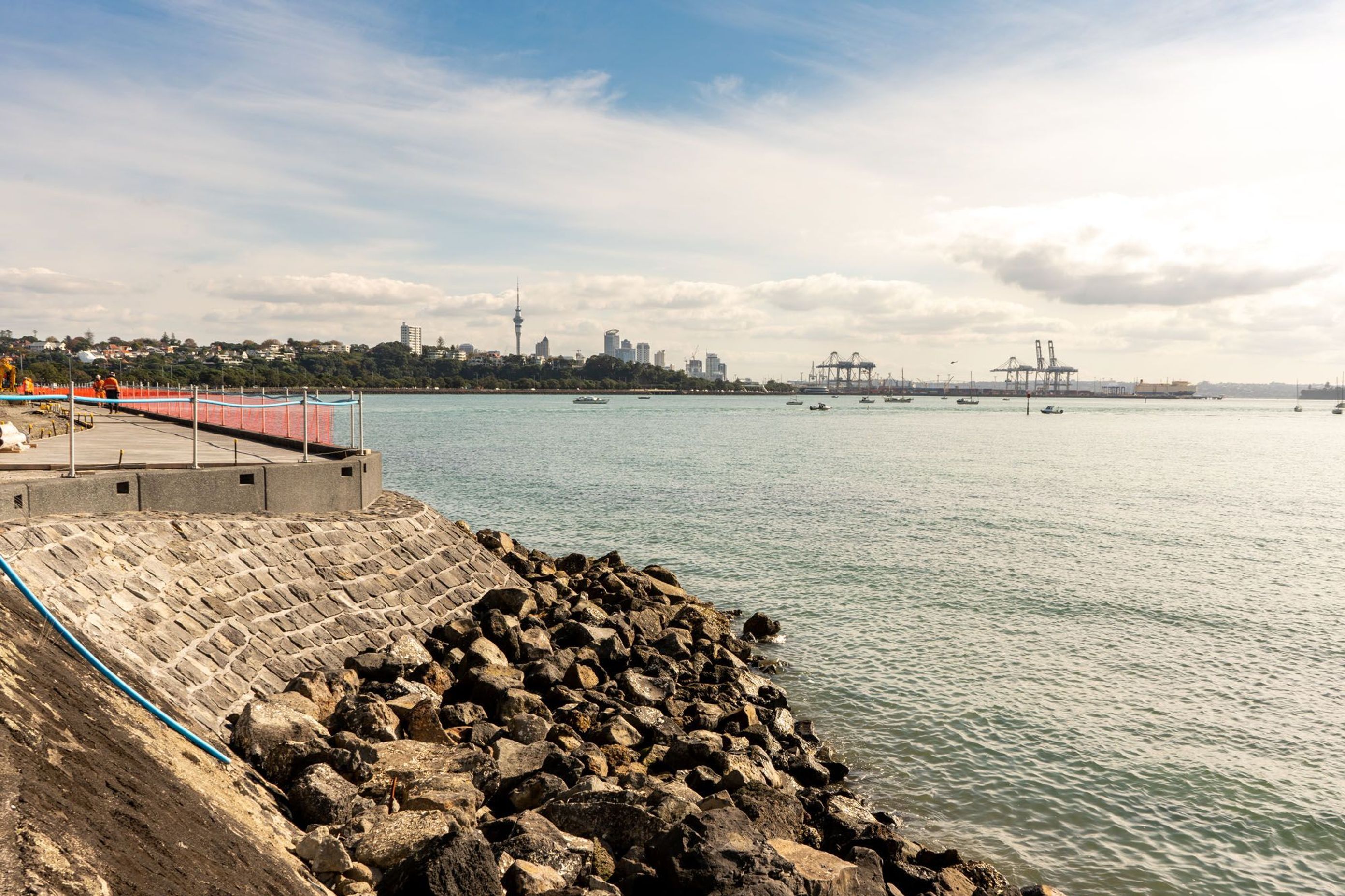 ArchiPro Project Summary - New sea wall enhancing Tamaki Drive with a wider, separated walk and cycleway, a promenade featuring seating, and an additional lane for vehicles, overcoming the complexities of a tidal setting.