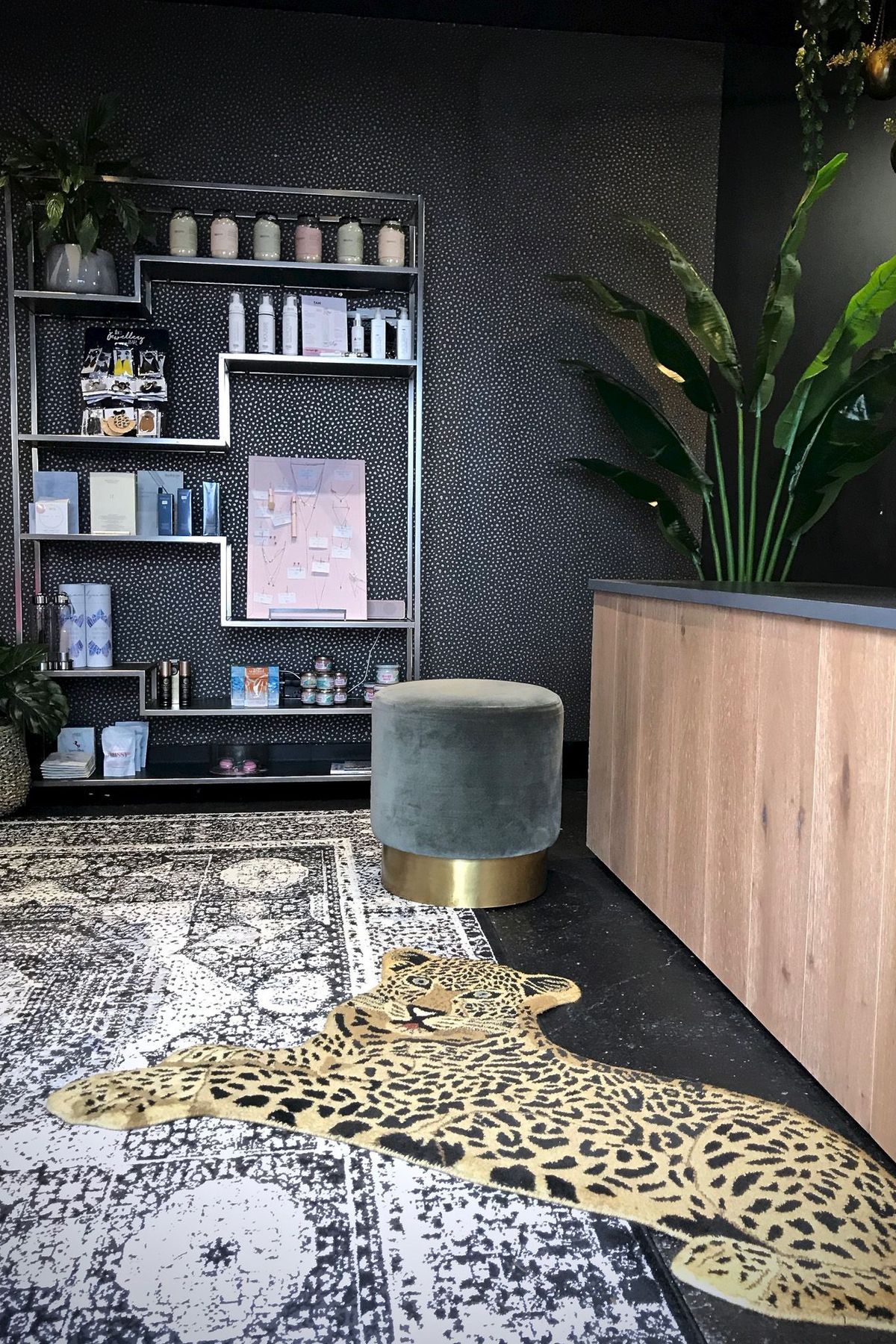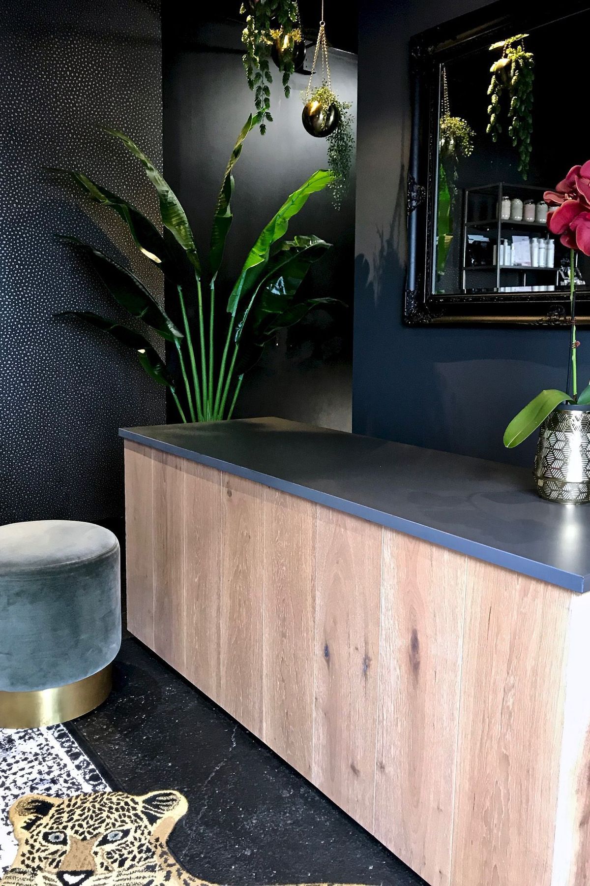 ArchiPro Project Summary - Upgraded Tan in the City salon in Remuera featuring sustainable design elements, including a custom reception desk made from reclaimed timber, second-hand furnishings, and VOC-free paint, reflecting the vibrant personality of the salon owner.