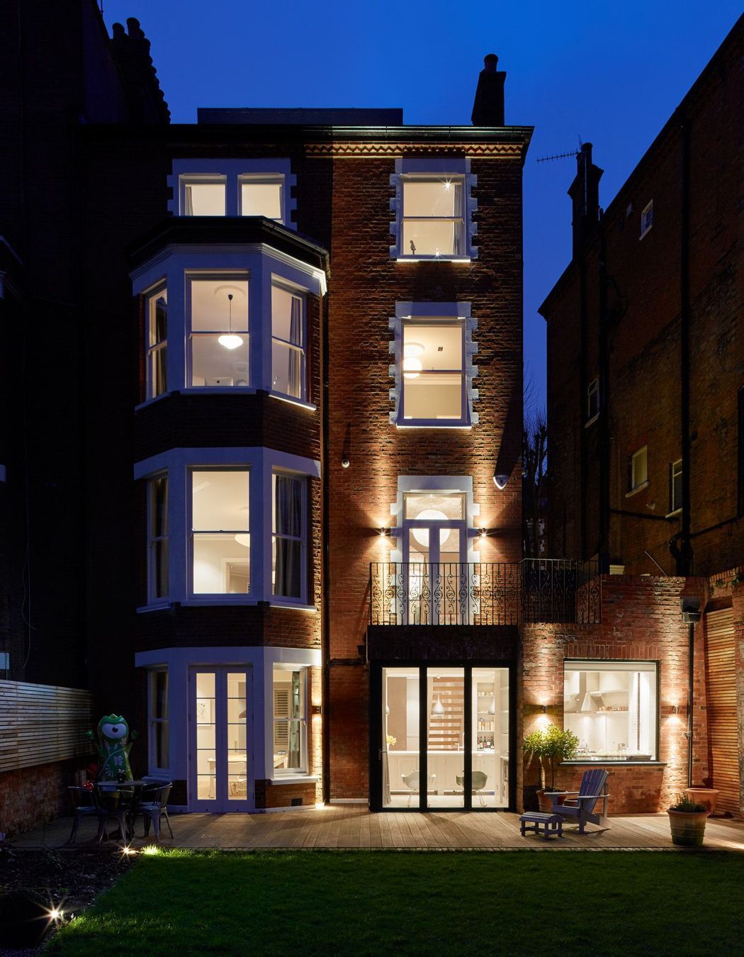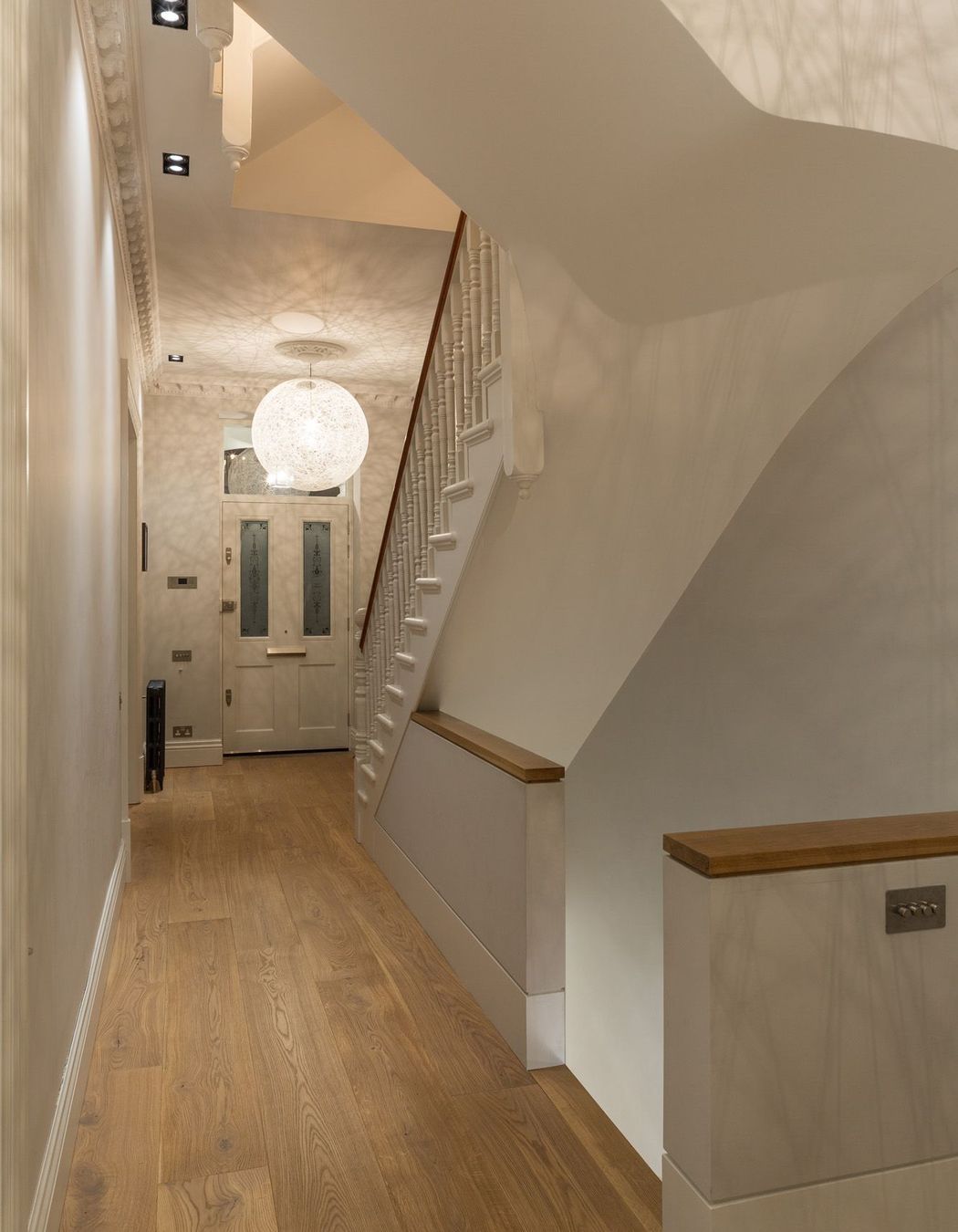 ArchiPro Project Summary - Transformation of a 5-story semi-detached property from three flats to a single-family home, featuring a blend of Victorian and contemporary design elements, bespoke joinery, and comprehensive M&E systems, completed over 64 weeks.