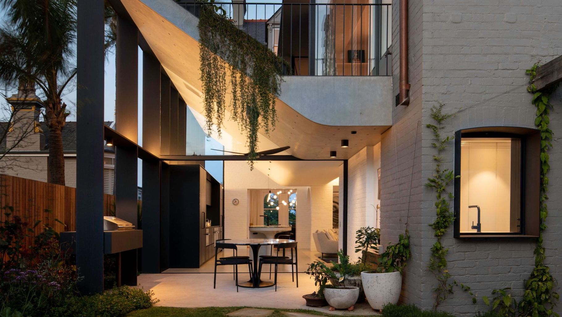 ArchiPro Project Summary - Taroela House: A heritage home in Kirribilli, blending contemporary design with historical elements, featuring a striking four-storey void, innovative concrete lid for natural light, and a green roof for privacy.