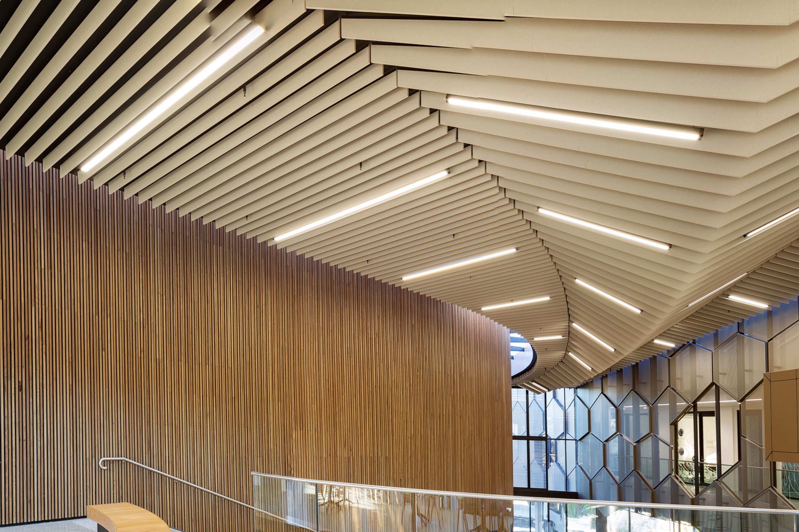 Autex Acoustics. Beautiful carbon neutral acoustics for spaces where people live, work and learn. For over 30 years our team has been designing, developing and manufacturing innovative acoustics for the built environment—revolutionising the way acoustic treatments are applied within interior spaces. As passionate creators, we’re constantly tinkering with new concepts and expanding our horizons. Our acoustic solutions are designed to reduce and control reverberation and echo in building interiors, creating comfortable, acoustically balanced environments. The Autex Acoustics range offers a variety of treatments including wallcoverings, panels, baffles, and screens—easily customised to fit the requirements of your space. Sustainability has been at the core of how we operate for decades. Being a manufacturer we hold a significant role in reducing the impact of not just our products but our customer’s too. As a result we have worked through a rigorous process to ensure our entire range and global operations are carbon neutral. We see this as our responsibility as we look to protect the resources our environment provides us with for generations to come.