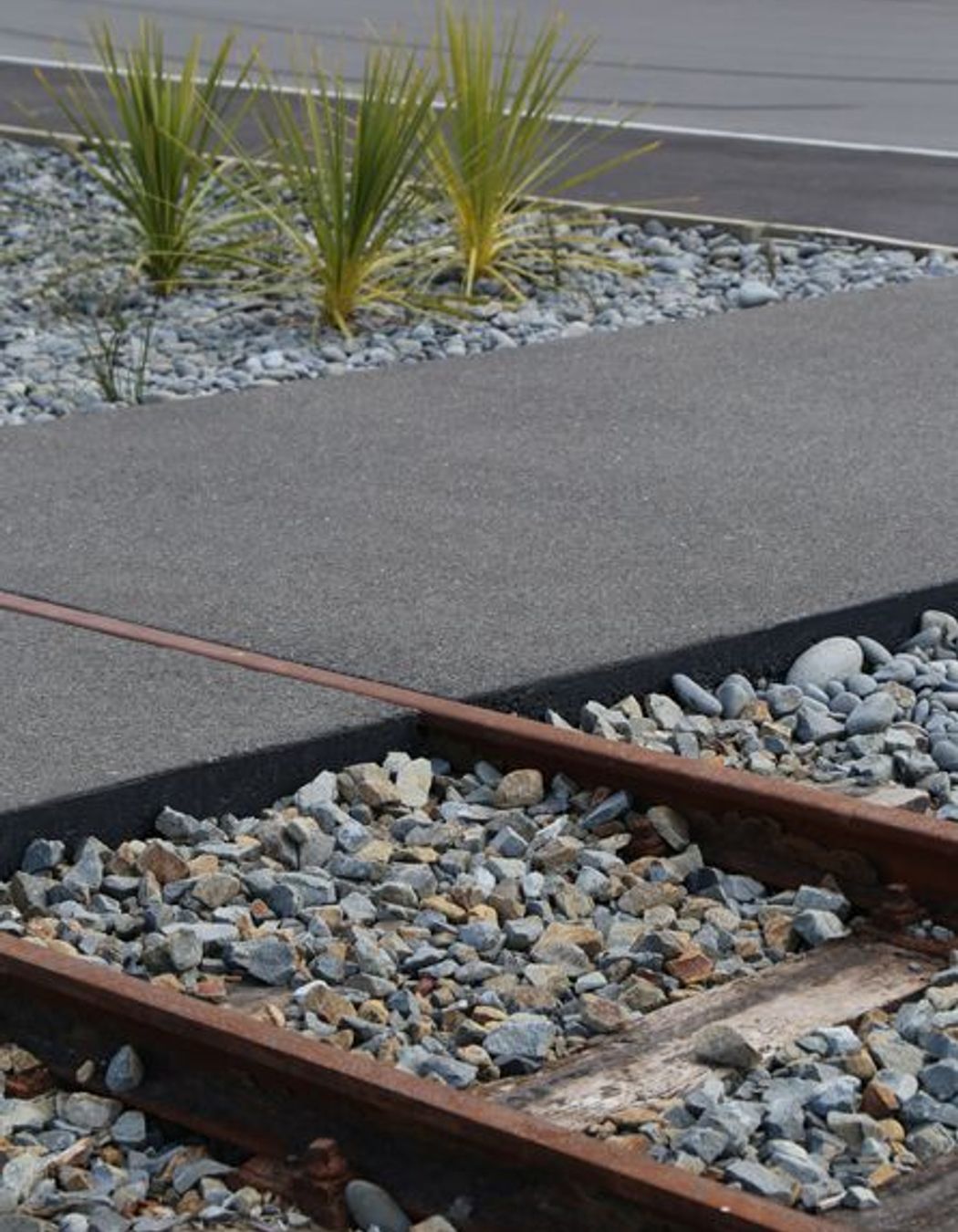 - a range of exposed aggregate, concrete paving colours, and aggregate types to create tonal differences along with asphalt and recycled unit pavers;