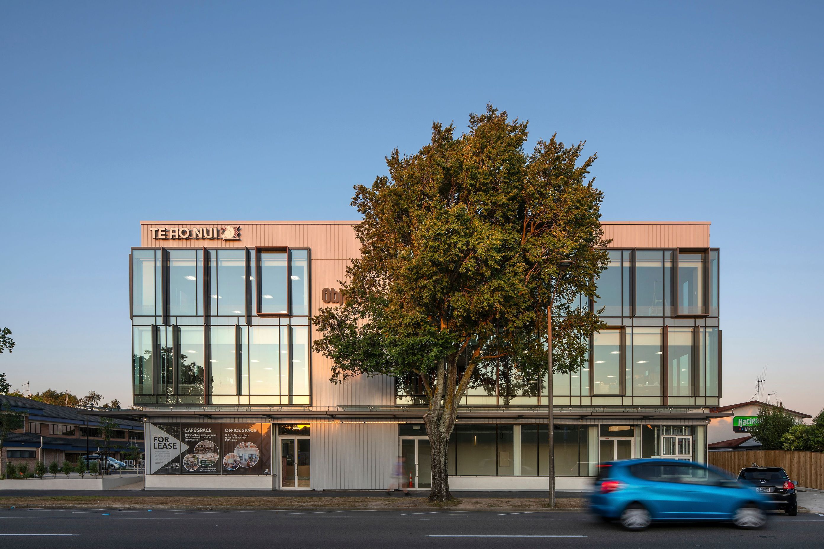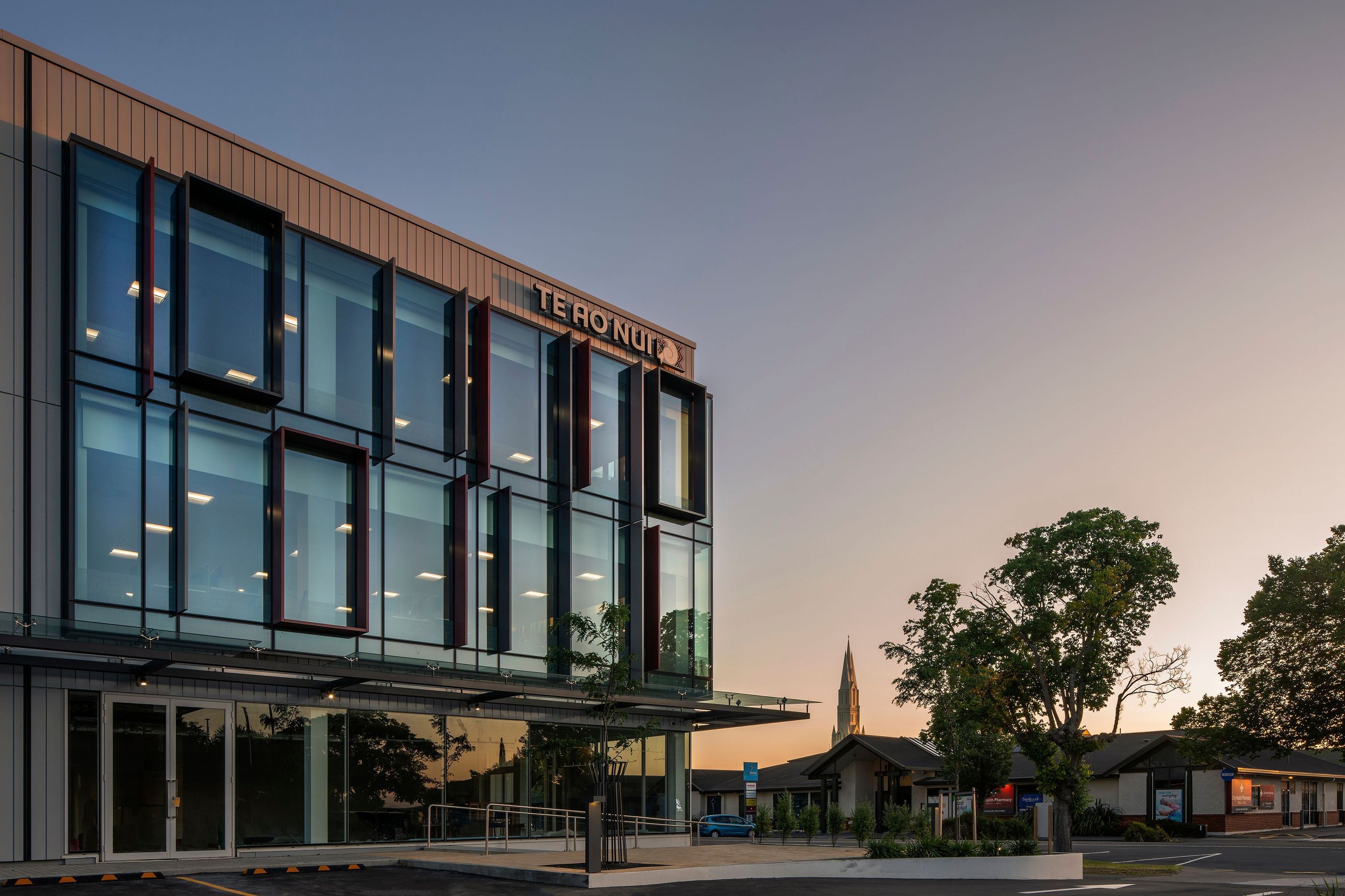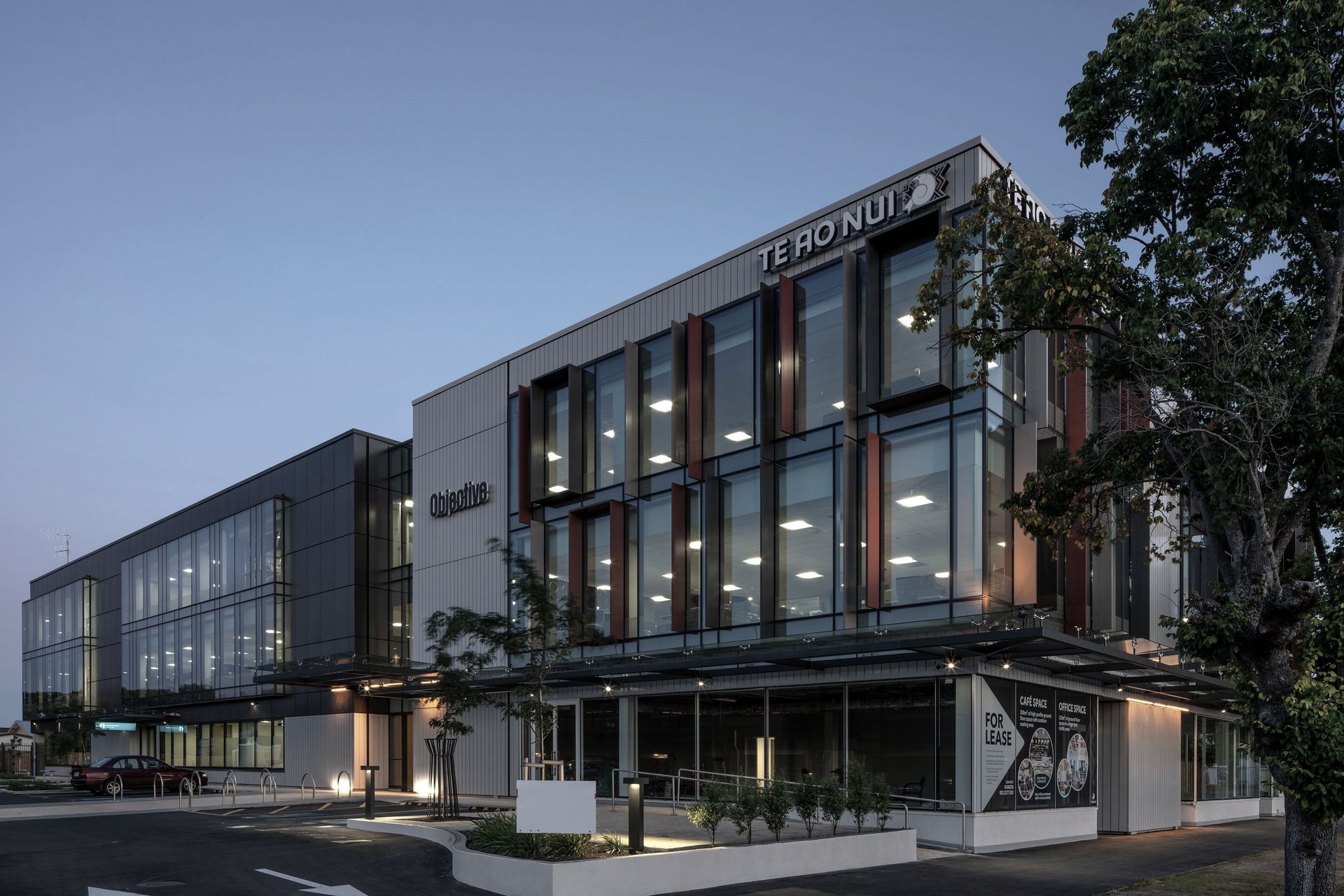 ArchiPro Project Summary - Award-winning Te Ao Nui building in Palmerston North, featuring resilient design for emergency operations, flexible office spaces, and a visually engaging facade that harmonizes with its urban and residential surroundings.