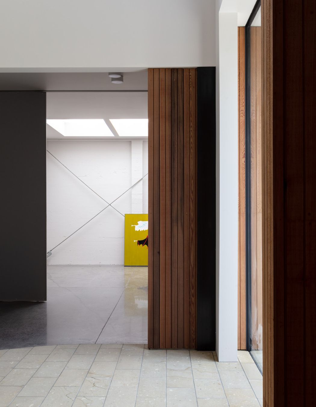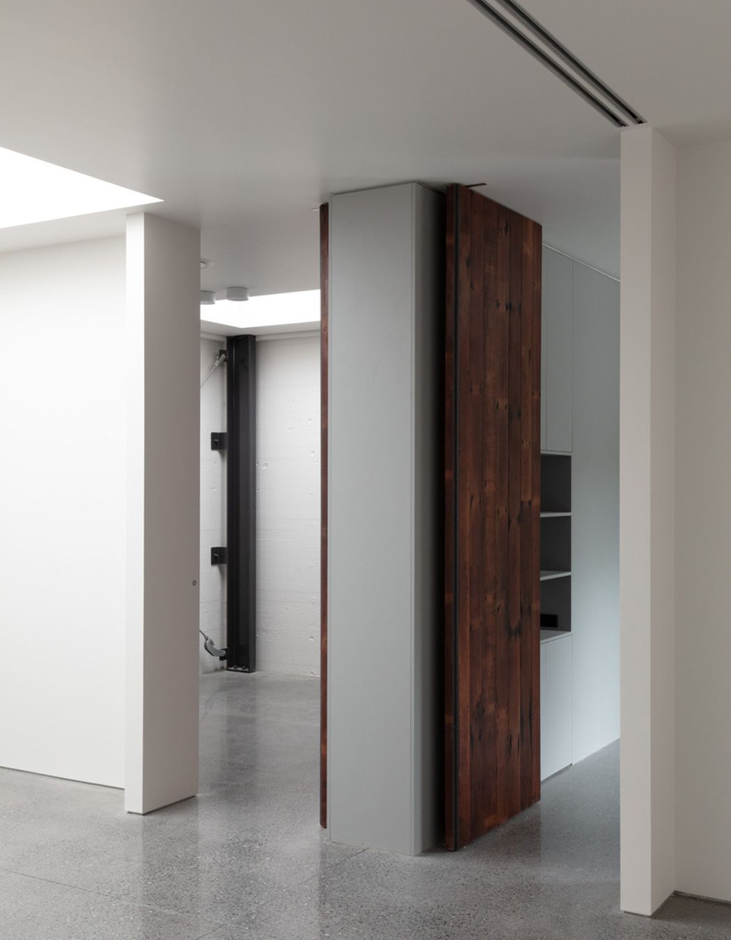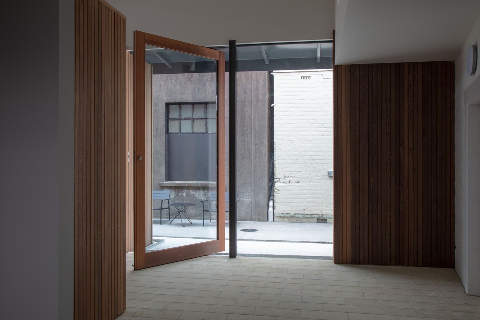 ArchiPro Project Summary - Refurbishment of a C1940 retail and warehouse building into a modern office space, featuring high ceilings, clerestory windows, and a semi-open plan layout, while preserving the original shopfronts and enhancing the entrance through a side laneway.