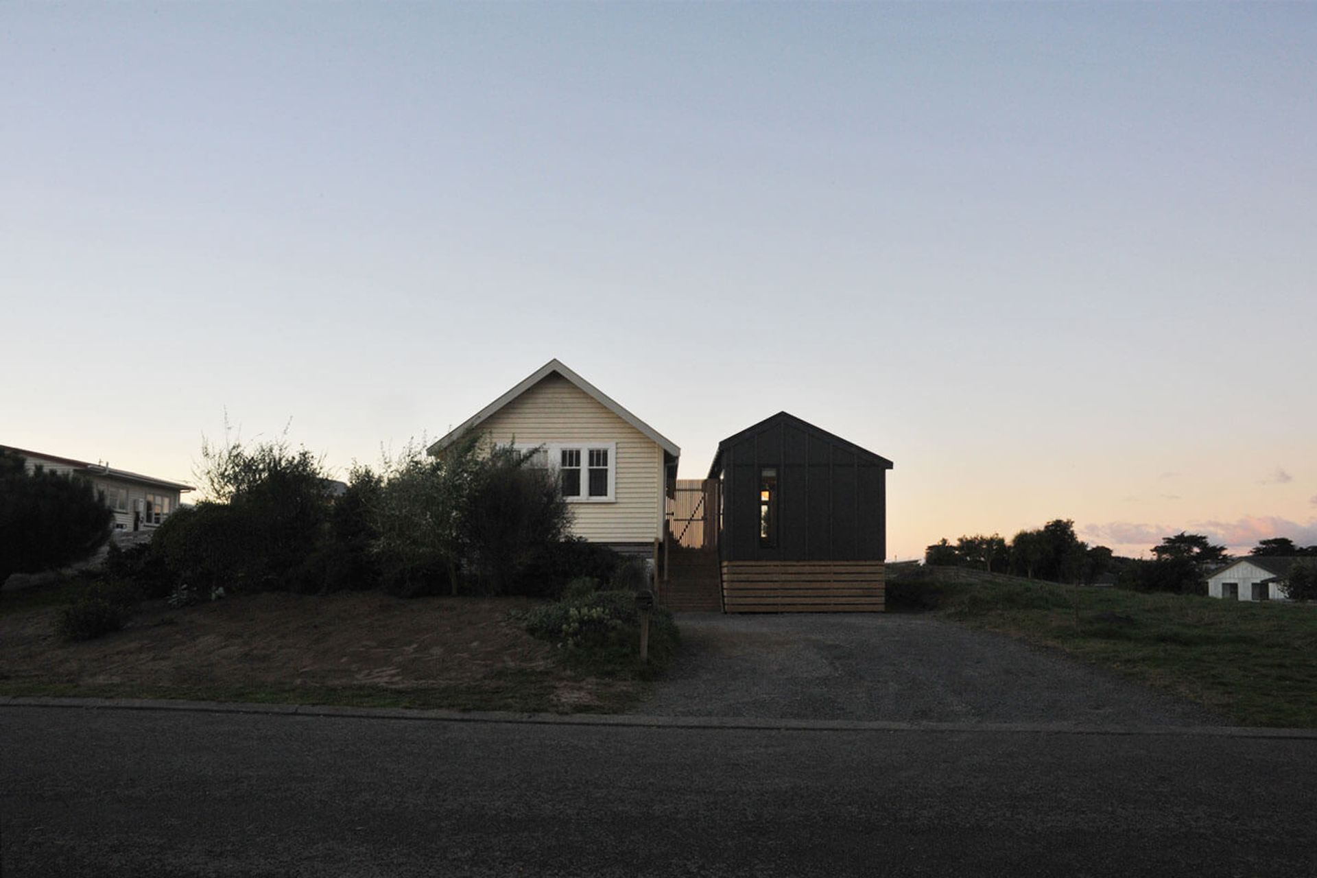 ArchiPro Project Summary - Contemporary addition to a renovated bach in Te Horo, enhancing space and privacy while maintaining connection to the garden and beach views, featuring quality materials and a thoughtful design.