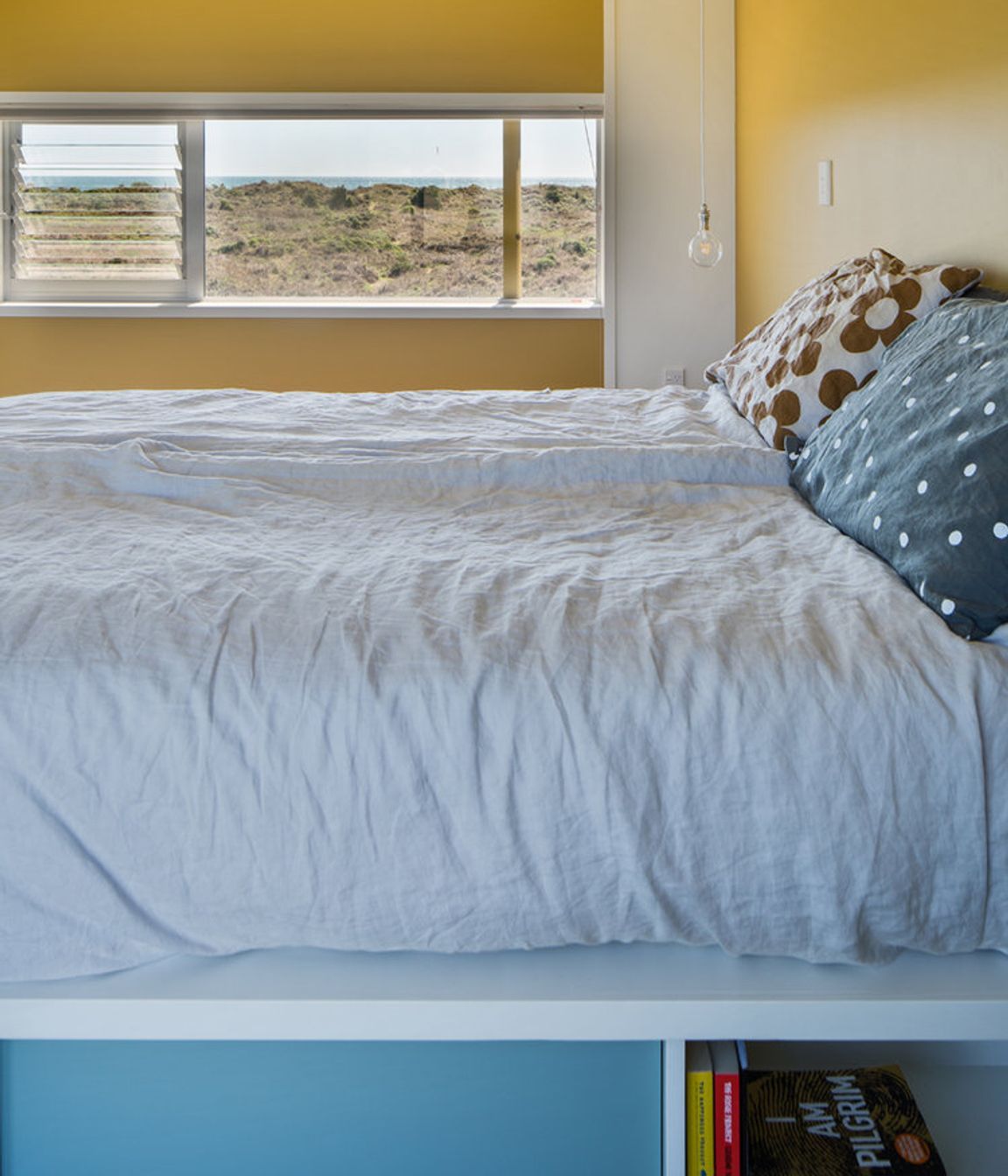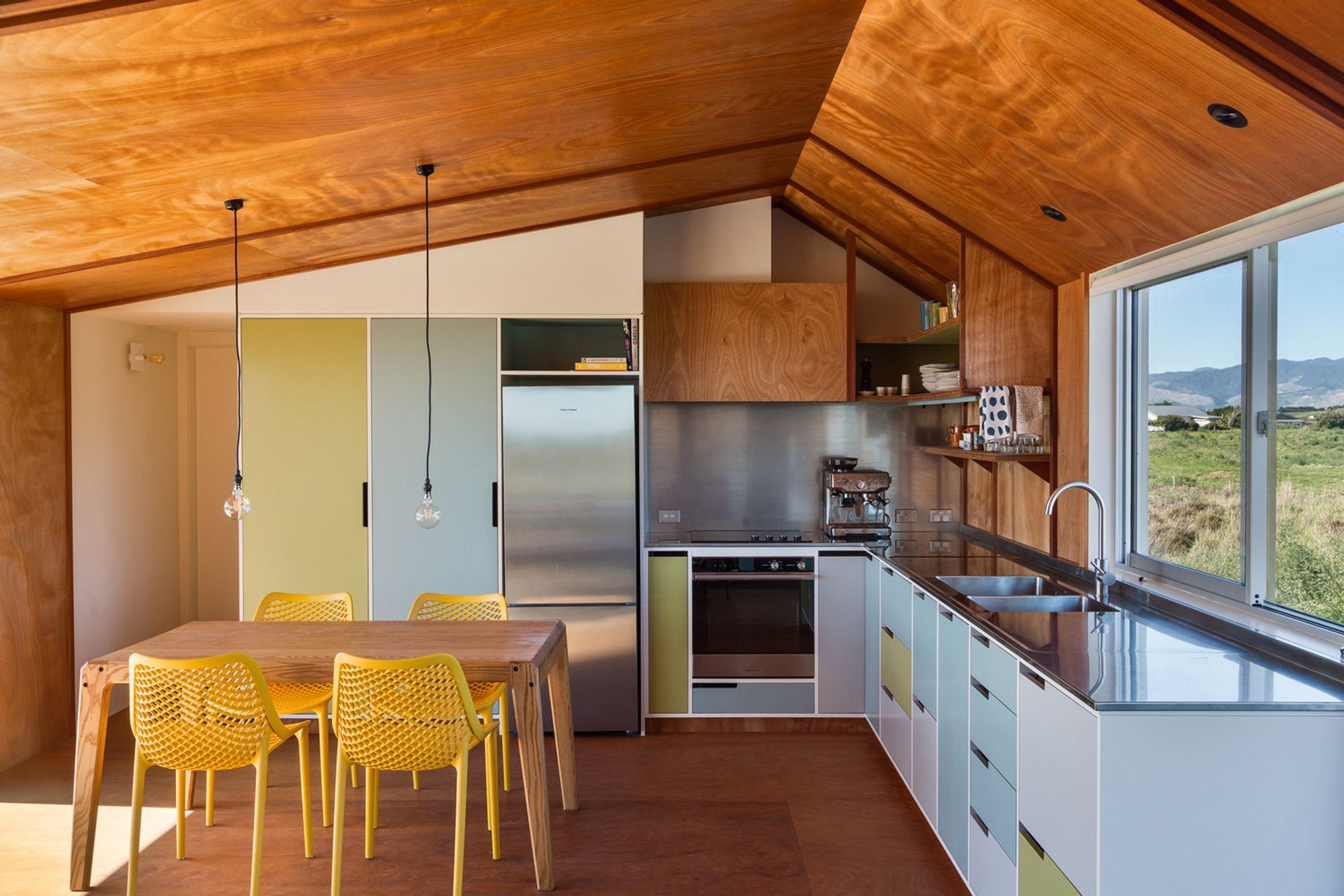 ArchiPro Project Summary - A thoughtfully designed 87m2 bach for a family of four, blending NZ bach tradition with modern aesthetics, featuring a unique color palette and an open plan layout that maximizes natural light and coastal views.
