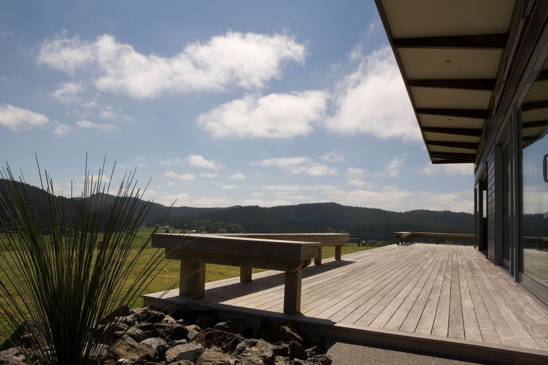 ArchiPro Project Summary - Te Kauwhata House: A sustainable residential design in North Waikato, featuring passive solar heating, natural ventilation, and stunning views of the rural landscape.