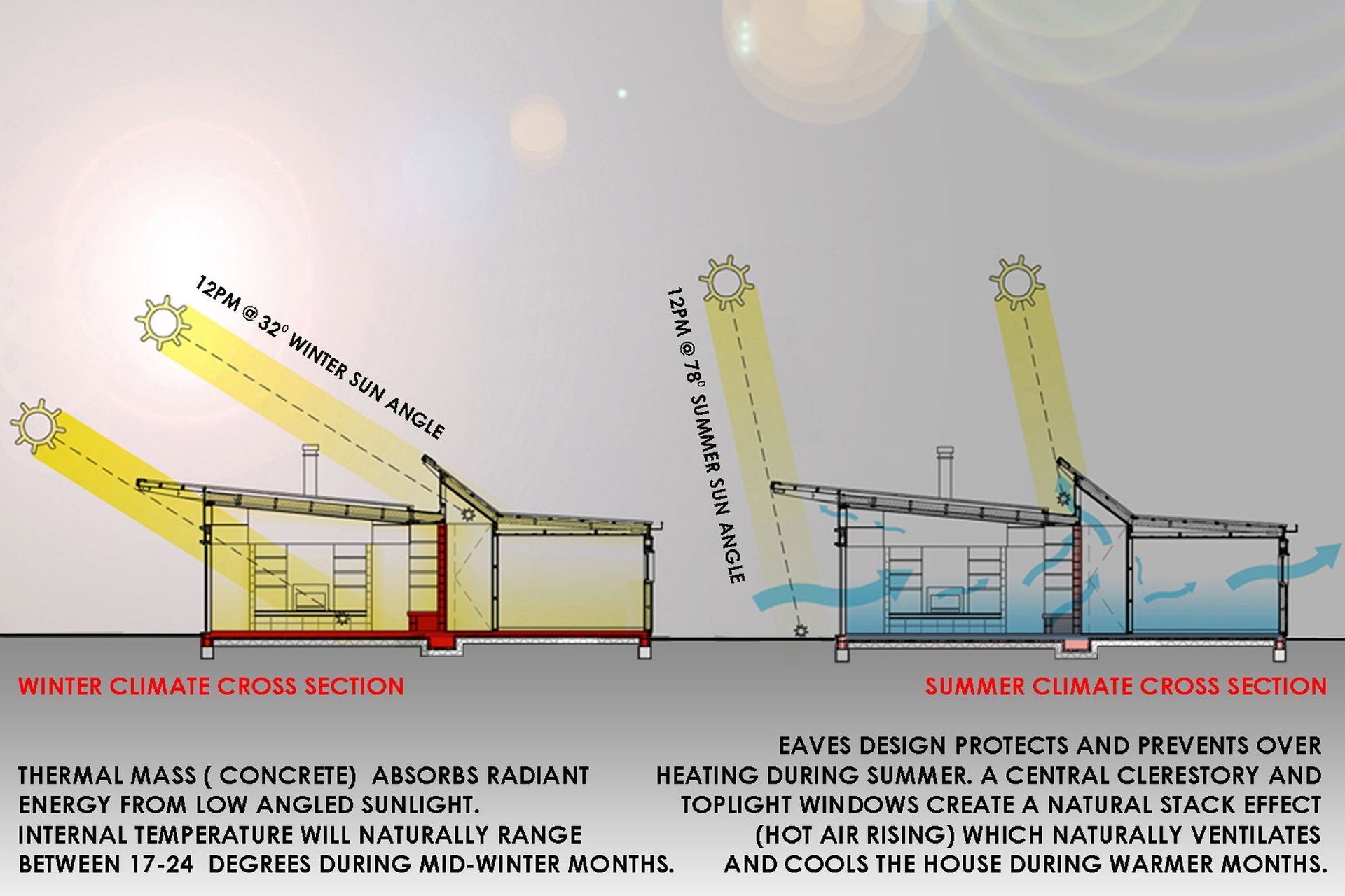 By using this design approach, we are able to design a house which is naturally warm in winter, naturally cool in summer, gets the most of unique site features, and is always enjoyable to live in.