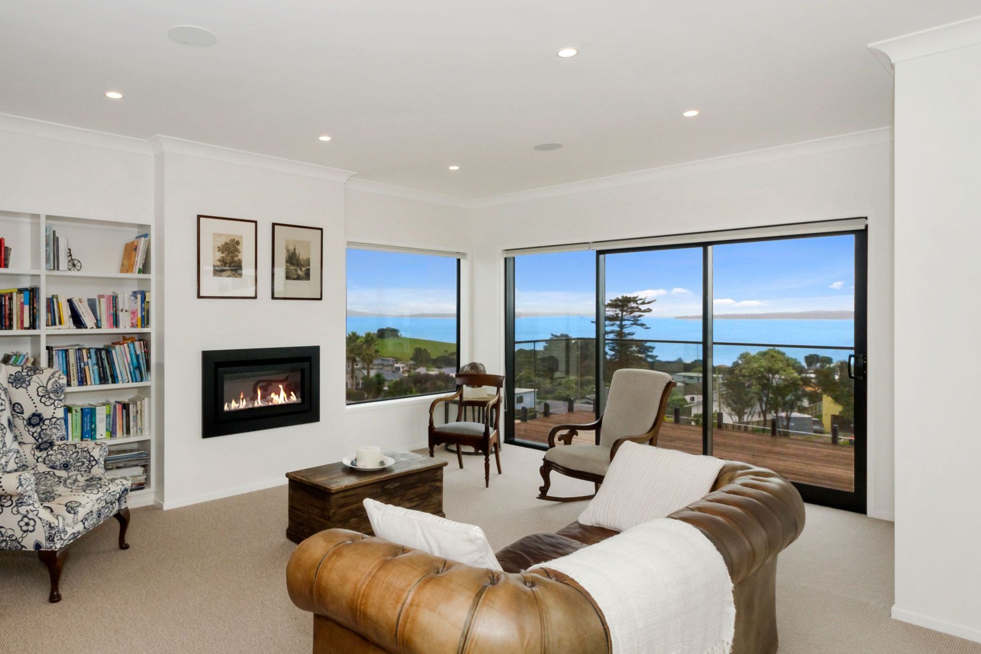 ArchiPro Project Summary - A stunning family home featuring open-plan living, designer kitchen, and breathtaking views of the Hauraki Gulf, complete with four bedrooms, two bathrooms, and a beautifully landscaped garden.