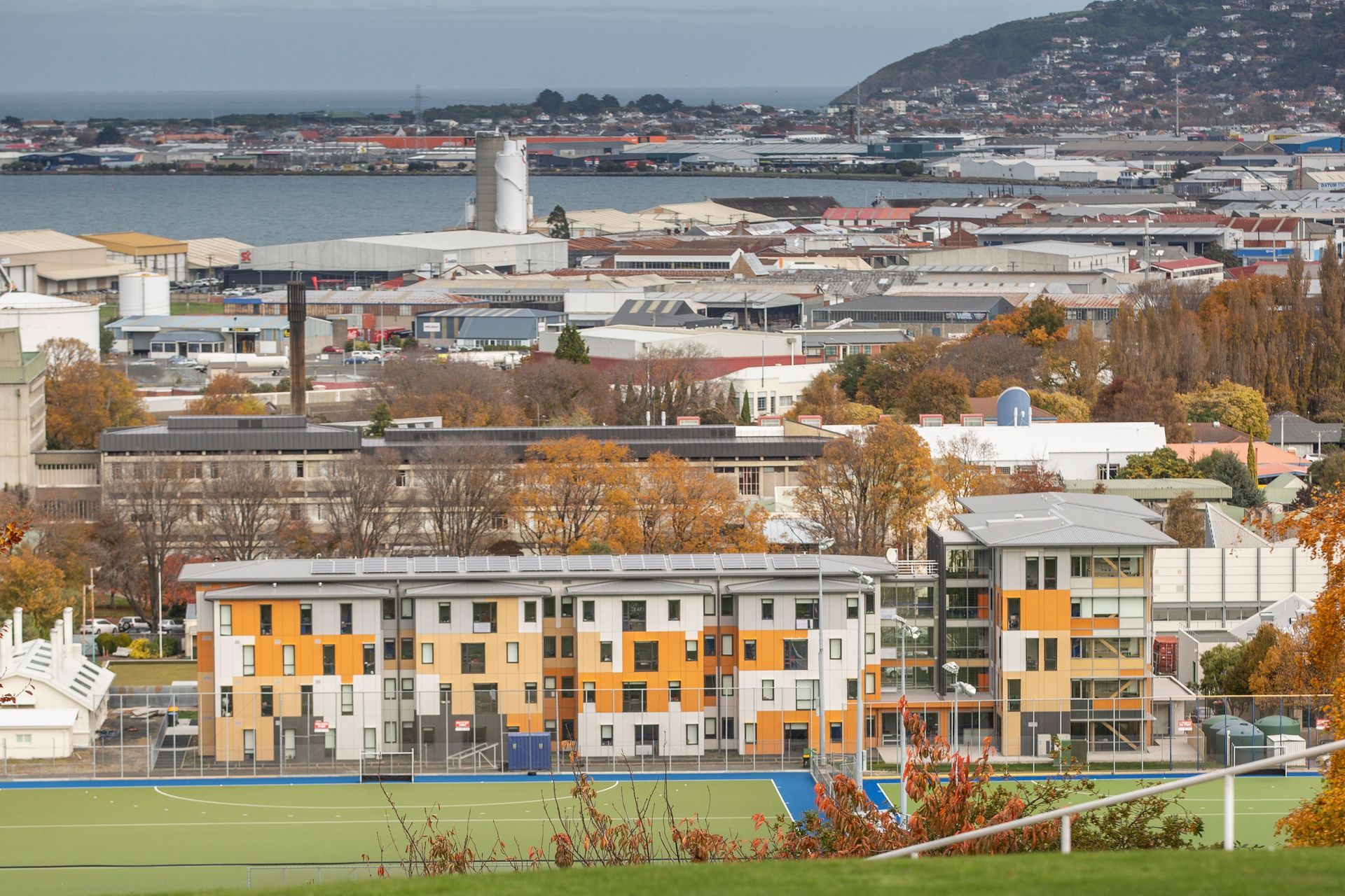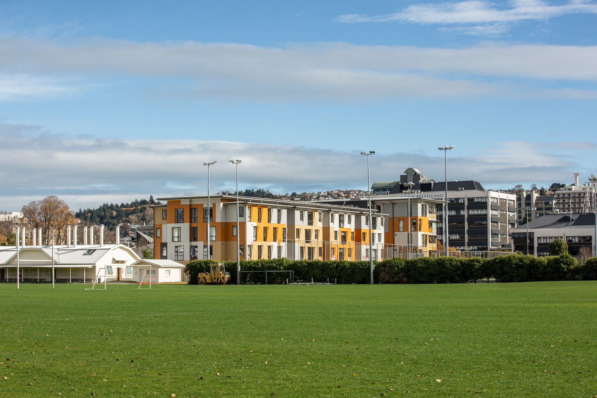 ArchiPro Project Summary - Te Pa Tauira - OP Student Village, a finalist in multiple prestigious awards, showcases innovative student accommodation in Dunedin, designed for Otago Polytechnic, emphasizing engineering excellence and sustainable timber construction.