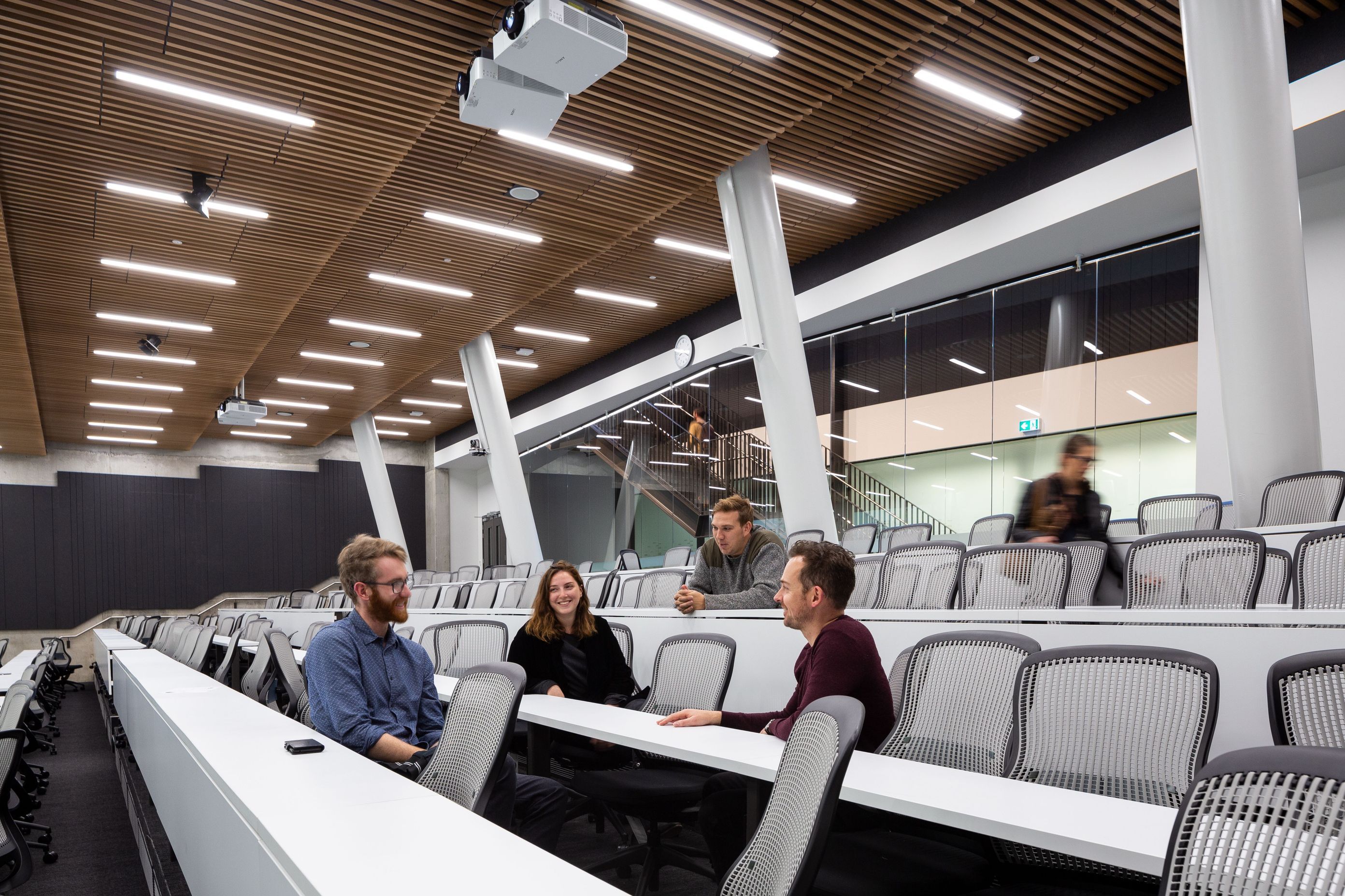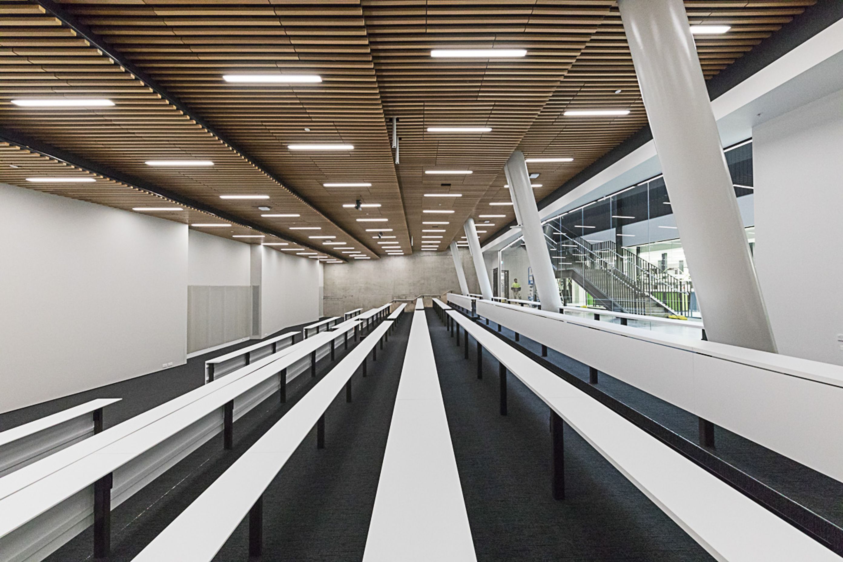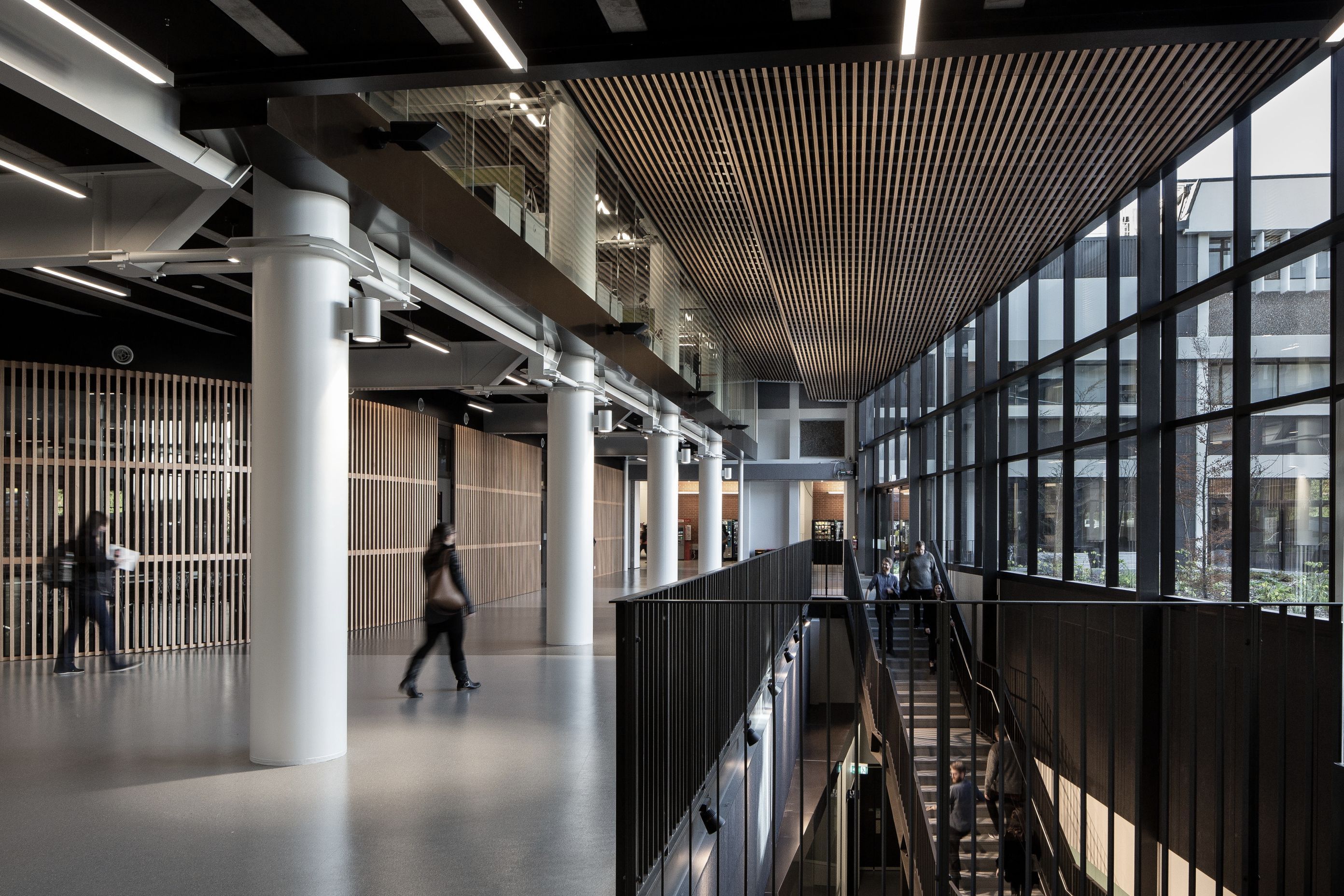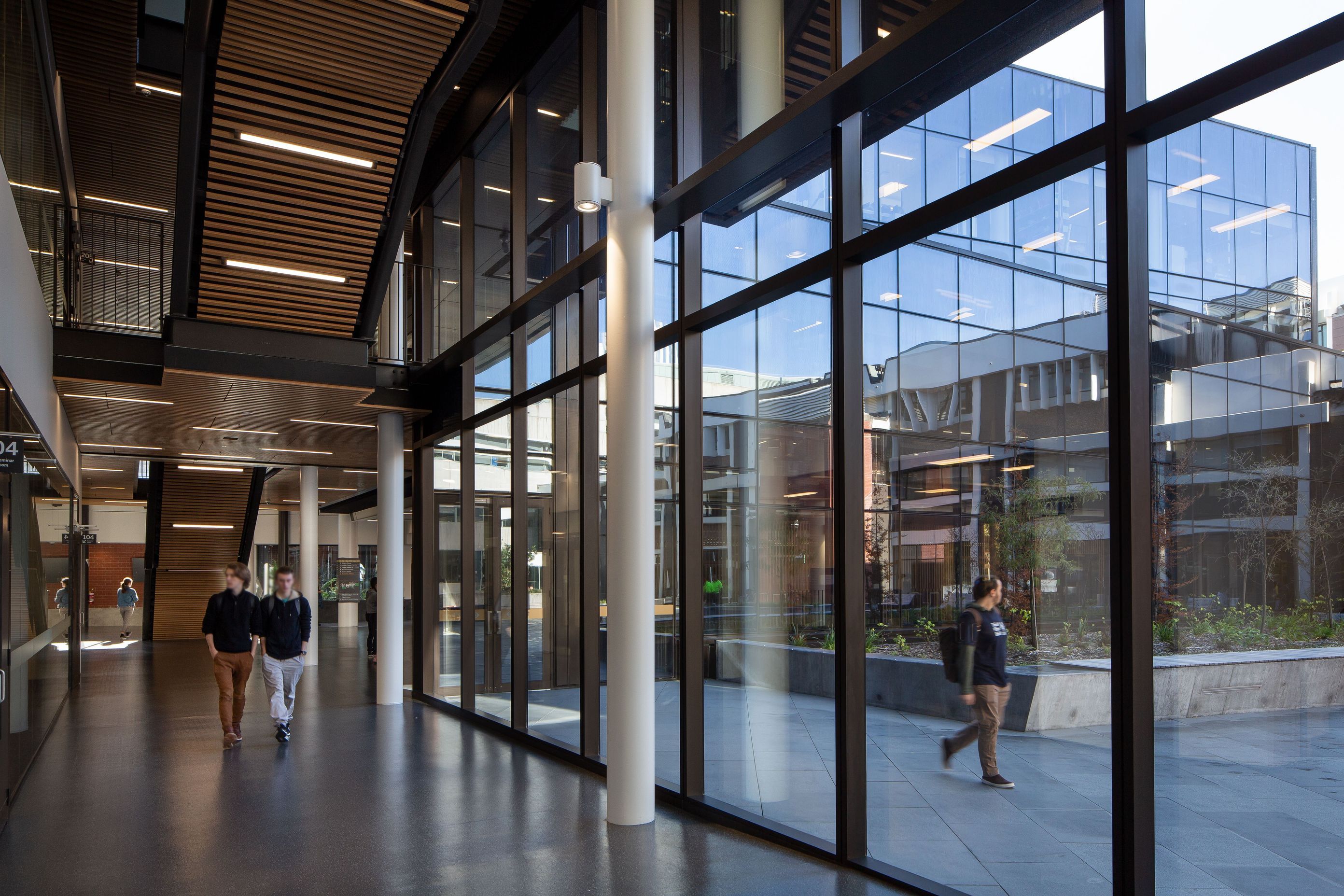 ArchiPro Project Summary - Te Toki a Rata Building, designed by Warren & Mahoney, features a striking façade with Décorslat made from 41mm timber battens and Tasmanian Ash veneer, complemented by a V41/68 perforation and a Decortech factory applied clear satin finish.
