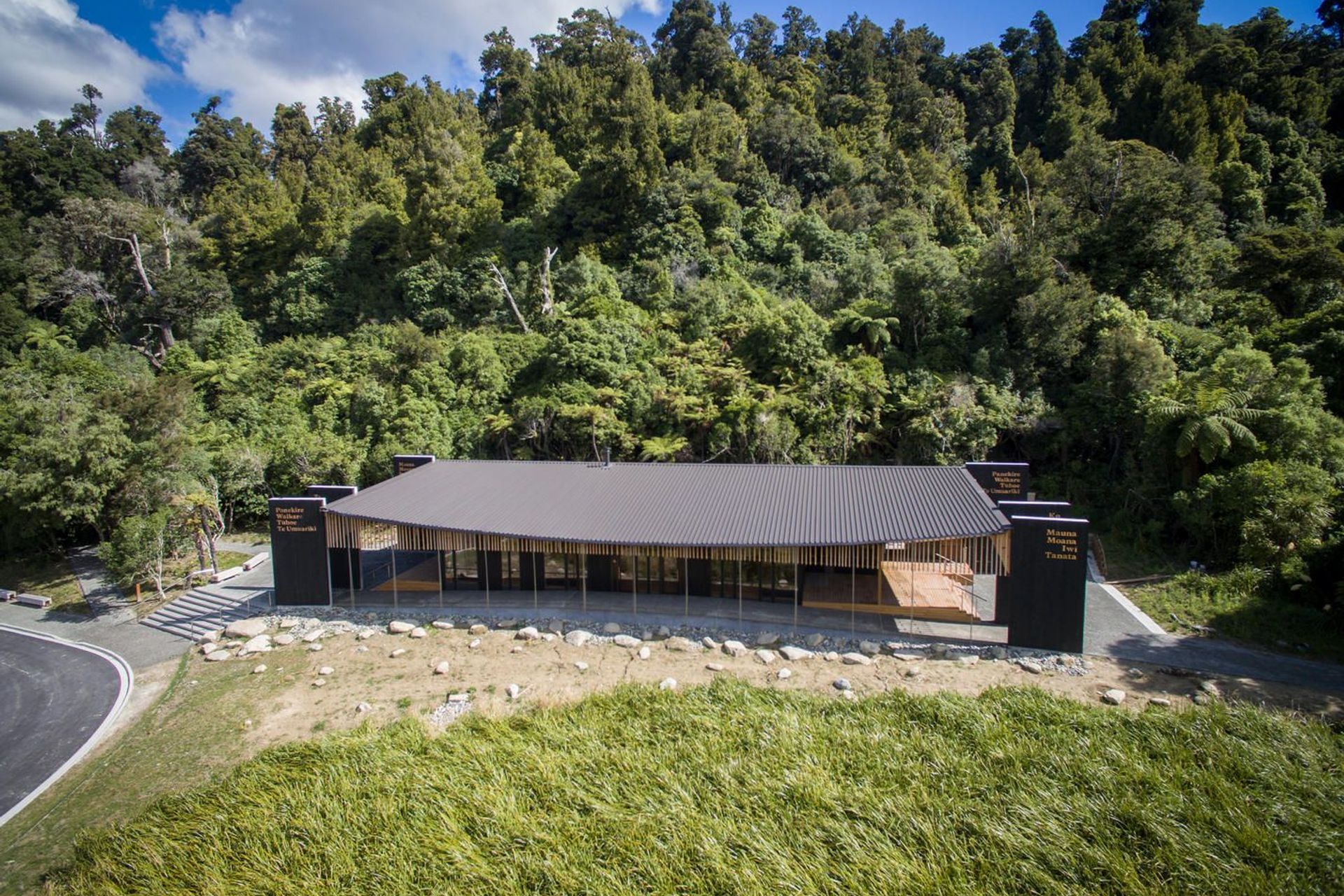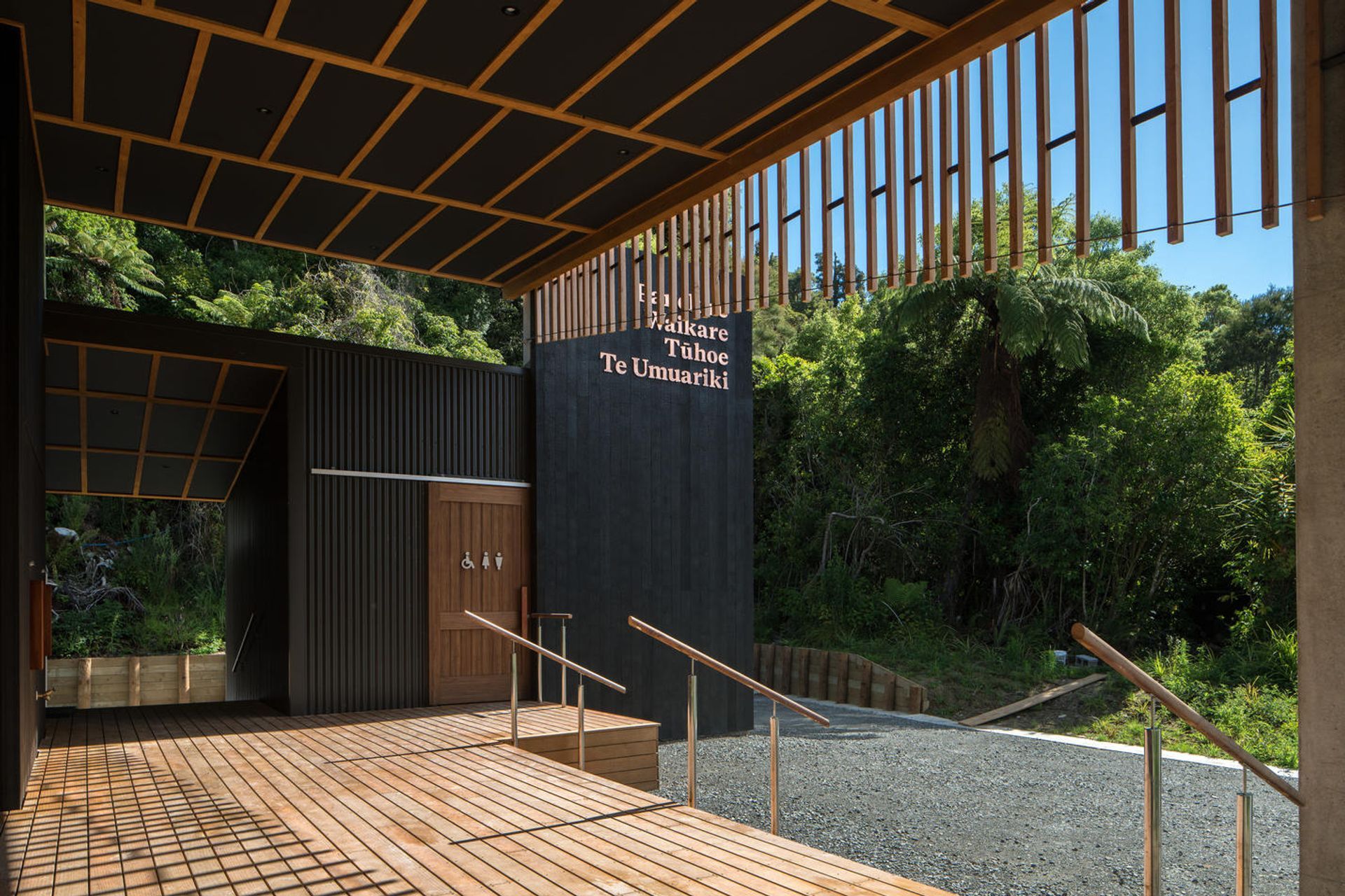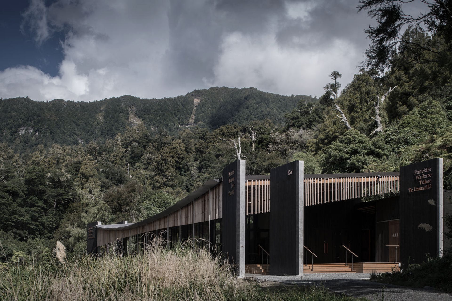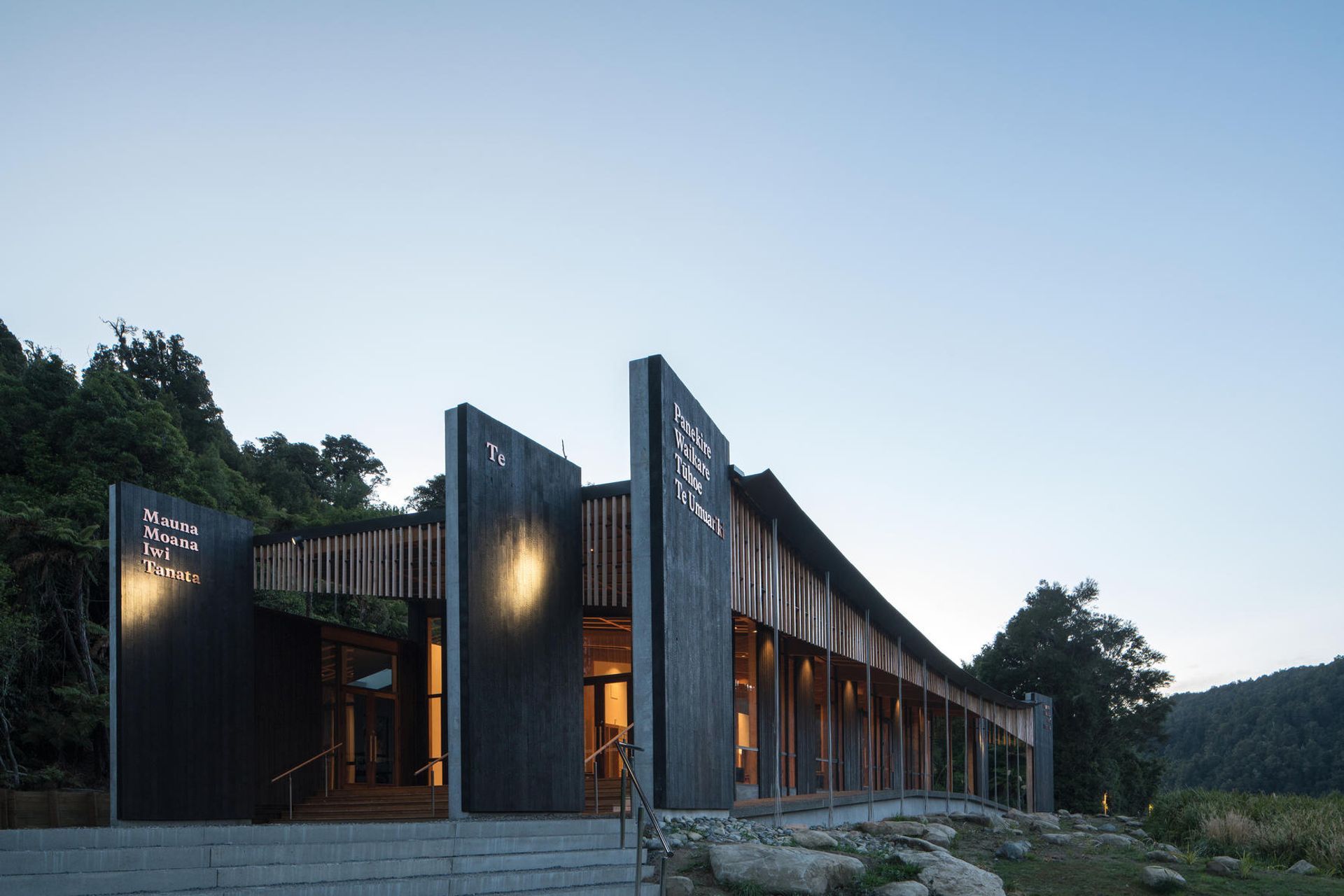 ArchiPro Project Summary - Te Wharehou o Waikaremoana serves as a visitor centre and administrative space for Ngai Tūhoe, featuring sustainable design elements inspired by local geomorphology, and achieving Living Building Challenge standards for environmental responsibility.
