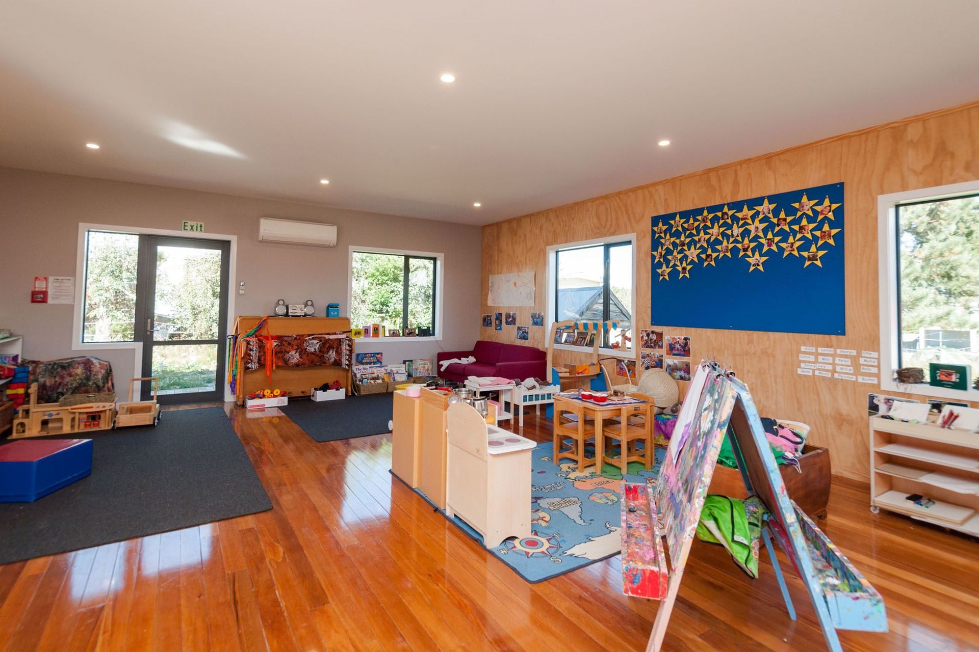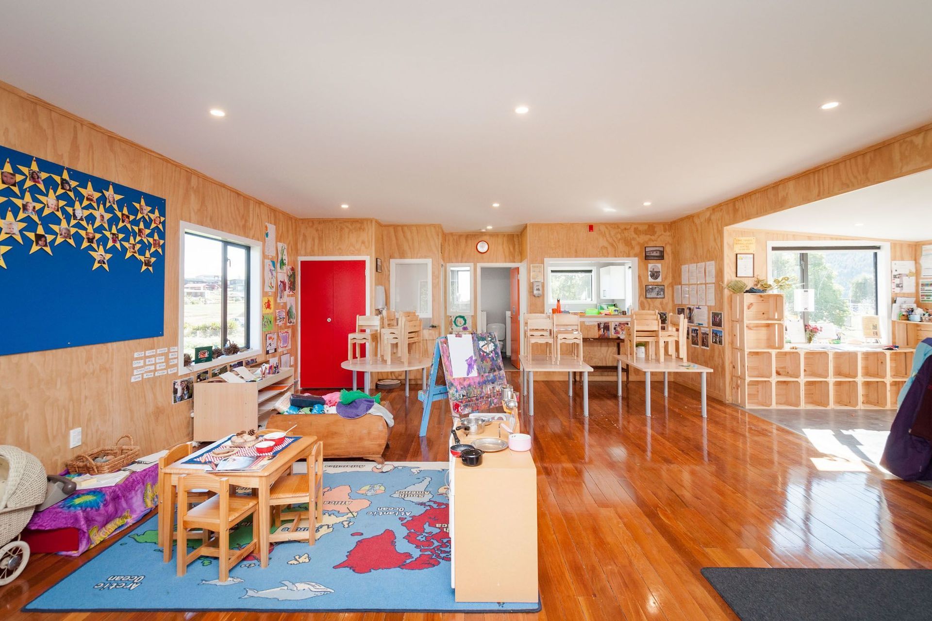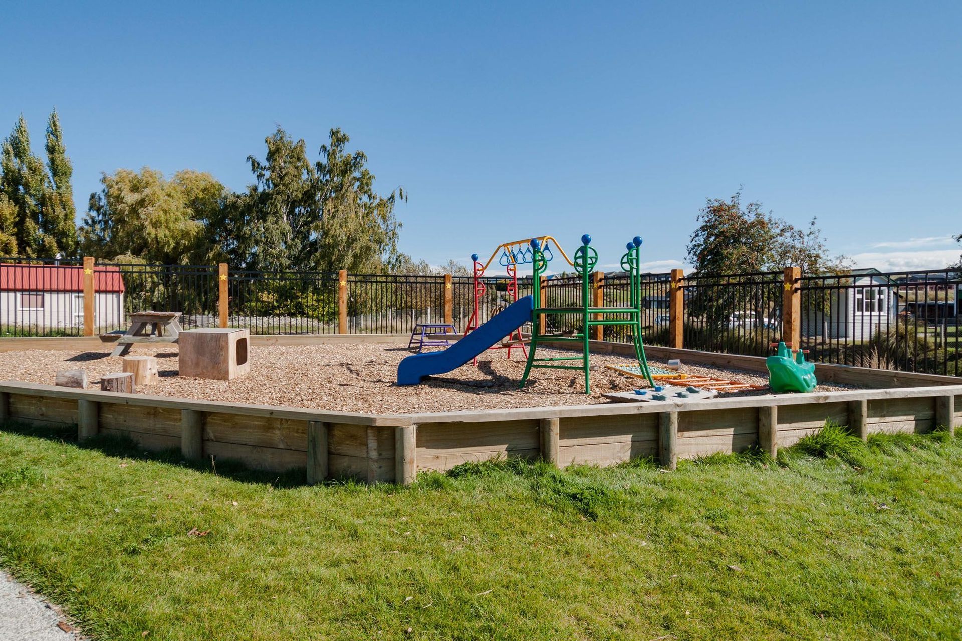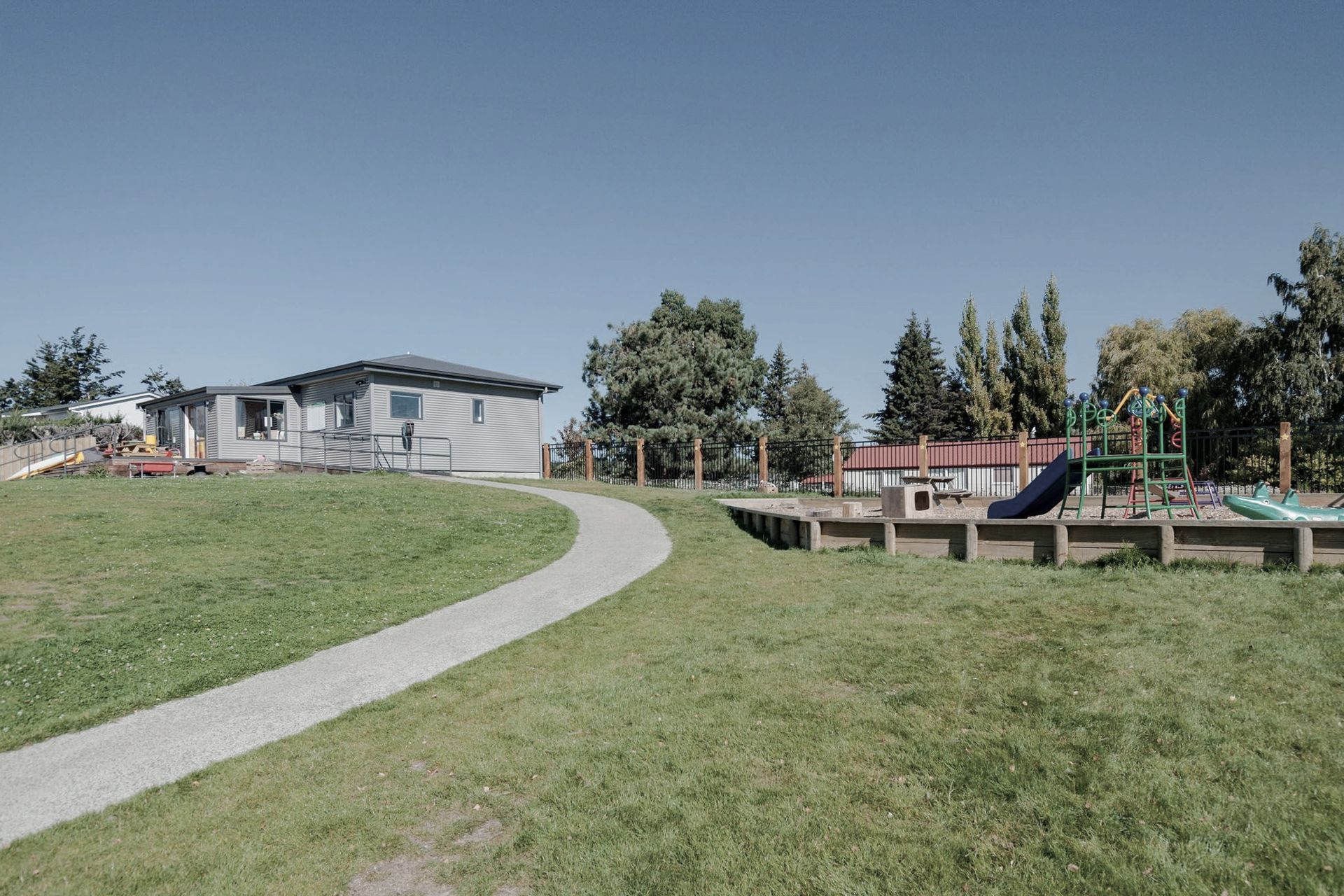 ArchiPro Project Summary - The Tekapo Kindergarten project harmonizes nature and education, featuring expansive lawns and outdoor play equipment in a vibrant public space.