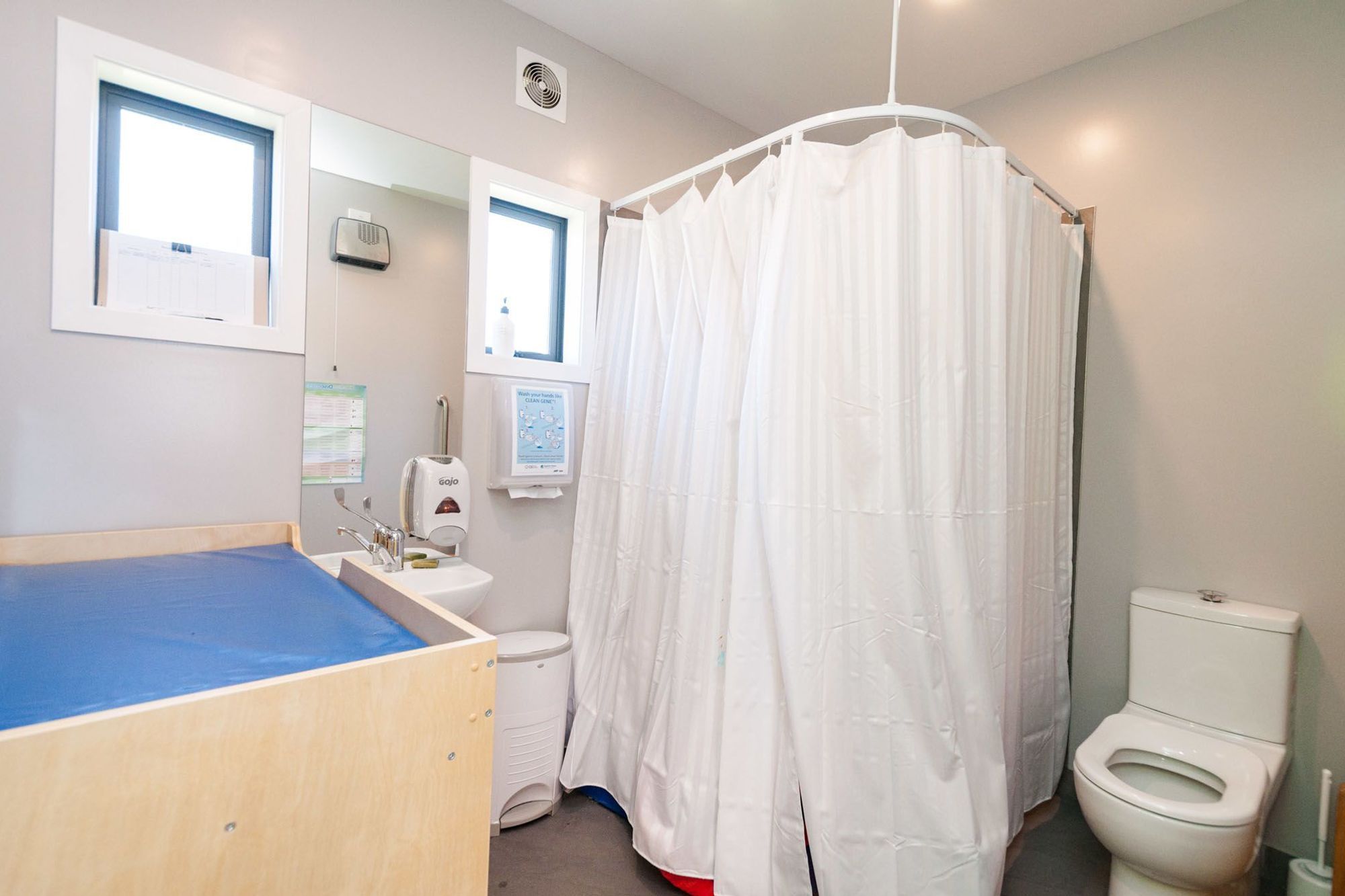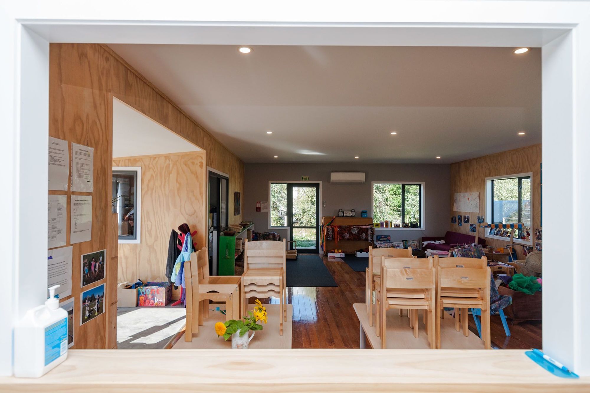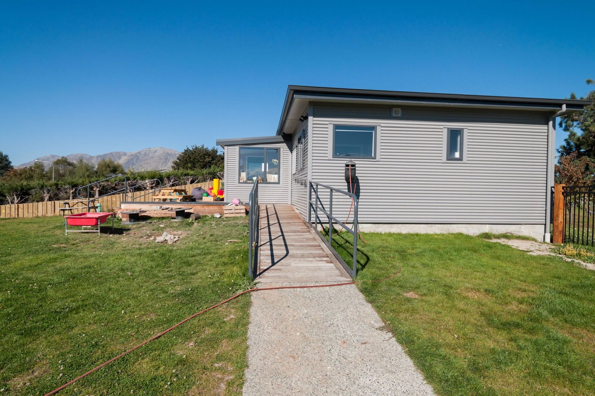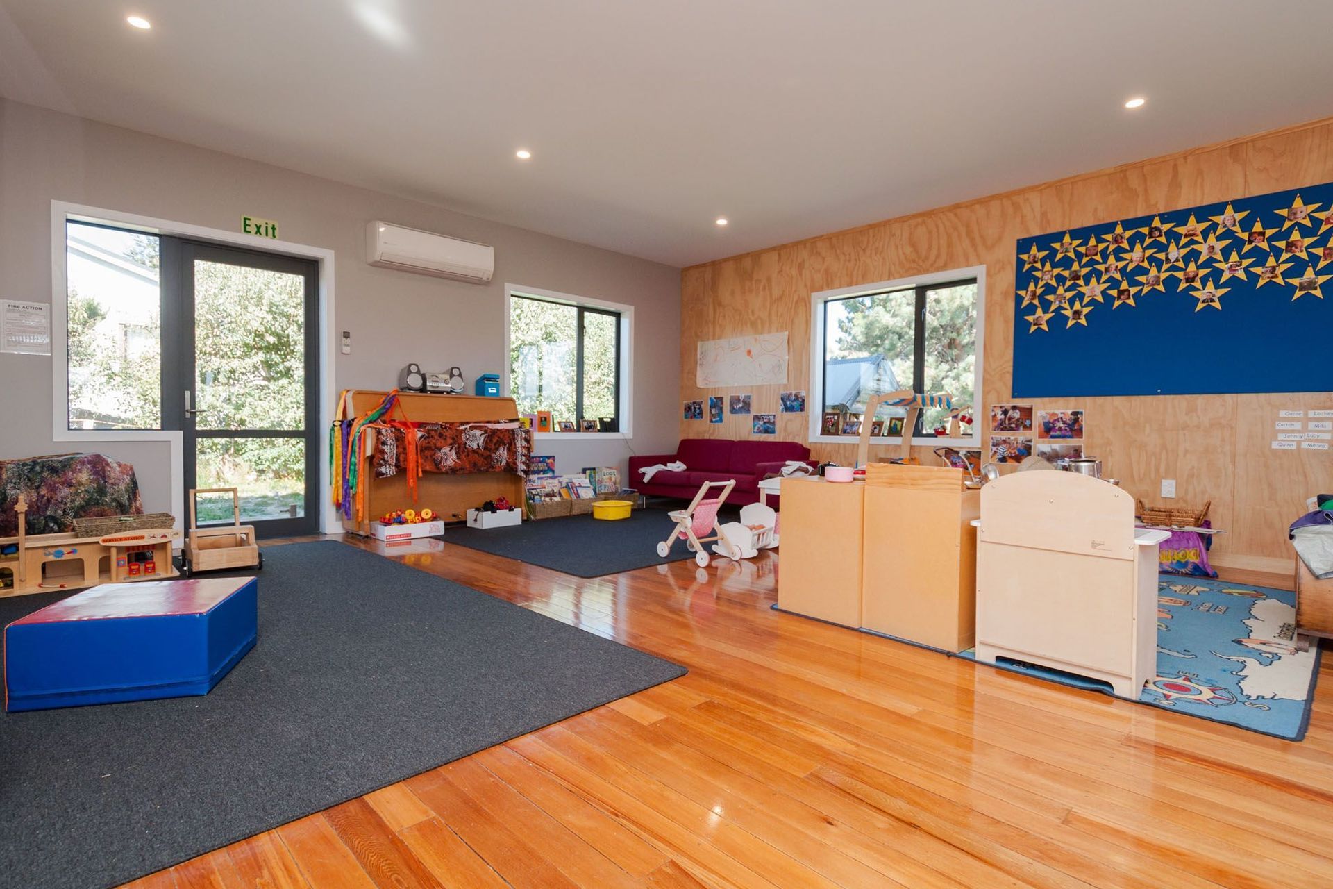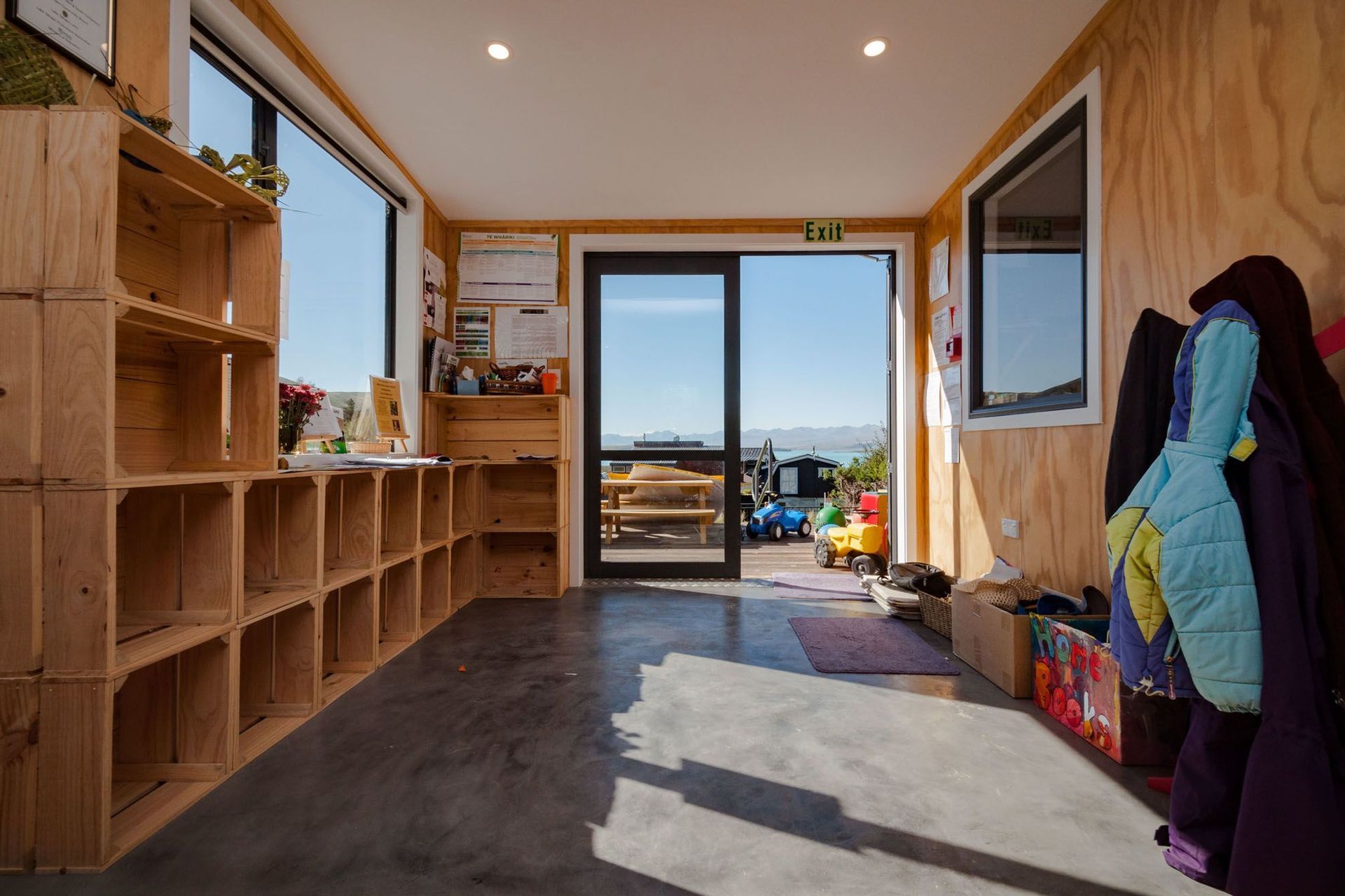 ArchiPro Project Summary - The Tekapo Kindergarten project harmonizes nature and education, featuring expansive lawns and outdoor play equipment in a vibrant public space.