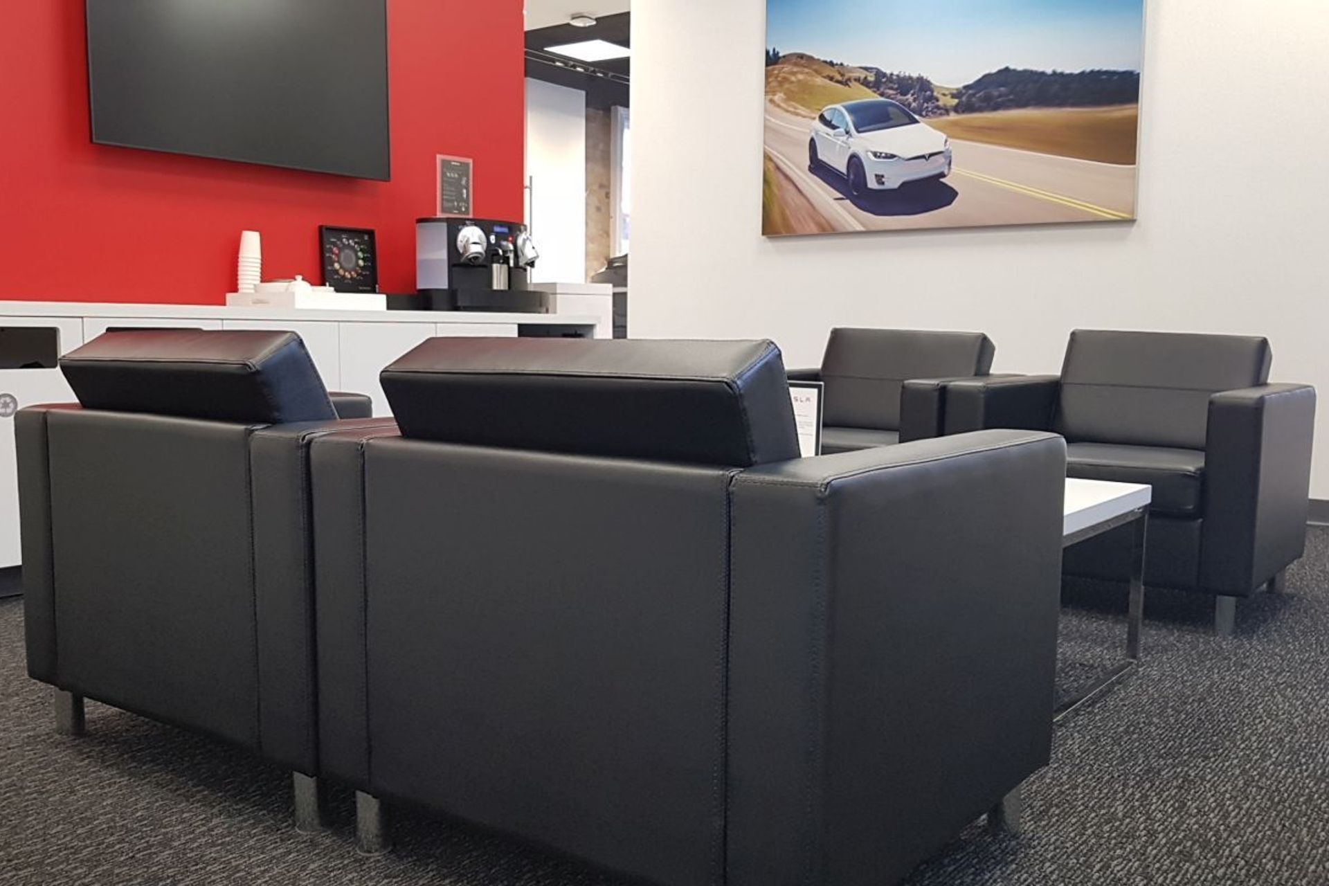ArchiPro Project Summary - Tesla's innovative showrooms in Australasia feature Acoufelt's 'Escape' acoustic carpet tiles, enhancing the customer experience with a blend of performance and environmental consciousness.