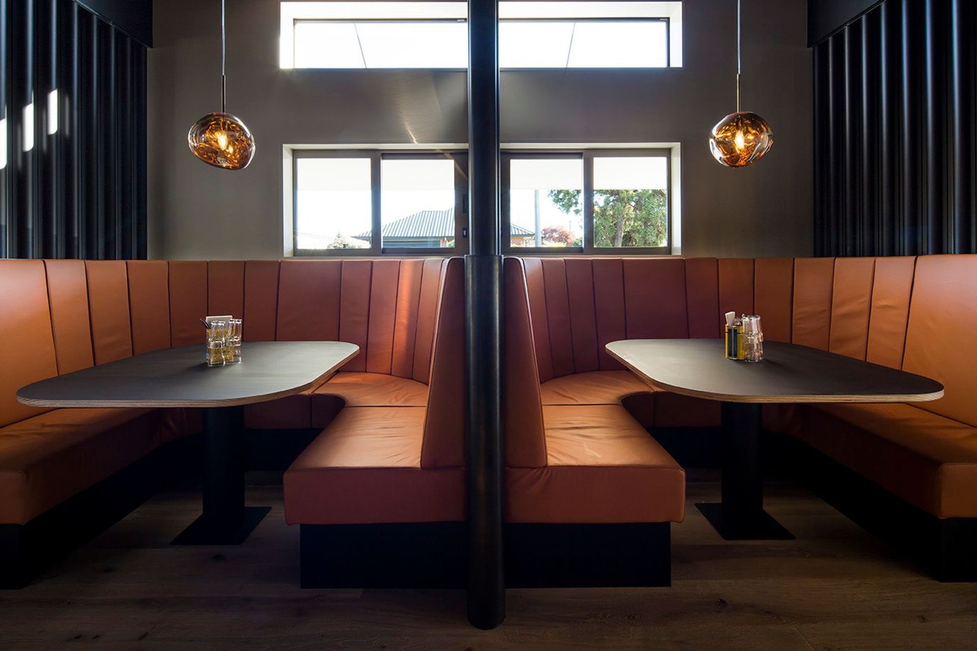 ArchiPro Project Summary - The Birdwood in Beckenham features modern design with wooden flooring and stylish furniture, creating an inviting atmosphere for dining.