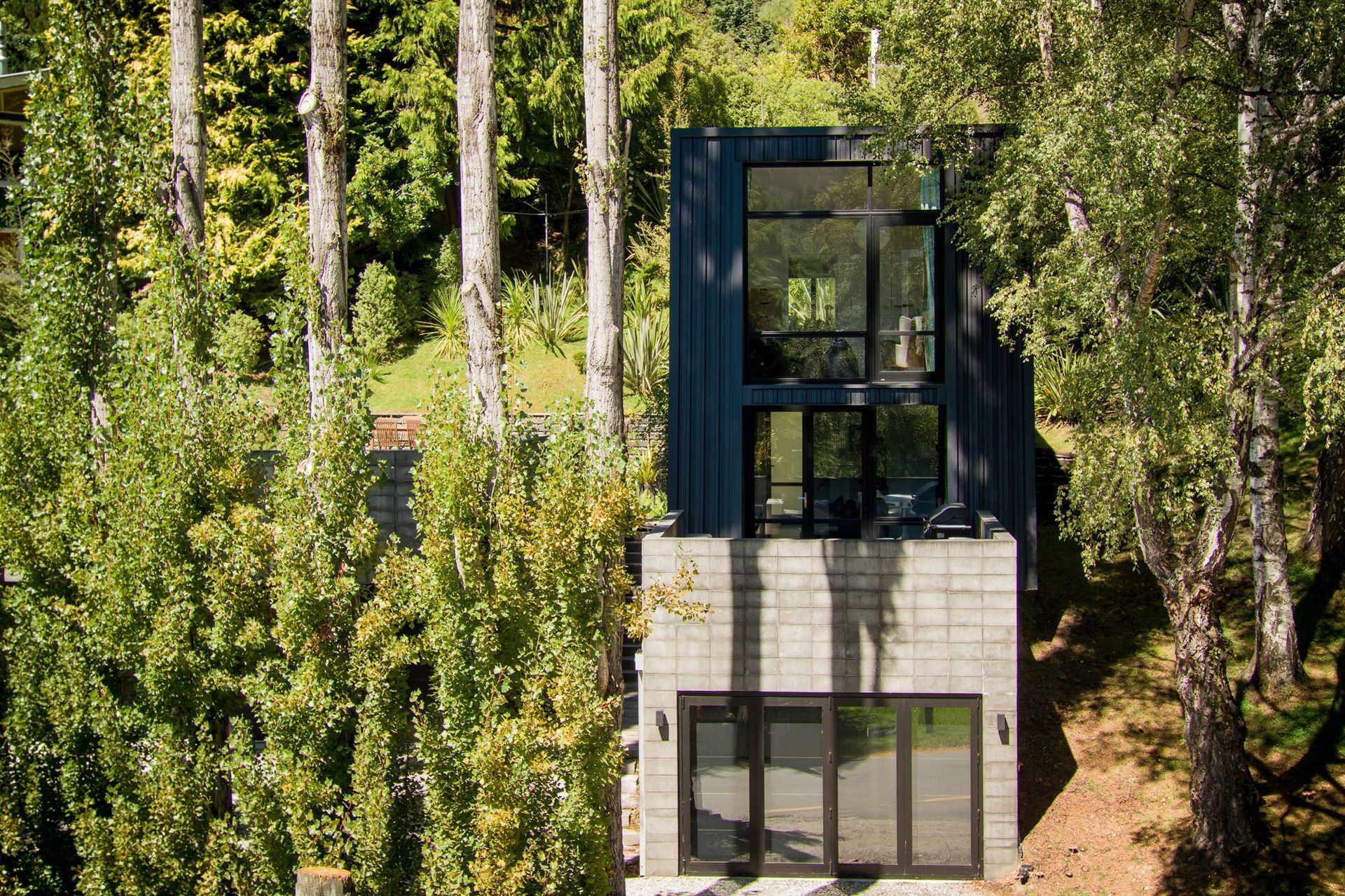 ArchiPro Project Summary - The Black House Part One in Queenstown features a striking design inspired by the natural landscape, resembling a jagged rock formation that integrates with its surroundings, showcasing a unique blend of architecture and nature.