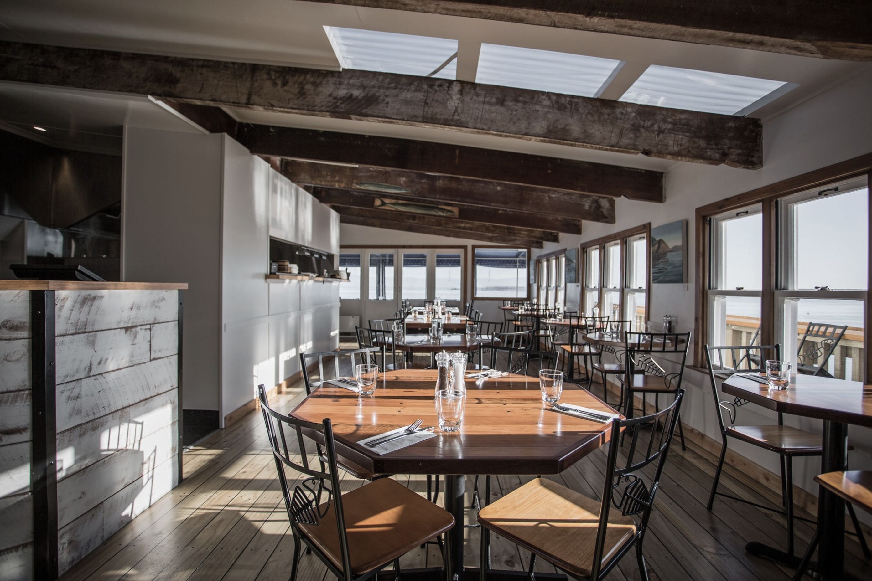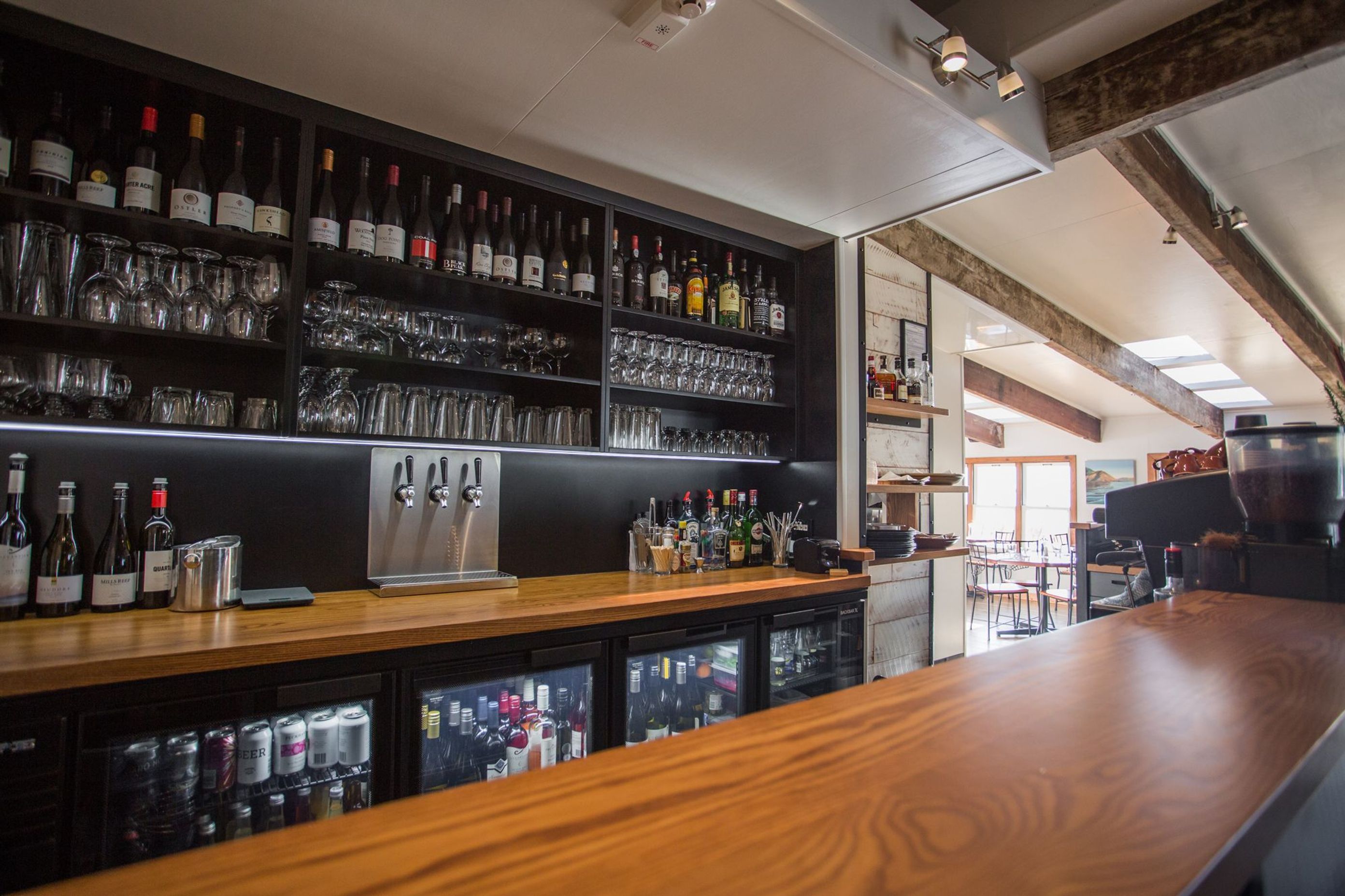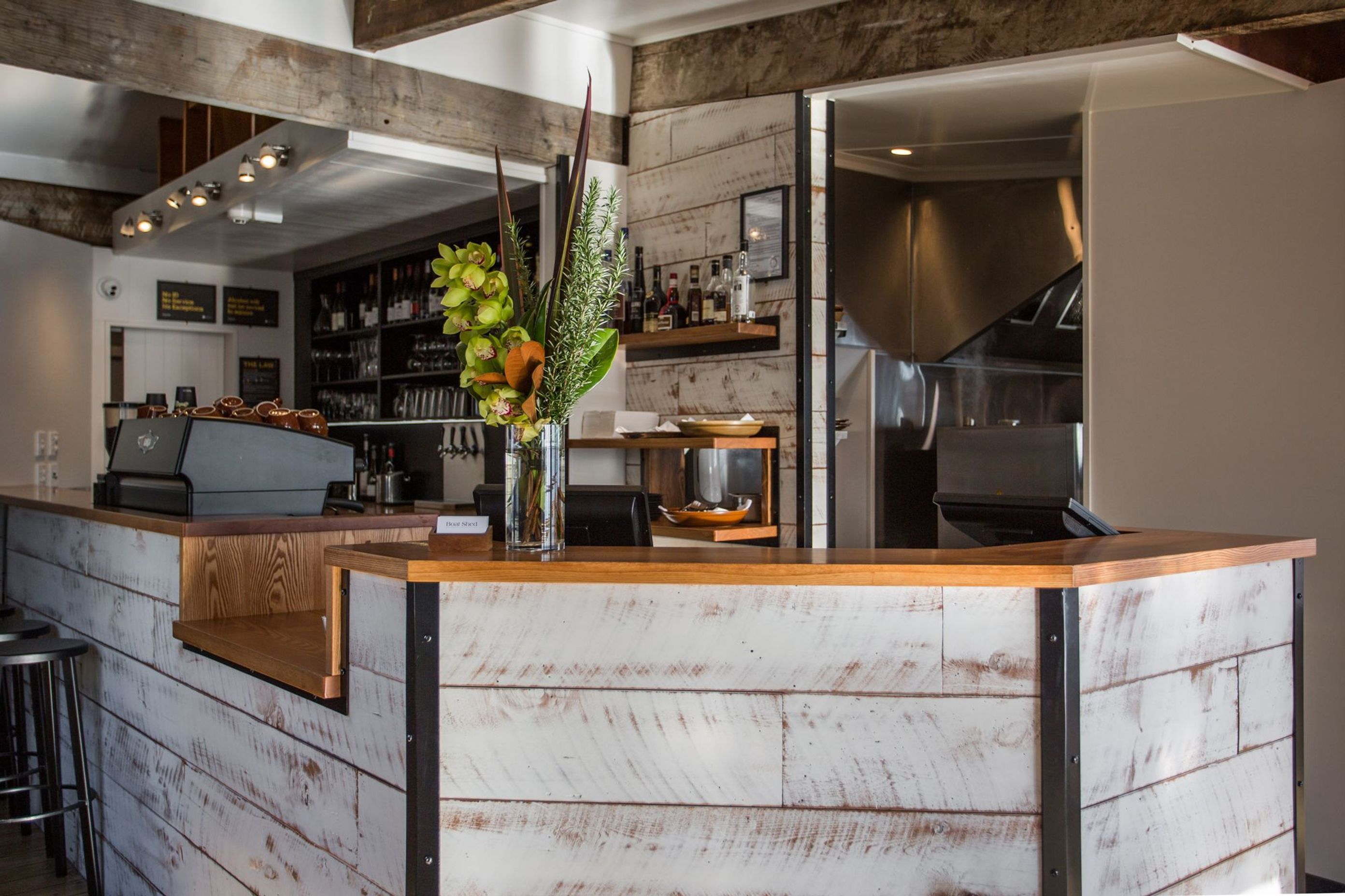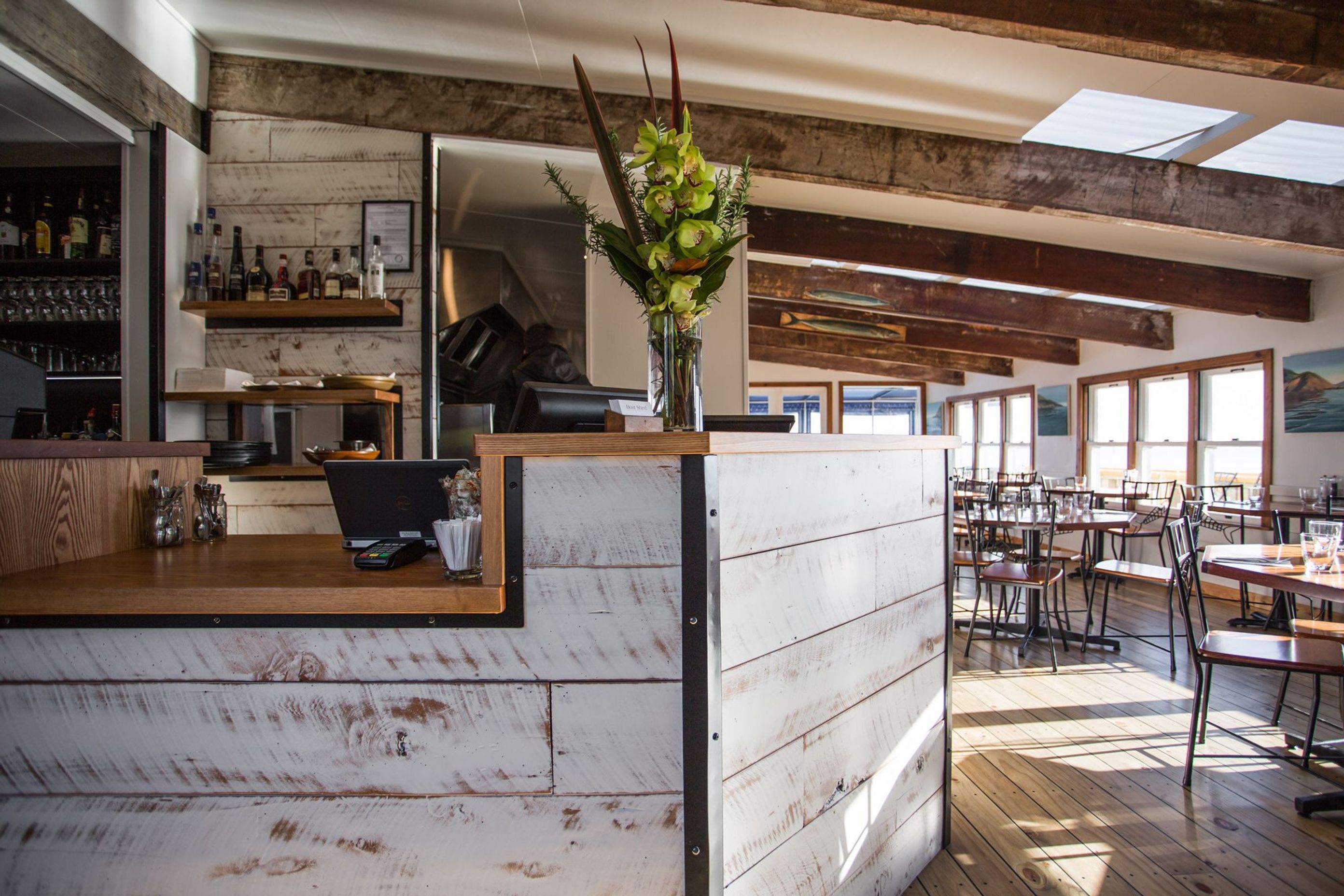 ArchiPro Project Summary - A modern refit of The Boat Shed Café in Nelson, completed in 2018, transforming a storm-damaged space into a vibrant and inviting restaurant that captures the essence of the picturesque coastline.