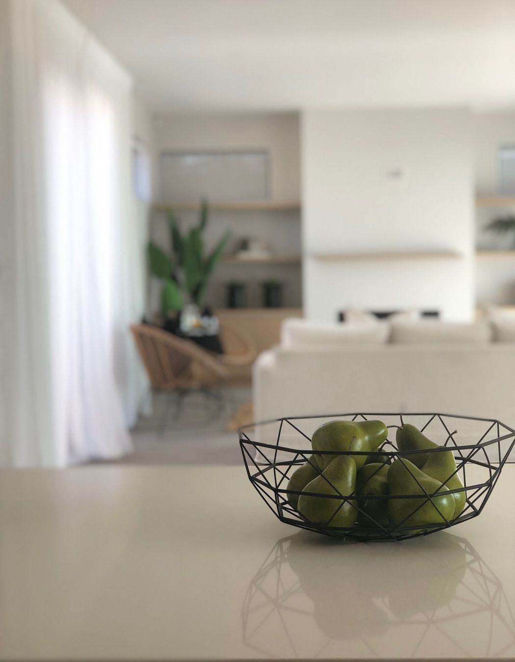 ArchiPro Project Summary - Custom-designed home featuring bespoke joinery, including kitchen, study, shelving, and bathrooms, with a cohesive color palette for both interior and exterior, staged by O&N Property Stylists.